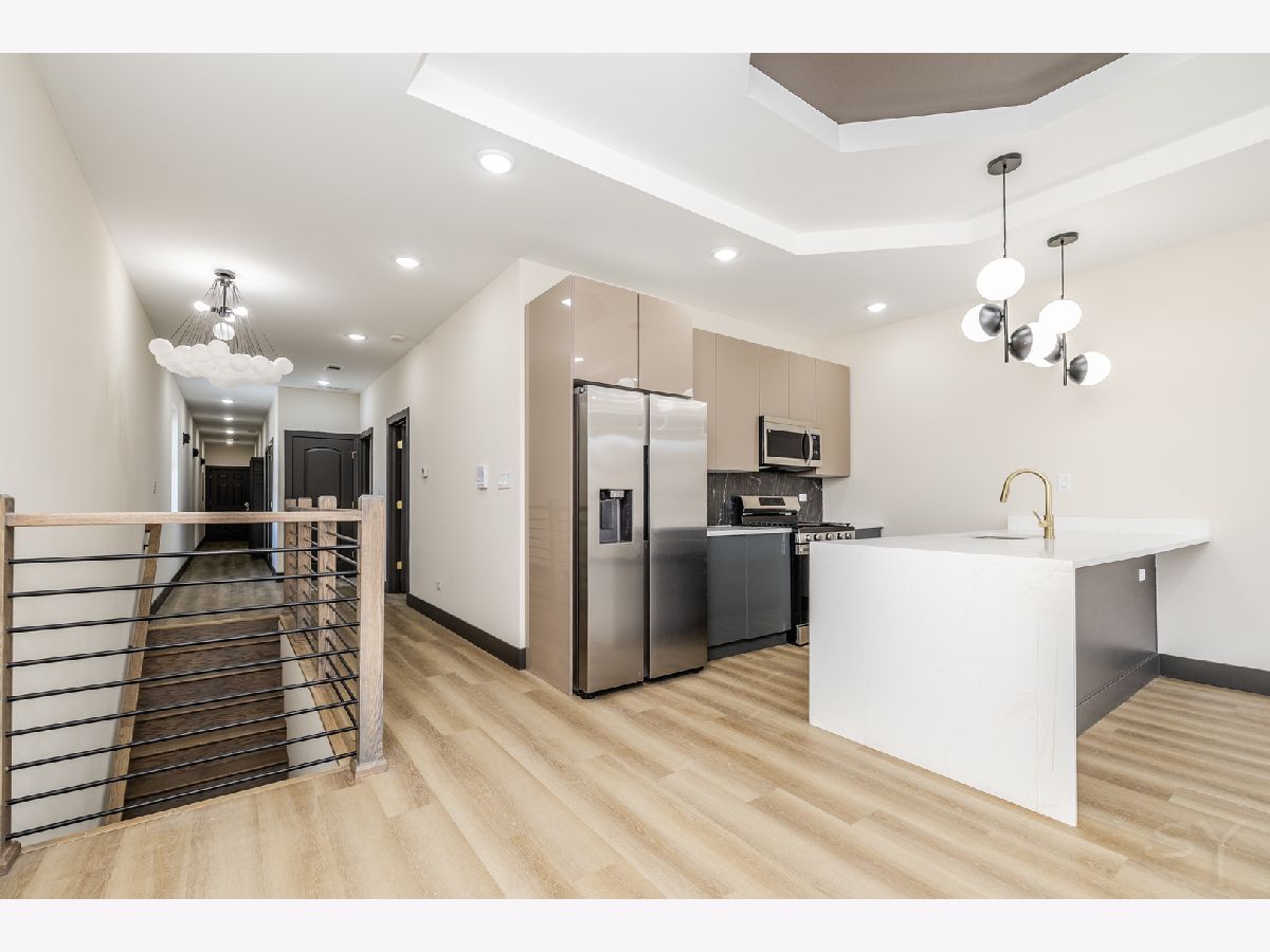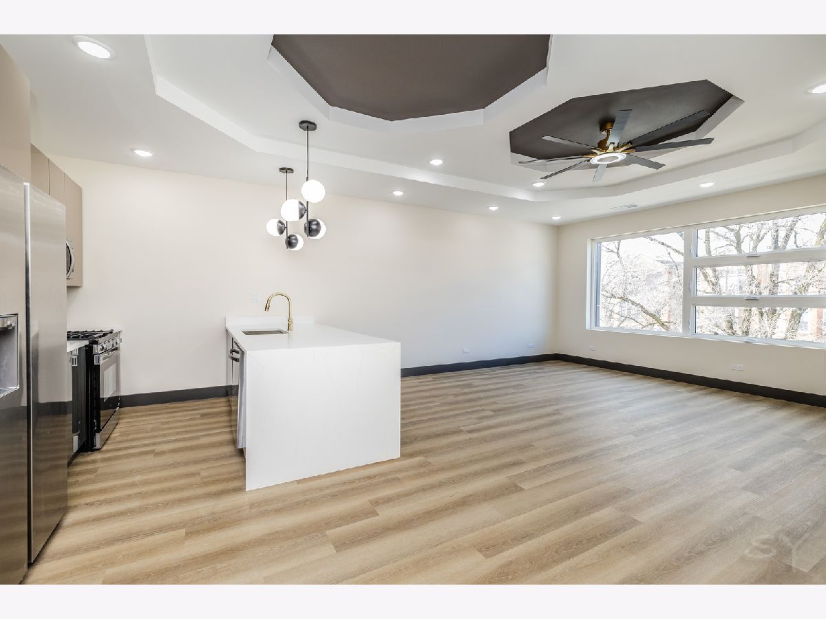Experience modern living at its finest in this newly constructed luxury condo featuring designer finishes throughout. This 3-bedroom, 2-bath residence offers a bright, open-concept layout ideal for both entertaining and everyday living. The chef's kitchen showcases sleek quartz countertops, premium stainless-steel appliances, and custom cabinetry that flows seamlessly into the spacious living and dining area. Enjoy in-unit laundry, hardwood floors, and extra insulation for superior soundproofing and comfort. The primary suite includes a walk-in closet and a spa-inspired bath with double vanities and designer tile work. Two additional bedrooms provide ample space for guests or a home office. Located just steps from the 55th/Garfield CTA Green Line and Washington Park, this home combines urban convenience with peaceful residential living. Parking included. Available now for immediate occupancy. Schedule your private tour today.