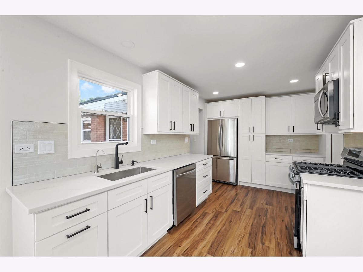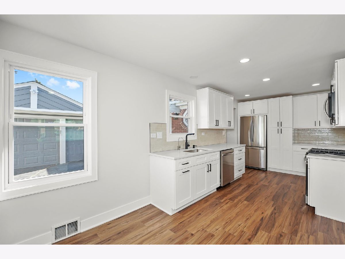 Welcome to 5809 Huron St, Berkeley, IL-a stunning 4-bedroom, 2-bathroom brick ranch that has been completely rehabbed from top to bottom! Enjoy the convenience of everything on one level with a modern, open layout and custom details throughout. This home features new flooring, a fully updated kitchen with quartz countertops, stainless steel appliances, and custom cabinetry. Both bathrooms have been beautifully updated, with one offering a luxurious dual showerhead design. A spacious laundry room adds everyday convenience. Custom touches are everywhere, including detailed molding in the living room and bedrooms, recessed lighting, and a built-in coat rack in the living room. Major updates include new plumbing, new electrical, new HVAC, and a newer roof, giving peace of mind for years to come. Step outside to a large lot with a brick paver patio, storage shed, and beautifully landscaped yard featuring Japanese trees. Perfect for entertaining or simply relaxing outdoors. Nothing to do but move right in. Schedule your showing today!