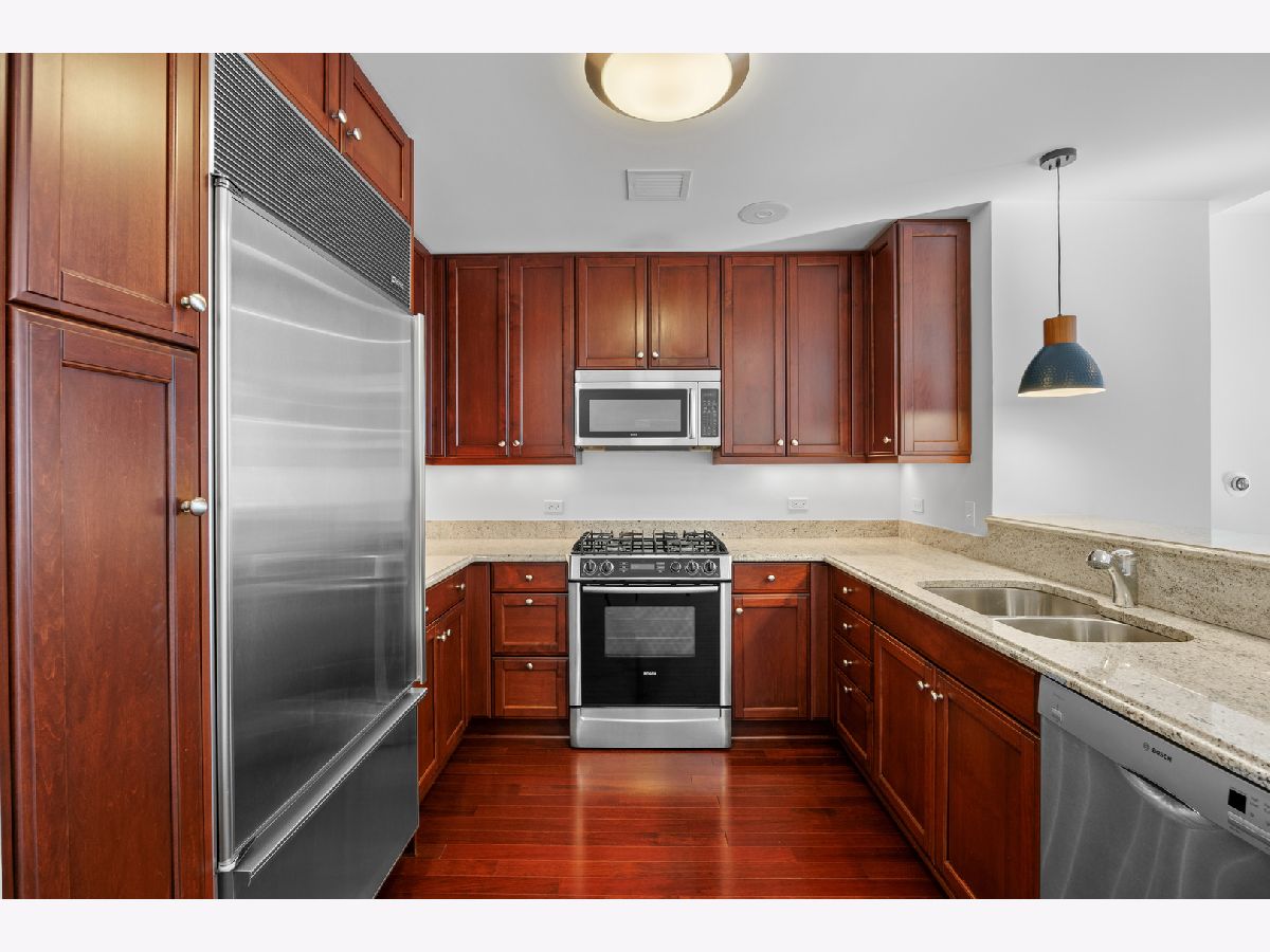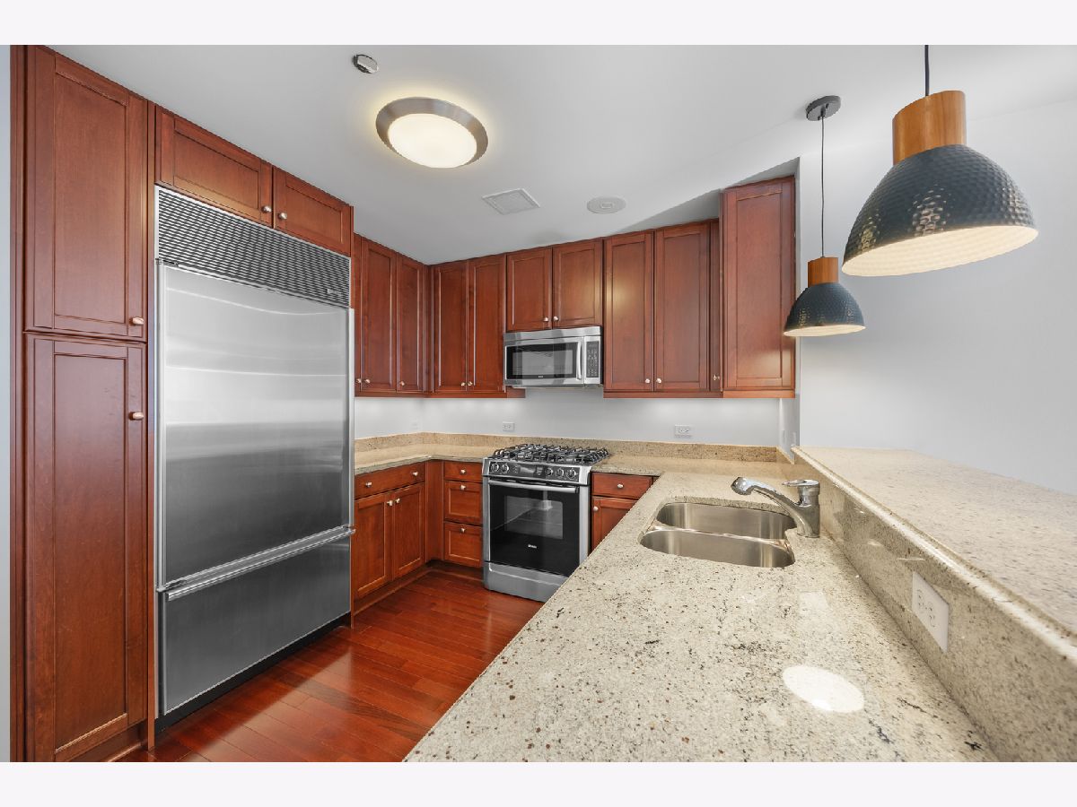 Luxury high floor 2 bedroom 2 bath at the Legacy. Stunning views of Lake Michigan, Millennium Park, Grant Park & Museum Campus. Hardwood floors in living and dining room, kitchen includes sub-zero, bosch, ss appliances, granite countertops, & Snaidero cabinets. Master bath with marble & separate shower. Full amenity building including 3 sky terraces, resident lounges, pool, hot tub, steam rooms, & fitness center. 24 HR doorperson, and access to the University Club. ONE PRIME PARKING SPACE INCLUDED IN THE PRICE! Steps to State Street shopping, grocery, Millenium Park, and all CTA transportation.
