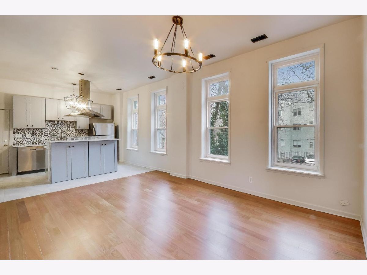 Beautifully remodeled, sun-filled home! Step into a bright, open-concept living space featuring soaring ceilings, oversized windows, and abundant natural light. Recent updates include new laminate flooring, a fully renovated kitchen with new cabinets, countertops, custom backsplash, stainless steel appliances, updated light fixtures, and fresh paint throughout. The chef-inspired kitchen offers a generous island and plenty of room to cook, gather, and entertain. The spacious bedroom features ample closet space with a custom built-in system and a private, fully remodeled en-suite bathroom with an upgraded vanity, modern lighting, and a custom-tiled oversized walk-in shower. Unwind on your expansive private balcony with peaceful, tree-lined views. Ideally located near the Chicago L, Grand Avenue bus, I-90, downtown, and some of the city's best shopping, dining, and nightlife. A perfect blend of style, comfort, and convenience, don't miss this opportunity!