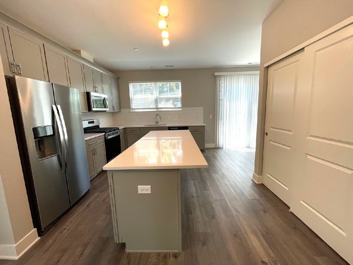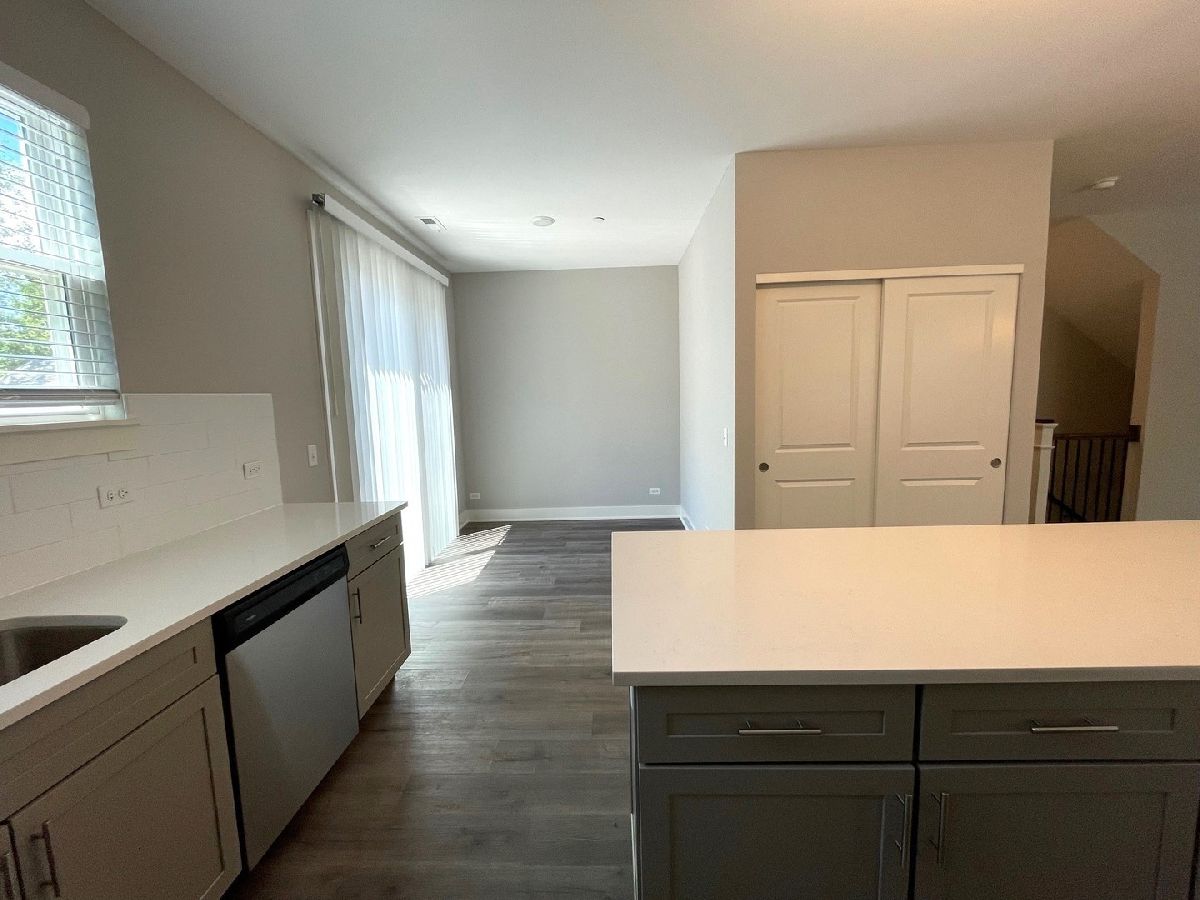 Stylish 3BR/2.5BA tri-level townhome just steps from downtown Libertyville! This well-designed home is available for immediate occupancy and offers 1,647 sq ft of modern living space. The open-concept main level features a spacious kitchen with quartz countertops, stainless steel appliances, 42" cabinets, a large island, pantry, dining area, living room, powder room, and sliding glass doors to a private deck. Upstairs, you'll find a primary suite with ensuite bath and walk-in closet, plus two additional bedrooms, a full hall bath, and linen closet. The lower level entrance includes a versatile flex space, storage area, laundry, and direct access to the attached 2-car garage. Additional highlights include 9' ceilings throughout and ample windows for abundant natural light. Enjoy low-maintenance living just a short walk from Libertyville's vibrant shops, dining, entertainment, and Metra station.
