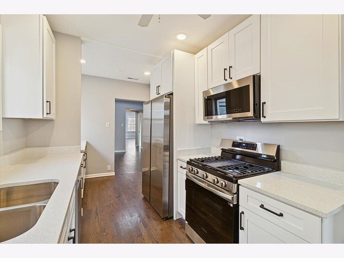 Beautifully renovated third-floor apartment featuring 3 spacious bedrooms and 2 modern bathrooms with In-Unit Washer & Dryer. This apartment offers huge living areas with stunning hardwood floors throughout. The living room boasts 3 large windows that flood the space with natural sunlight, creating a warm and inviting atmosphere. The chef's kitchen is equipped with quartz countertops, 42" white shaker-style cabinets, and brand-new stainless-steel appliances including a refrigerator, dishwasher, microwave, and oven/range-perfect for entertaining guests. Both bathrooms feature elegant marble tile and luxury finishes. Additional highlights include ample closet space, and the option for garage parking. Garage parking rents for an additional $150/month. This stunning and thoughtfully designed apartment offers comfort and convenience in a desirable location. THIS IS A MUST SEE!!