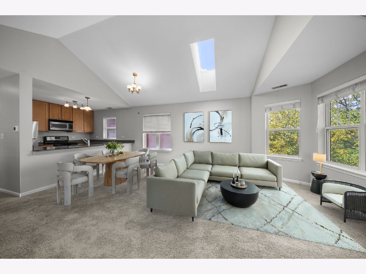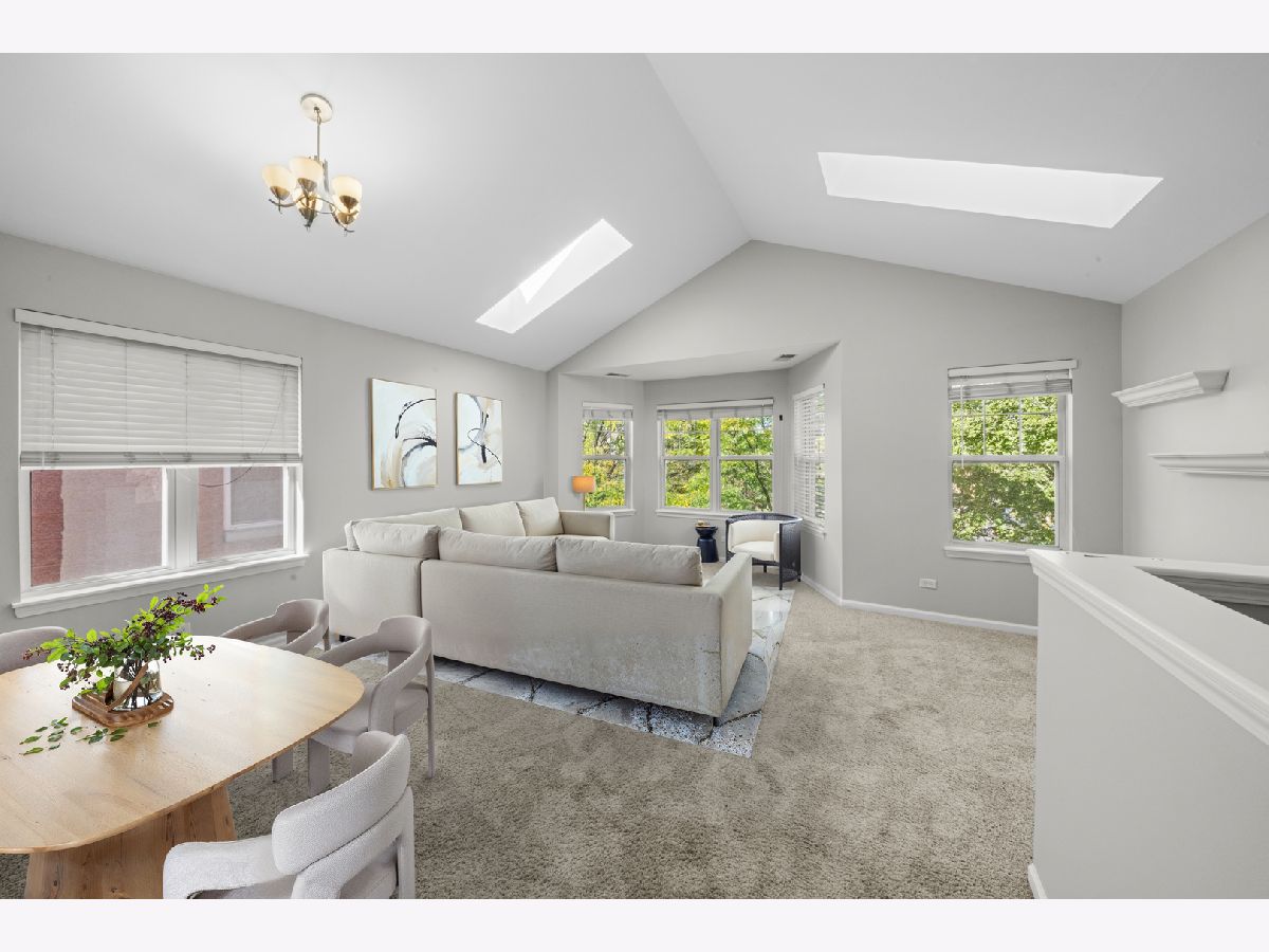 Enjoy the best of city living in this spacious 2 bed / 1.5 bath top-floor condo in prime Old Town location! The unit boasts an airy, open-concept floor plan featuring tall ceilings and skylights for incredible natural light. Recent updates include new paint throughout, new in-unit washer/dryer, new furnace and A/C, new range, and newer carpeting. The kitchen offers granite countertops, stainless steel appliances, and a large eat-in breakfast bar, while the primary bath also showcases granite finishes. The spacious primary bedroom includes dual closets with built-in organizers and opens directly onto an expansive top-floor deck, ideal for entertaining or taking in skyline views! One assigned exterior parking space, located directly behind the unit, is included in the rent. Live in the perfect blend of peace and convenience- tucked on a quiet street yet just steps from New City, Target, Whole Foods, and Mariano's. Ideally situated near River North, West Town, and Lincoln Park, with effortless access to public transit and major highways for a quick commute anywhere in the city!