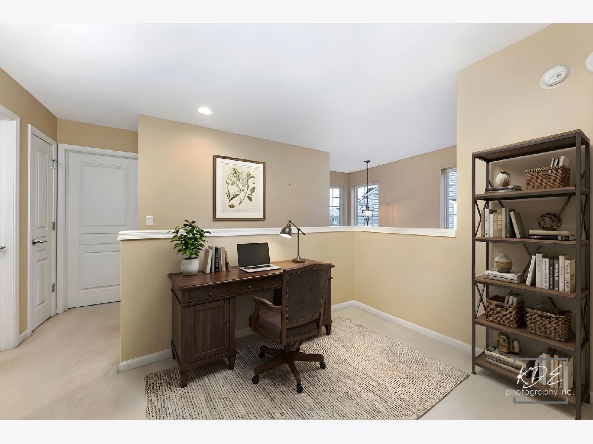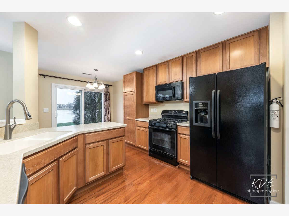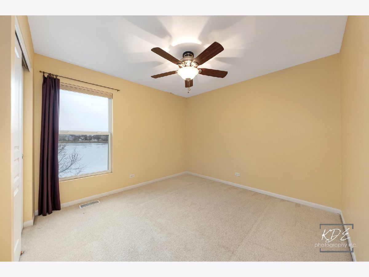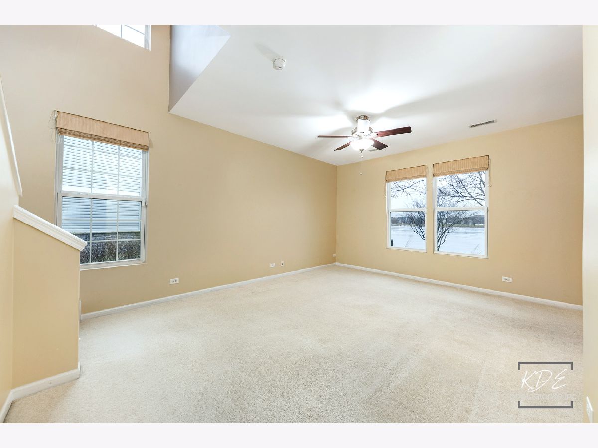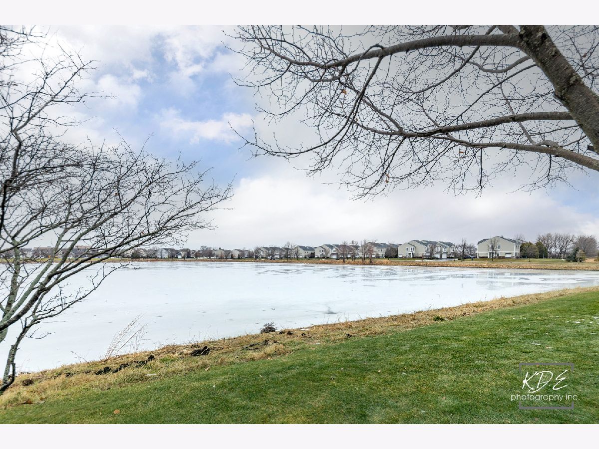 Fabulous opportunity to rent an end unit with a view! Enjoy the sun sets over the pond in your backyard. 2 story townhome with 2 car attached garage. 3 bedroom, loft, 2 1/2 bath, 2nd floor laundry room. Private, covered entrance with storm door. Large living area that is carpeted, has roman shades and ceiling fan with light. Eating area with wood floors and sliding door to patio. Kitchen with wood floors has 42" upper cabinets and additional pantry cabinet, Corian countertops with integrated double sink, disposal, newer GE microwave, refrigerator with ice and water dispenser, dishwasher and 4 burner gas range and oven. 1/2 bath and storage near access door to garage. 2nd floor loft flex area off of the 2 additional bedrooms. Shared hall bath, linen closet & laundry room. Primary suite with large walk-in in closet with accordion door for easier access. Huge ensuite bath with double vanity with Corian counters, linen closet, shower. Bedroom has fabulous light with many windows that have top down, bottom up black out shades and drapes and a ceiling fan. Both upper baths have speakers in the ceiling. All bedrooms have carpet, big closets, shades and ceiling fans. Garage has keypad, hanging storage & shelving. This is the perfect townhome to call HOME.