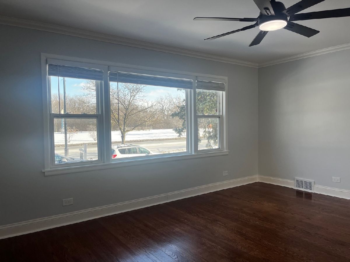 Completely renovated 3-bedroom, 1.5-bath home in prime Lincolnwood location offering 1,400 square feet of move-in ready living space. This top-to-bottom renovation features a brand new kitchen with white cabinetry, marble-look quartz counters and backsplash, and full stainless steel appliance package. The updated bathroom showcases custom tile work with designer fixtures throughout. Beautiful hardwood floors flow through the open living and dining areas, complemented by crown molding and modern ceiling fans. Three generous bedrooms provide flexibility for families or roommates, with excellent natural light in every room. The enclosed balcony offers additional space - perfect for a workout area, or year-round relaxation spot. Practical amenities include optional off street parking on-site and free laundry in the building. Central Air and Heat. Located in a residential neighborhood with easy access to Chicago, shopping, and parks. This completely refreshed home is ready for immediate occupancy - nothing to do but move in.