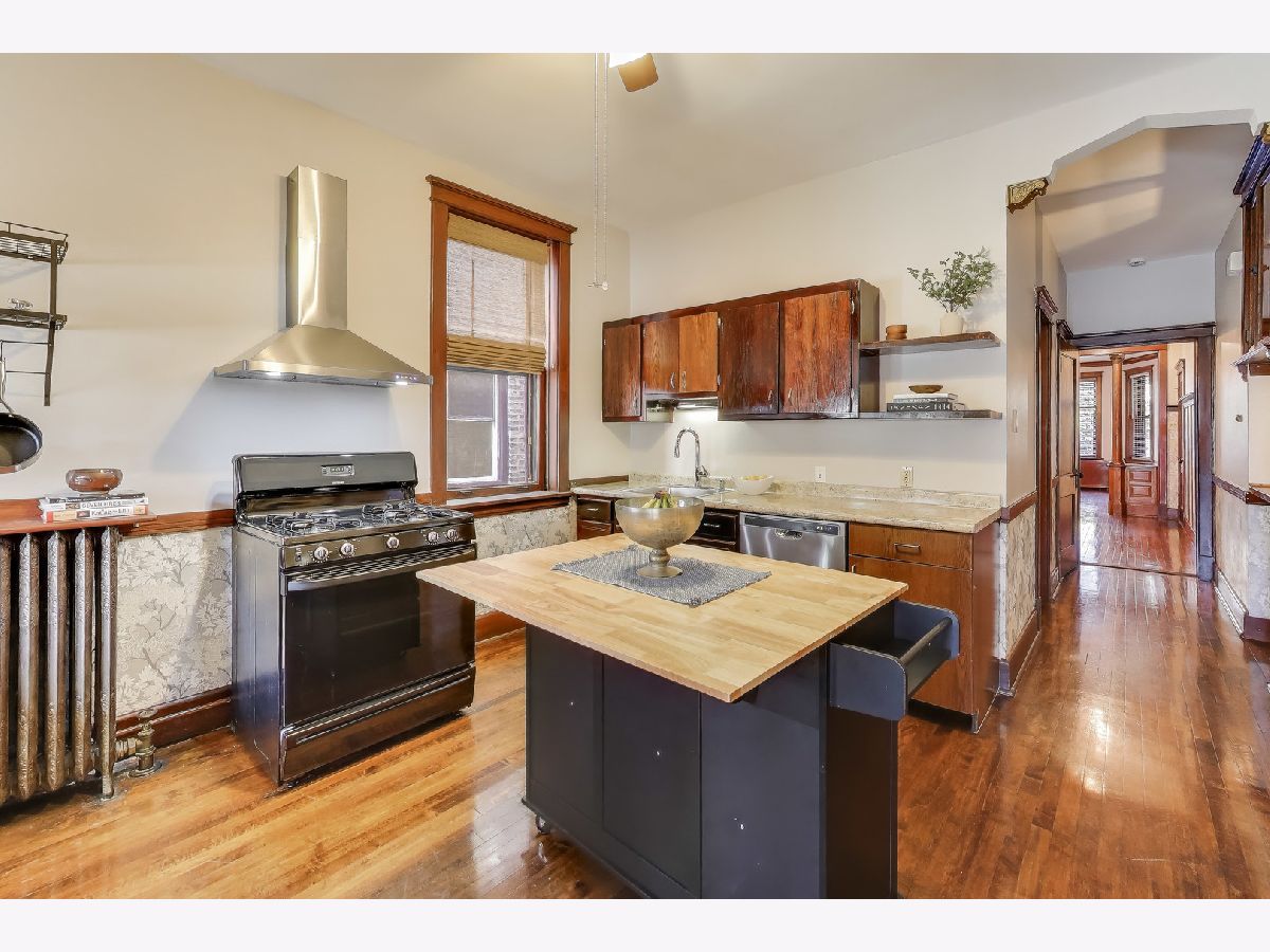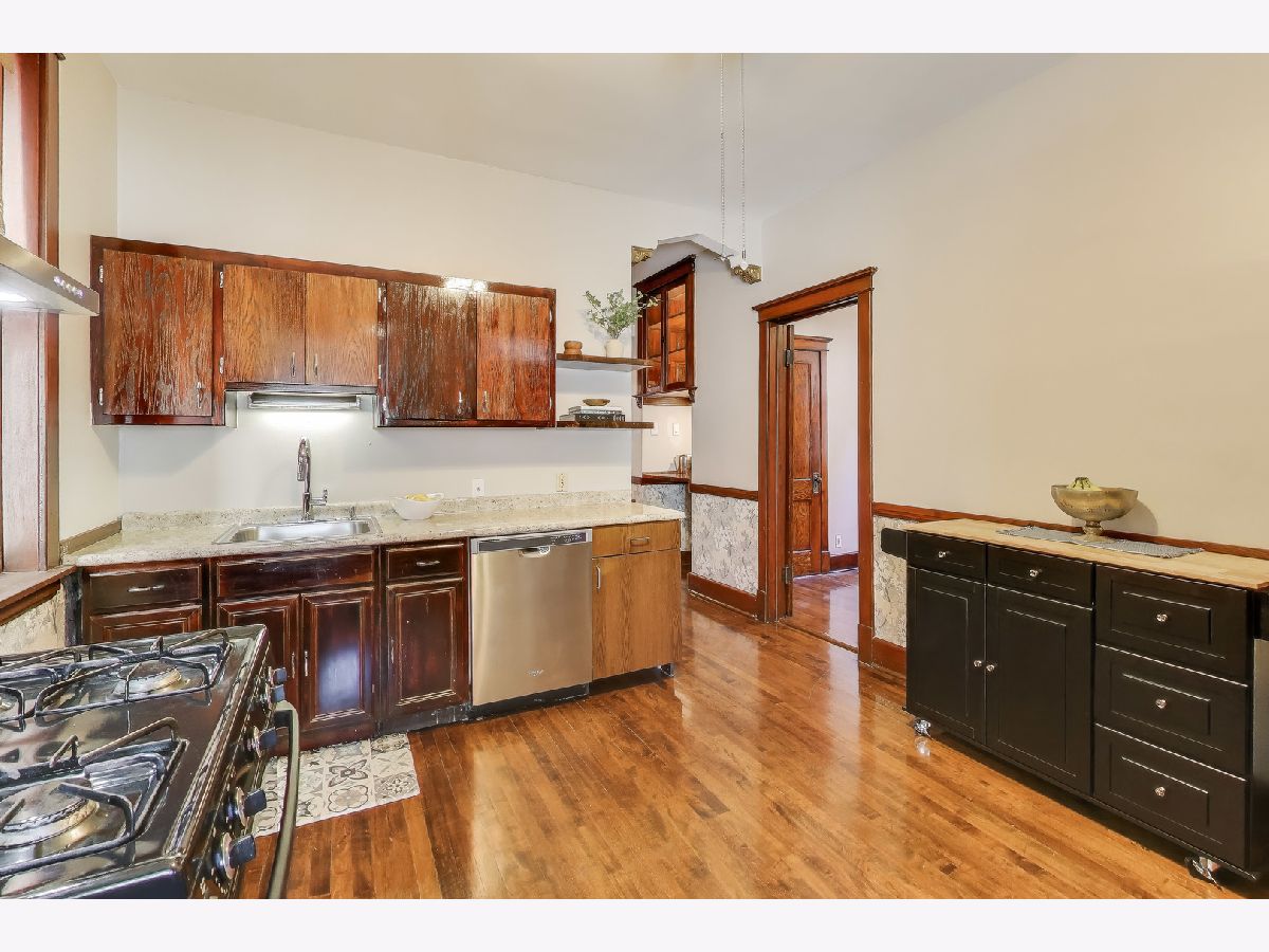 Discover the Vintage charm and abundant space in this beautifully preserved Greystone duplex apartment, ideally located on a quiet, tree-lined one-way street in East Rogers Park, near Loyola University, Lake Michigan, and convenient public transportation. This 4-bedroom + office, 2-bath duplex-down offers the perfect blend of vintage character and everyday comfort. Gorgeous hardwood floors, detailed woodwork, built-ins, and a large, welcoming foyer showcase the home's original craftsmanship. Enjoy the comfort of efficient radiator heat (included in rent) and the charm of true vintage living. The main level features two spacious bedrooms, a full bath, and generous living and dining areas that are perfect for entertaining. The kitchen includes a portable island, stainless vented hood, and a large walk-in pantry for extra storage and functionality. The lower level offers two additional bedrooms, a dedicated office space, a second full bath, fresh paint, new carpet, a large storage closet, and laundry for your convenience. Relax outdoors on the inviting front porch, or unwind in the landscaped backyard and patio - perfect for gardening, grilling, or enjoying a quiet evening.
