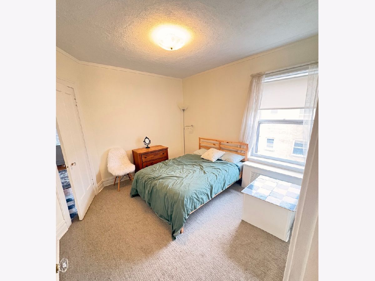 Spacious top floor 2-bedroom + den, 1-bath apartment located in the Rogers Park area. The den has four walls, a door, and windows and could fit a king-size bed. This well-maintained unit features large rooms and windows throughout, creating an open and comfortable living environment. The updated kitchen and bathroom offer modern finishes and updated fixtures. The additional den provides flexible space that can be used as a home office, study, or extra living area. Step outside to enjoy the private balcony, perfect for relaxing. The building also offers FREE ON-SITE LAUNDRY and easy access to free street parking nearby. Tenant will have the option to retain certain existing furnishings, including a dining table with chairs, a bed and other furniture in one of the bedrooms. Located near neighborhood shops, dining, parks, and public transportation, this unit offers generous space and everyday convenience in a great location.