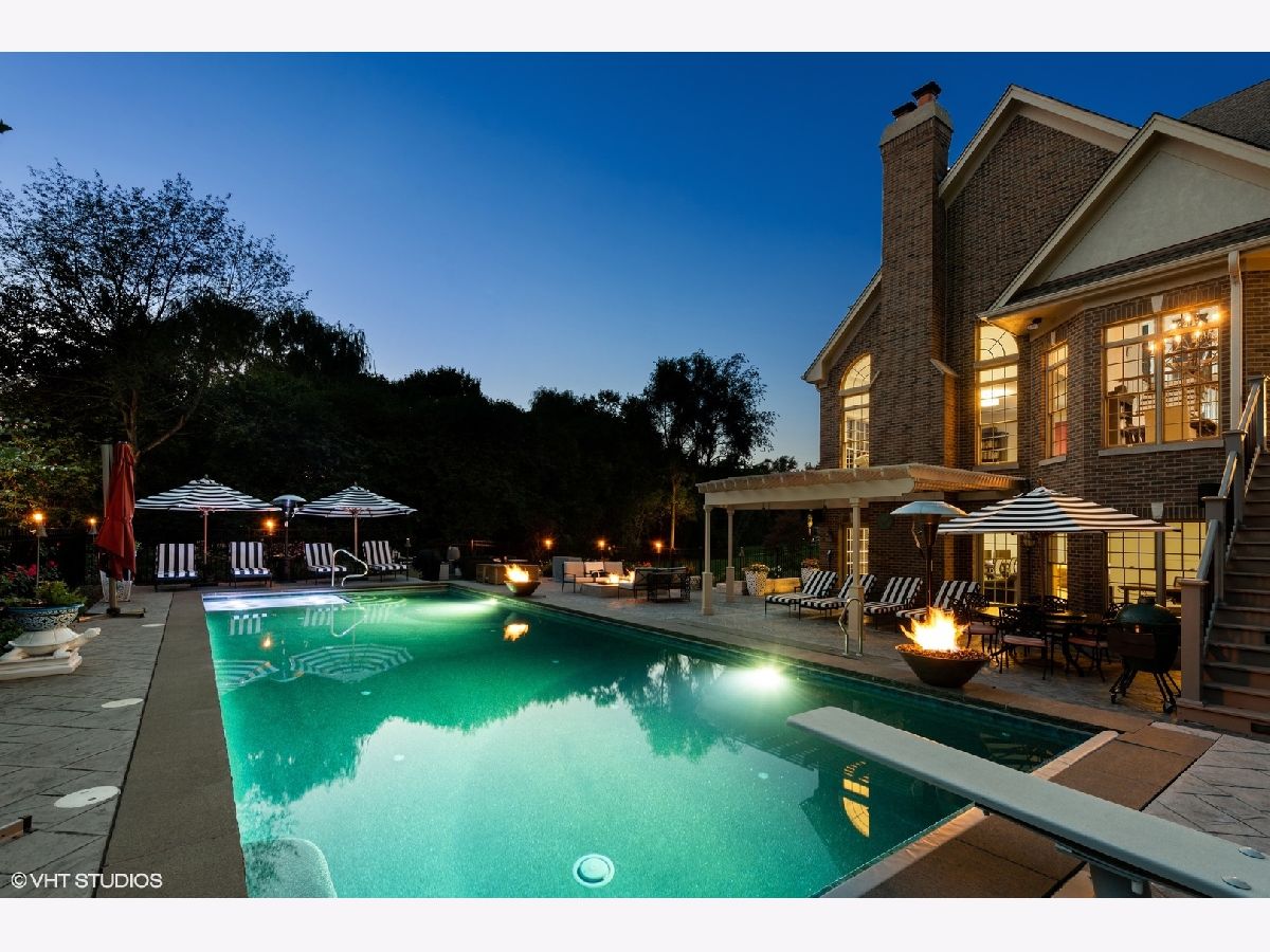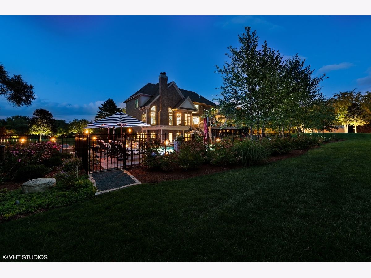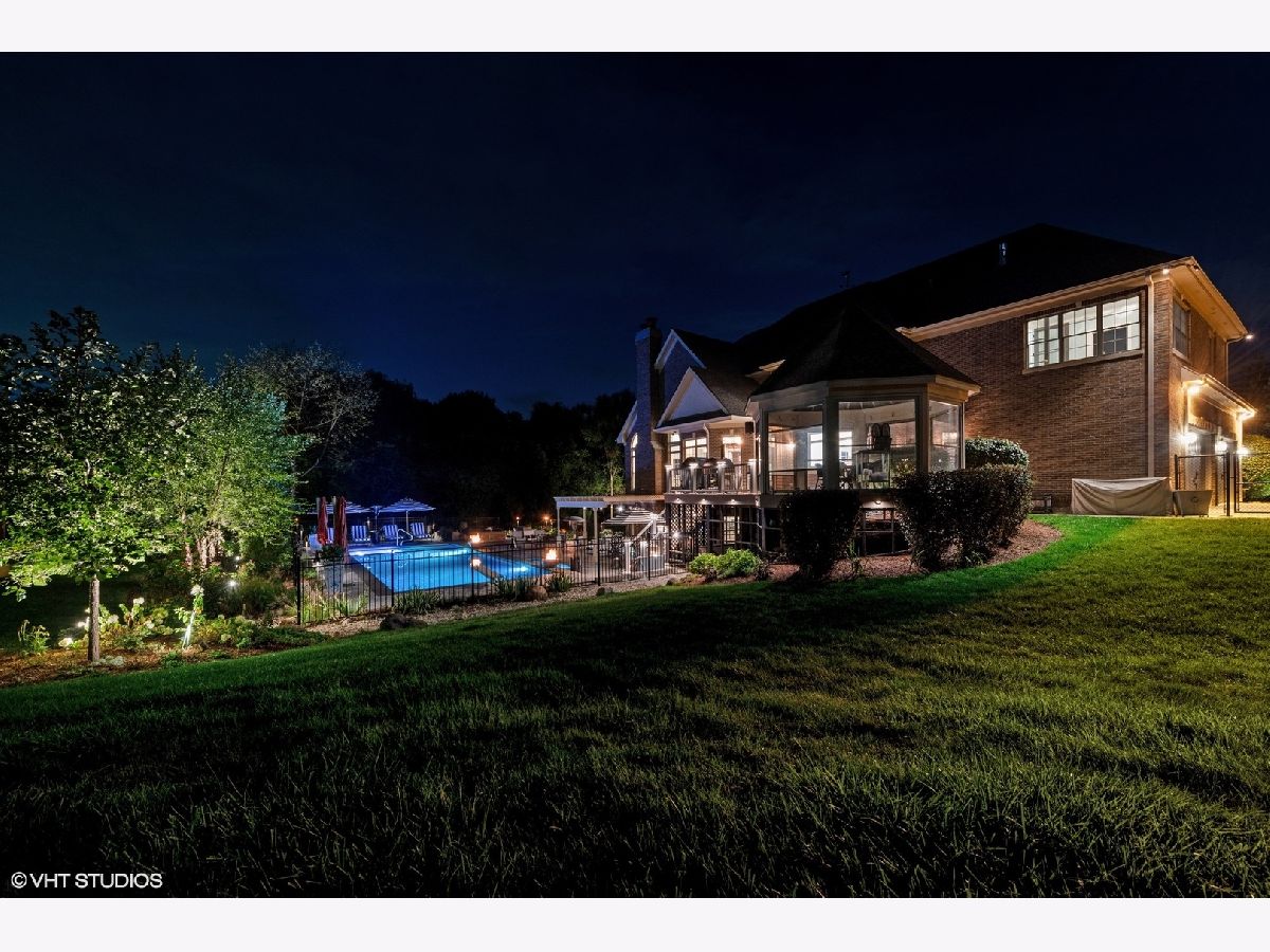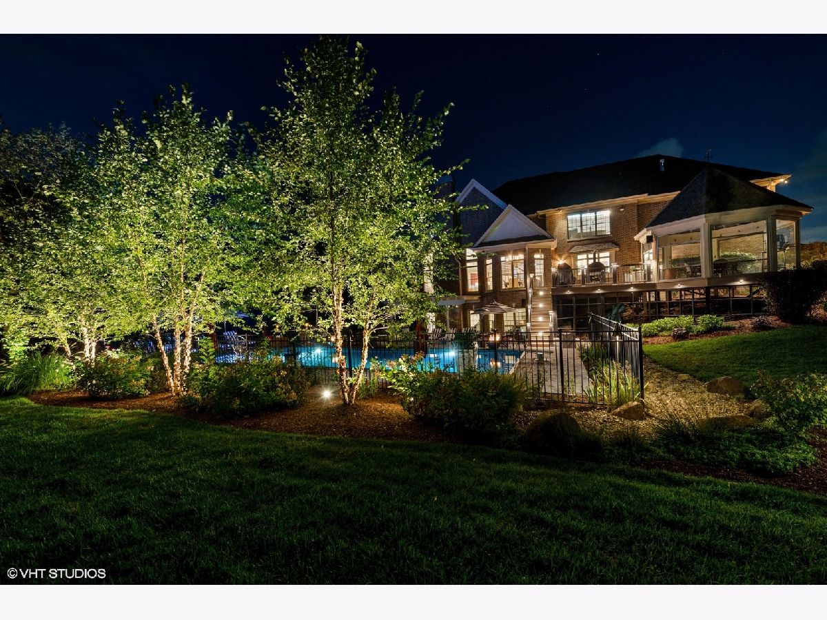 Discover this stunning all-brick, 5-bedroom, 4.5-bathroom home that has been transformed with high-end modern updates, seamlessly blending timeless elegance with contemporary design. Every detail has been thoughtfully curated, resulting in a truly exquisite residence. As you arrive via the gated driveway, you'll be welcomed by a professionally landscaped 3+ acre property illuminated by over 100 strategically placed lights that create a magical ambiance at night. The driveway, bordered by brick pavers and replaced in 2020, perfectly complements the home's stately exterior. Step inside to a grand foyer where gorgeous dark walnut hardwood floors lead to a striking central staircase. The office/den radiates sophistication, with custom wall paneling, a coffered ceiling enhanced by LED accents, a herringbone-patterned stone floor, and an expansive nearly floor-to-ceiling window. The formal dining room is equally impressive, featuring elegant wainscoting, designer sconces, and a chandelier, making it ideal for hosting memorable gatherings. At the heart of the home lies the chef's kitchen, a masterpiece of form and function. It boasts custom soft-close cabinetry with integrated lighting, sleek quartz countertops and backsplash, Thermador stainless steel appliances, and an oversized island with waterfall edges crowned by a stunning Terzani Argent light fixture. The adjacent breakfast nook, framed by bay windows, offers serene views of the deck, gazebo, pool, patio, and charming English garden. The family room is an inviting retreat with a stunning stone fireplace and a beautifully updated bar area, complete with two beverage refrigerators, an ice maker, a sink, and a chic powder room-perfect for entertaining. Upstairs, the luxurious primary suite is a true sanctuary. The bedroom features a custom plaster oval dome with in-ceiling LED lighting, a see-through gas fireplace, and glass french doors leading to a private sitting room or office. The spa-inspired primary bathroom is a retreat in itself, with heated marble floors, dual vanities with illuminated mirrors, a two-person shower with mosaic tile accents, and a soaking tub beside the fireplace-perfect for unwinding. The showers are equipped with a digital control panel, allowing personalized settings for each user. The additional bedrooms are also impressive. Bedroom 2 includes a fully renovated ensuite bath with walk-in shower, while Bedrooms 3 and 4 share a Jack-and-Jill bathroom with separate vanities for added privacy and convenience. The walkout basement is an entertainer's dream, offering expansive living space with tile flooring and roughed-in plumbing for a second kitchen or bar area. It features a marble fireplace, a fifth bedroom, and a fully updated bathroom with a luxurious steam shower. Film enthusiasts will love the soundproof theater room, complete with Art Deco-inspired paneling, custom lighting, integrated A/V cabinetry, and a floor-to-ceiling screen for the ultimate cinematic experience. The backyard is a private oasis, designed for unforgettable moments. Enjoy the in-ground heated pool with stamped concrete, a hot tub, a patio with a retractable sun cover, a fire pit, and gazebo-all perfect for entertaining or relaxing. Car enthusiasts will appreciate the 4-car attached garage and detached 2-car garage, providing ample storage for vehicles and recreational equipment. Nestled in the highly sought-after North Barrington community, this home is conveniently located near top-rated Barrington 220 schools, Metra transportation, shopping, fine dining, and more. Tenant responsible for all utilities, snow removal, landscaping, and routine pool maintenance. Pets considered on a case by case basis with $300 non refundable pet fee per pet.