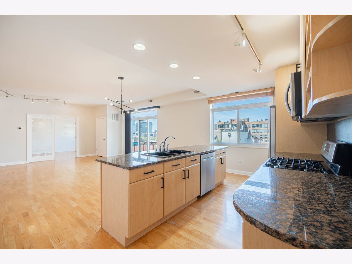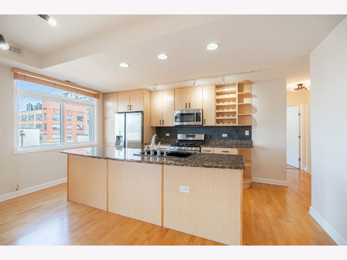 Spacious and well-appointed 2 bed, 2.5 bath home in the heart of River West, featuring a desirable split-bedroom layout with each bedroom offering its own private ensuite bath. The large living and dining area is filled with natural light and anchored by a cozy fireplace, flowing seamlessly to a private balcony. The open kitchen is generously sized with stainless steel appliances, 42" cabinetry, granite countertops, and a built-in wine rack-perfect for everyday living and entertaining. Additional features include hardwood floors, in-unit washer/dryer, two walk-in closets, and an oversized soaking tub in the primary suite. The building offers a rooftop sundeck with panoramic skyline views. One garage parking space is available for rent. Located at 680 N Green, just moments from Fulton Market, West Loop dining, and convenient public transportation options including the nearby CTA Blue Line and multiple bus routes, along with easy expressway access-offering the perfect blend of neighborhood feel and city convenience.