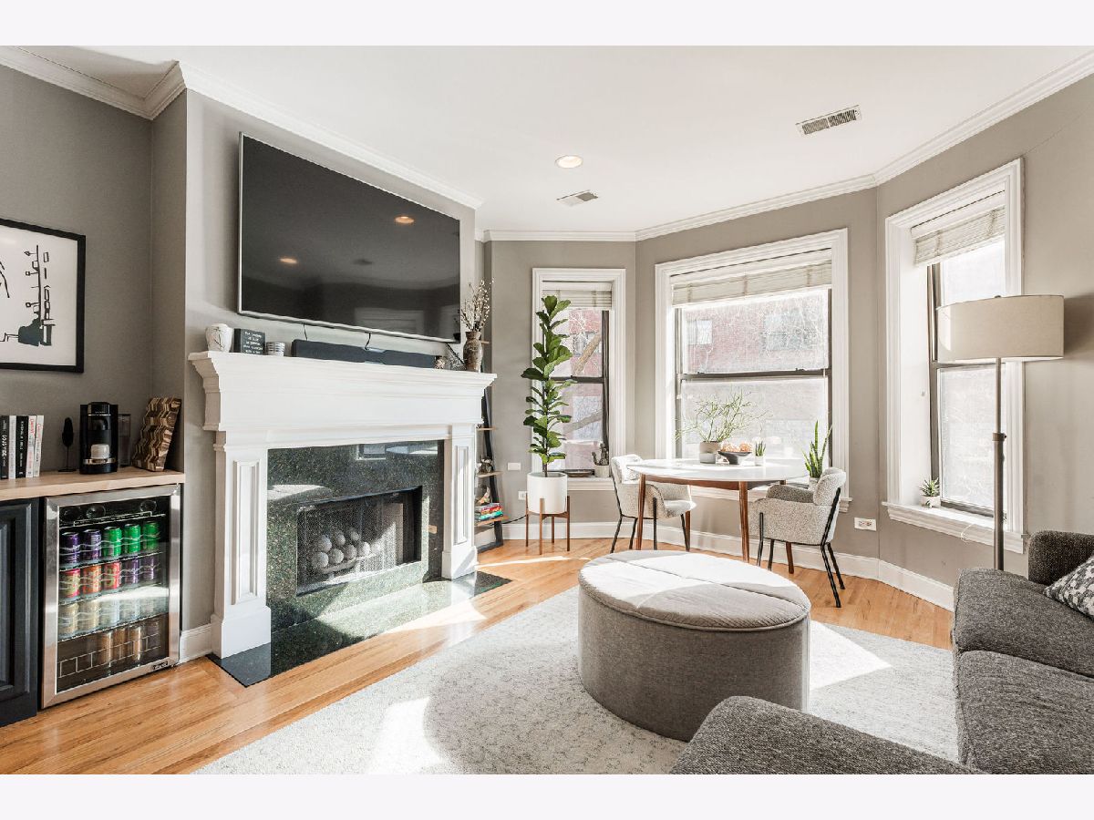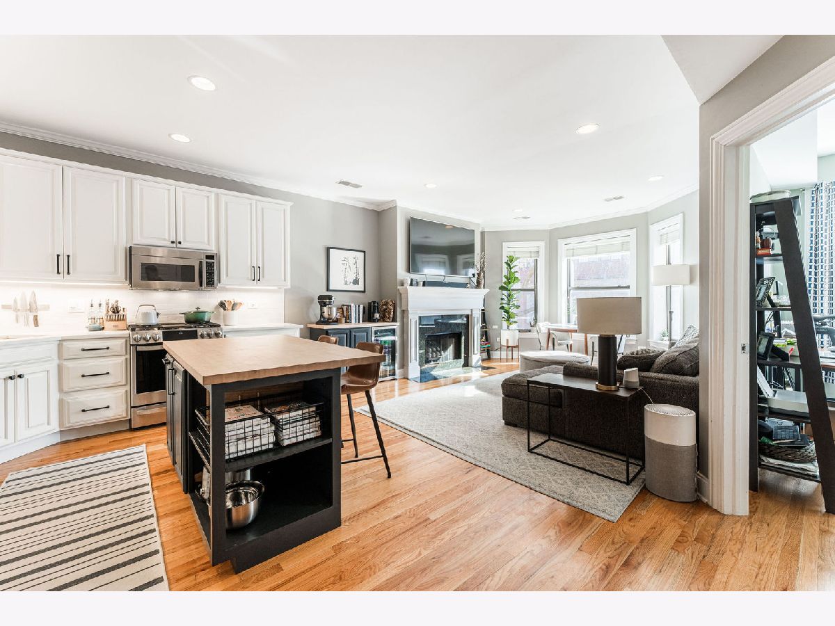 Welcome to your new home in vibrant East Lakeview! This stunning top-floor condo offers the perfect blend of comfort, convenience, and charm. Step inside to a bright, sun-filled space featuring gleaming hardwood floors and beautiful natural light throughout. The renovated kitchen shines with quartz countertops, 42" cabinets, stainless steel appliances, and a large butcher block island, making it ideal for both everyday living and entertaining.The inviting living area is anchored by a cozy fireplace - perfect for those chilly Chicago nights - while the thoughtful layout provides two spacious bedrooms offering both privacy and flexibility. The primary suite features an updated en-suite bathroom with a double vanity and a large walk-in rain shower. Customized closets throughout the home provide excellent storage. Step outside to your expansive back porch, an ideal spot for morning coffee or evening relaxation. Enjoy the added luxury of included parking in this pet-friendly home, where your furry friends are welcome. Set on a peaceful stretch of Addison in a well-maintained building, this home offers a serene retreat in the heart of the city. With transit, Lake Michigan, Wrigley Field, Whole Foods, and endless dining and entertainment just steps away, every convenience is truly within reach.