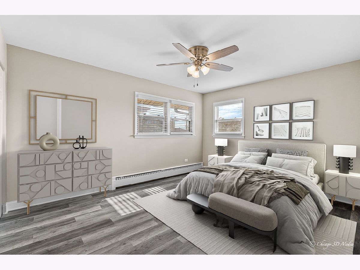 Renovated 2 bed, 1 bath unit in desirable Harwood Heights! This spacious apartment features a modern kitchen with spectacular quartz countertops, high-quality cabinetry, new appliances, and a kitchen island-perfect for cooking and entertaining. Enjoy the updated bathroom with a soaking tub, ceiling fans with lights, and ample closet space throughout. Located in a well-maintained building with on-site laundry, this unit offers easy street parking, a central location close to major stores, and is just minutes to the Expressway, O'Hare Airport, and the Harlem Blue Line station. Don't miss this ideal blend of comfort and convenience! 2 pets allowed. Utilities not included