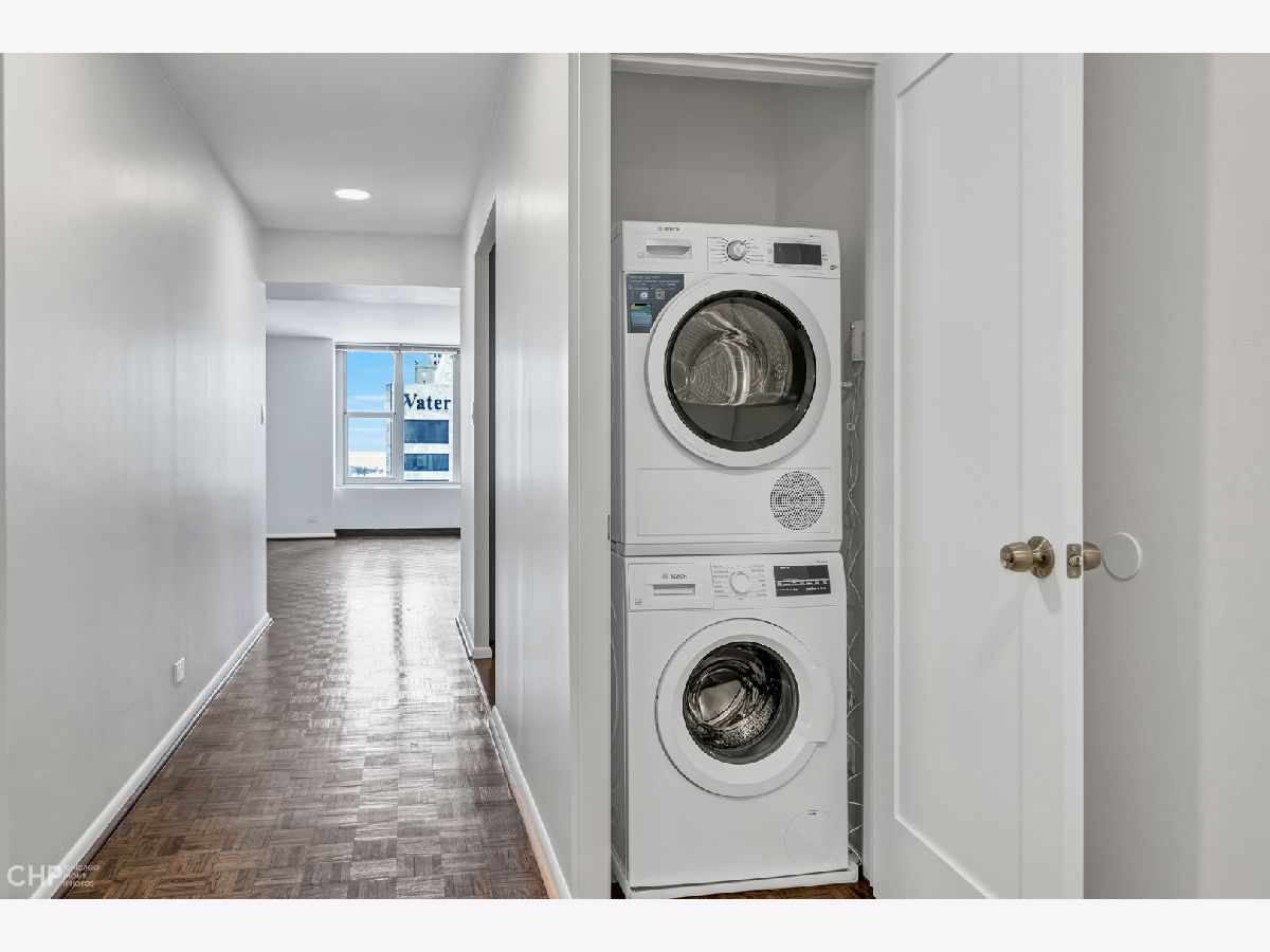 Fantastic Michigan Ave rental available May 1st! This updated end unit boasts 2 Large ensuite bedrooms with great closet space, newly renovated kitchen, an enormous open great room with oversized windows, a powder room, and a new in-unit washer & dryer. The kitchen features ample cabinetry, stainless steel appliances, granite countertops, a marble backsplash, and under-cabinet lighting. This corner unit is perfectly situated to allow for great city and lake views. There is a large storage locker included. Valet garage parking is available in the building for $290/a month. 777 N Michigan is a full amenity building that includes a 24 door staff, updated fitness center, party room, rooftop heated pool with stunning city and lake views, grilling stations and more! The Magnificent Mile, Oak Street and Rush Street are steps away. This is a walker's paradise with access to shopping, dining and entertainment at every turn. Walgreens on the ground floor and walking distance to the lake, MCA, Lake Shore Park with tennis courts and an outdoor track, Grocery stores, top dining spots, numerous CTA busses and Lake shore drive down the street and easy expressway access