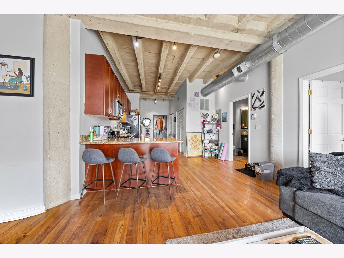 Fall in love with this extremely rare soft loft in the heart of the Oakland neighborhood! This unit features exposed brick walls, steel duct work, ten foot high concrete ceilings, and hardwood flooring throughout. The open floor plan presents modern living that is perfect for entertaining guests. Loads of 42" gorgeous cabinetry, accented by a full stainless steel appliance package which includes a beverage cooler. Bath features a deep soaker tub! In-unit laundry, spacious bedroom. Relax on the unit's east facing concrete balcony with an unobstructed view of Drexel Blvd. Heated garage with assigned parking is included in rent price! Near Oakwood Beach (Lake Shore Drive), parks, tennis court, running track, Mariano's Grocery, Whole Foods Market, LA Fitness and so much more! Driving is 13 minutes to reach Downtown! Schedule a private showing today!
