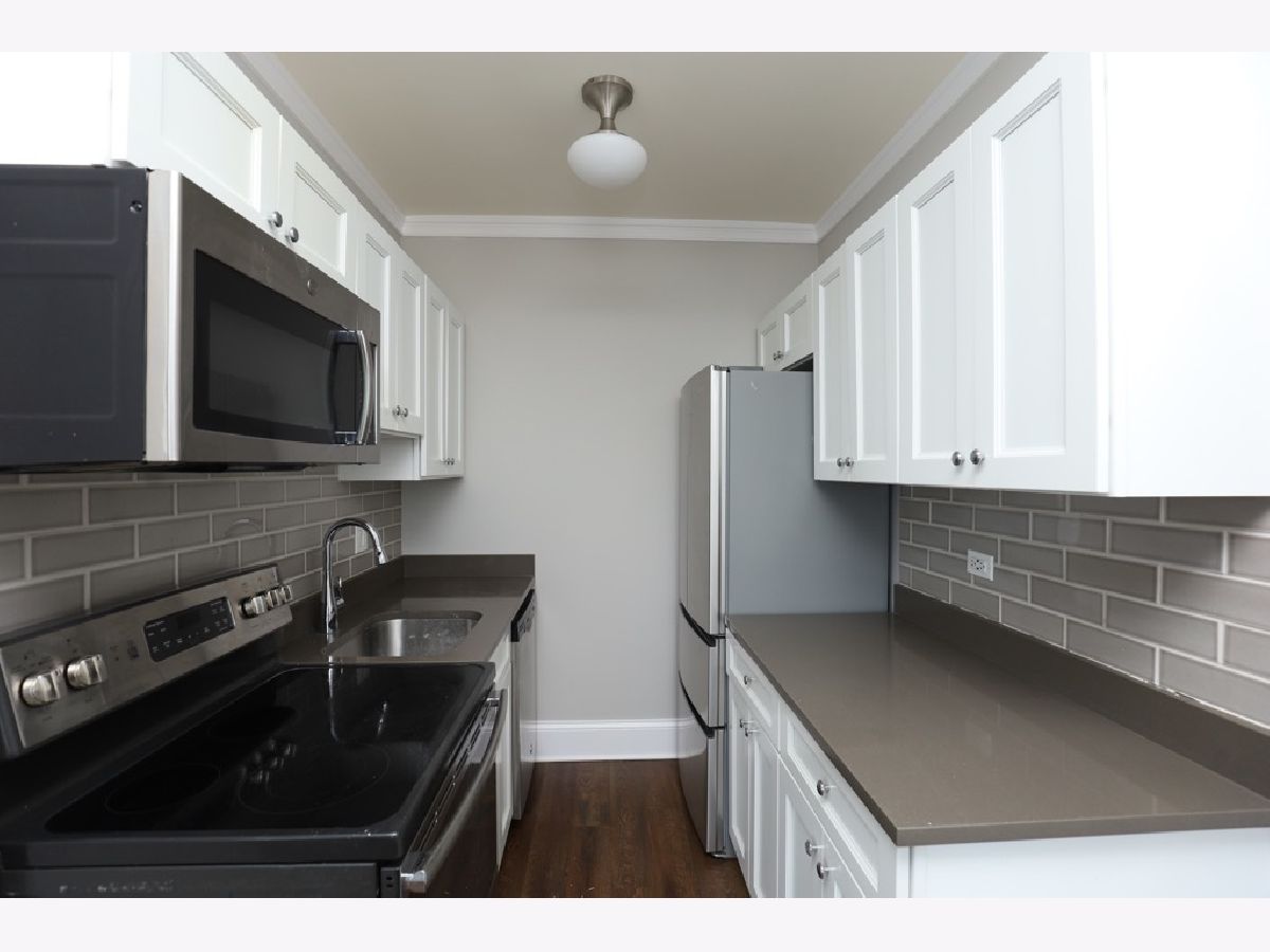 Extraordinary one bedroom, one bathroom features rehabbed kitchen with modern white cabinets, quartz countertops, stainless steel appliances, dishwasher, microwave, separate dining area, large living room with ceiling fan, hardwood flooring, rehabbed bathroom, spacious bedroom, walk in closet, in unit laundry, and pets welcome. Steps from the lakefront and CTA buses and a quick walk to the Lawrence Avenue Red Line, restaurants, night life and shopping!