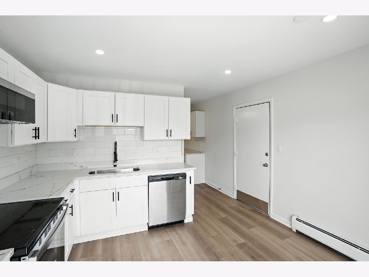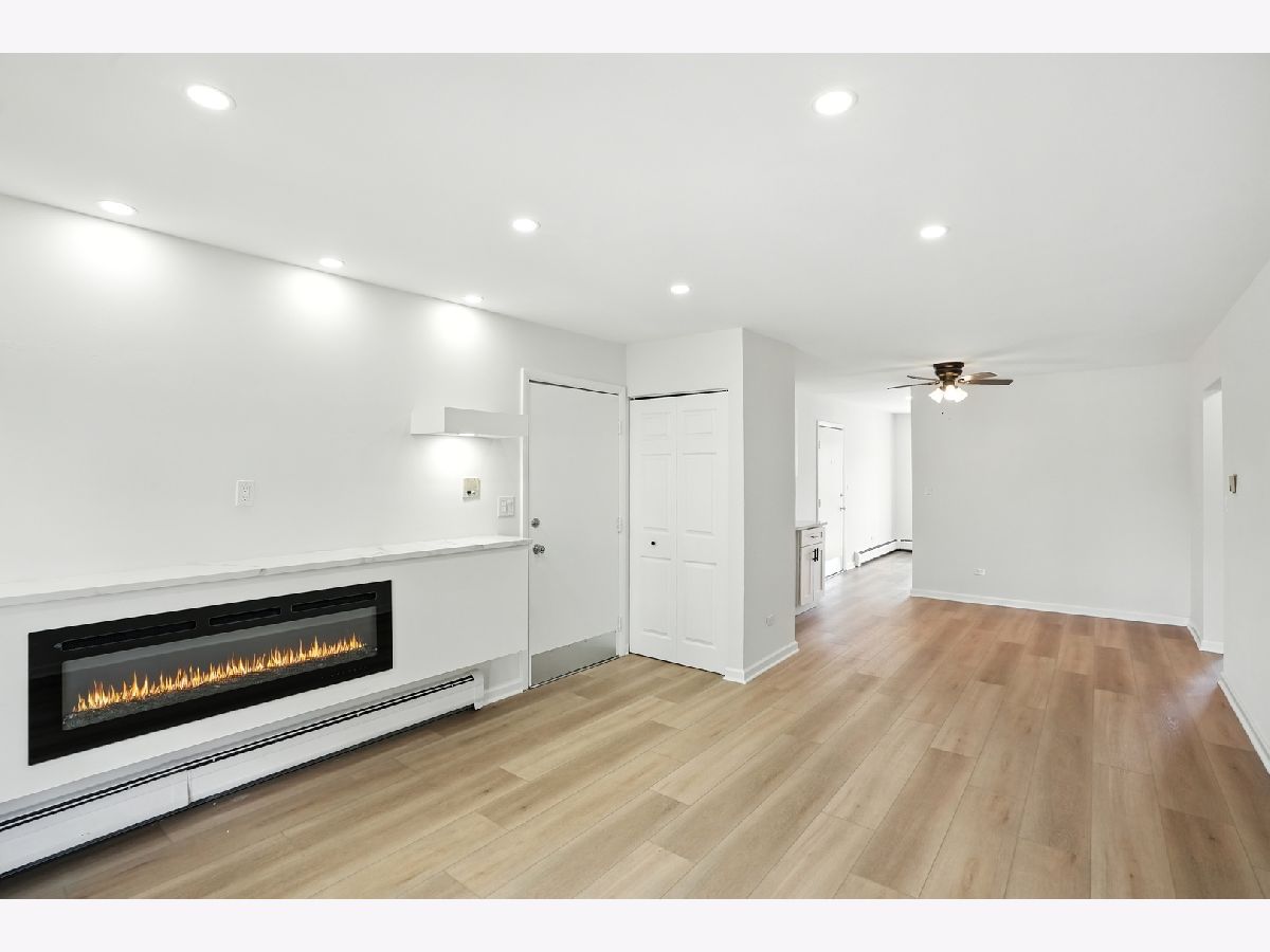 This spacious and bright 2-bedroom, 1-bathroom unit has been completely remodeled from top to bottom with high-end finishes and thoughtful design. Enjoy brand new flooring, modern lighting, and fresh paint throughout, creating a clean, contemporary feel. The open-concept living room includes a custom media center with a cozy fireplace, ideal for relaxing or hosting guests. A designated desk area provides a perfect space for working from home. The gorgeous kitchen features all new cabinets, countertops, and stainless steel appliances, perfect for cooking and entertaining. The bathroom is fully updated with a new vanity and a luxuriously tiled shower that offers a spa-like experience. Bedrooms are spacious and include ample closet space! In Unit Laundry! This thoughtfully updated unit combines comfort and style in every corner don't miss out on this one-of-a-kind unit!