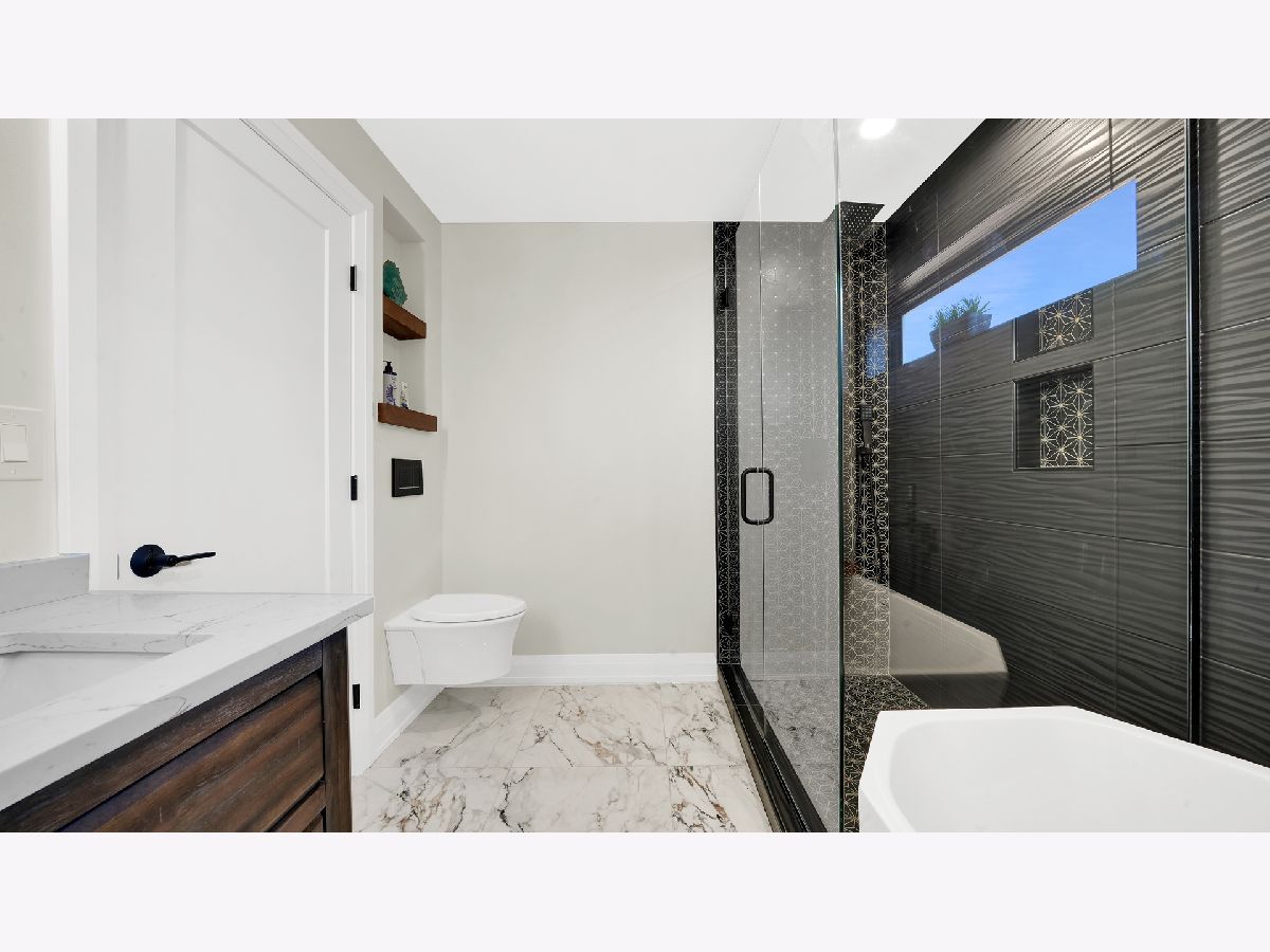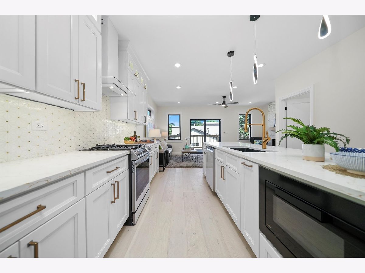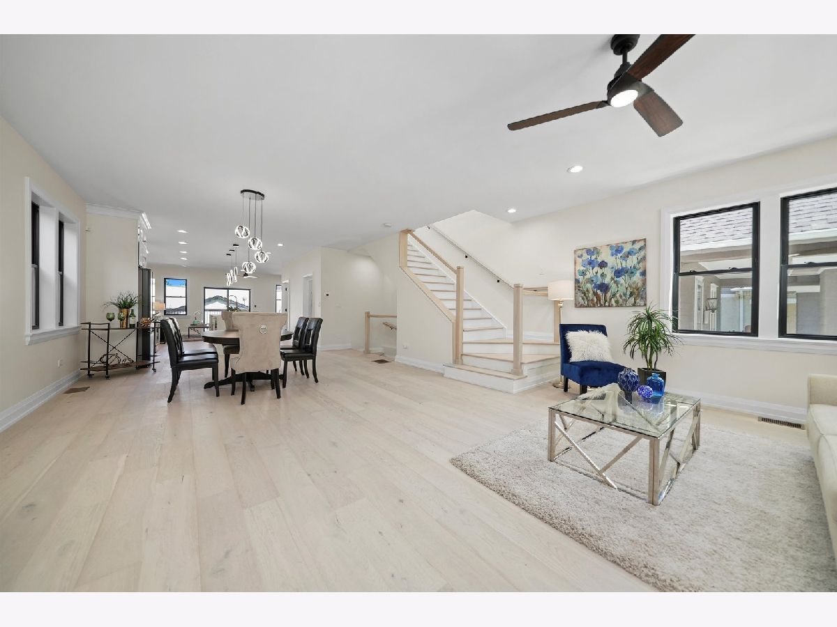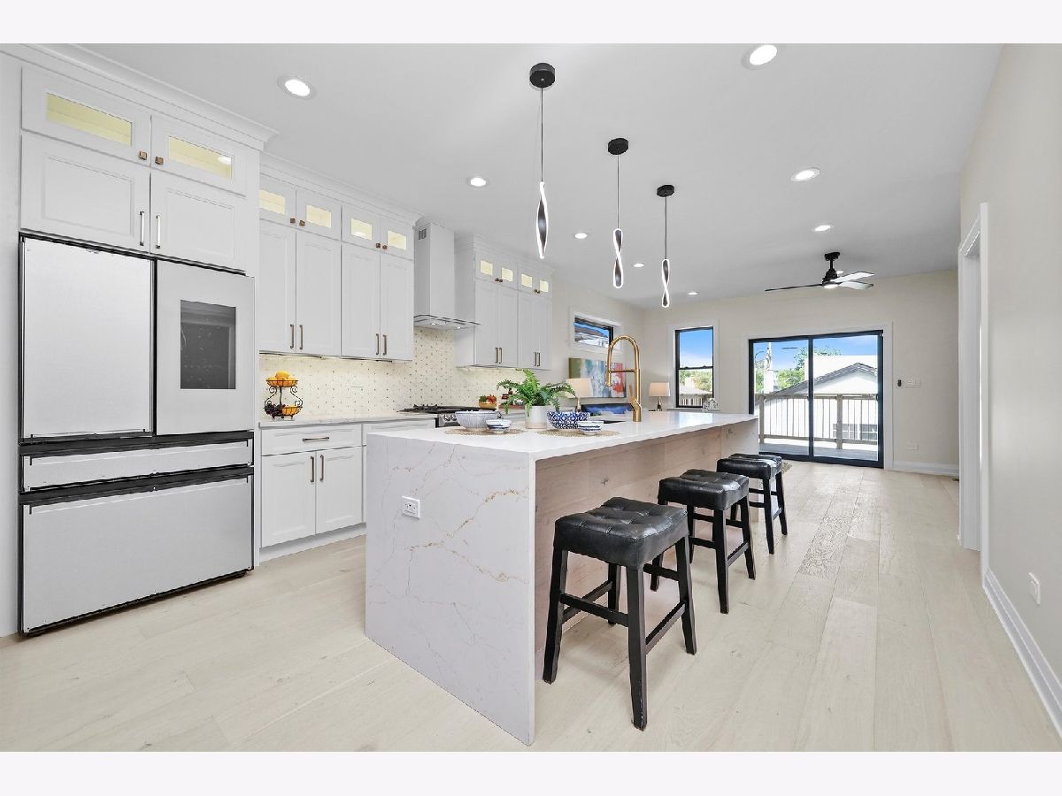 Discover a new lifestyle at this gorgeous NEW CONSTRUCTION two-story forest park home. Truly remarkable views that pleasantly carry over from exterior into the interior of the property. Arrive at the welcoming front porch with above recessed lighting and trex flooring. Walk inside into this complete open concept design, with white wire brushed flooring throughout the first and second floors. Elegant living section combined with the dining area, luxury kitchen and half bathroom. Custom white shaker cabinets with brass hardware, quartz countertop, and alluring tiled backsplash. 12-foot island with a waterfall quartz countertop that can easily seat 4. Stylish matte black fixtures and Samsung's new line of Bespoke appliances. Family room features an electric fireplace ready for a TV placement and leads to the outdoor open wood deck. Find two skylight windows as you are making your way to the second floor with a spacious master suite and three bedrooms. Master bedroom details a Vaulted ceiling, recessed lighting, walk in closet, and private balcony. Astonishing custom-tiled master bathroom with soaker tub, his and hers sink vanity, and glassed stand up shower. Beautiful white tile shower design in the second bathroom with hexagon porcelain flooring and double vanity sink. Laundry is conveniently located next to the master suite. As you make your way to the finished basement, you'll find an 8ft ceiling height, vast entertaining area and half bathroom. Bonus loft in the basement is perfect for children or pets. Sought after wet bar with wine cooler and custom shelves. Walk-out basement leads to the private fenced backyard and all new two car garage. Fantastic location, close to parks, pool, the blue line. Near the I-290 expressway, shopping and fitness centers.