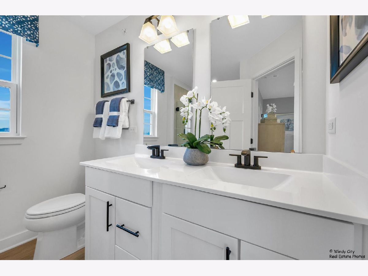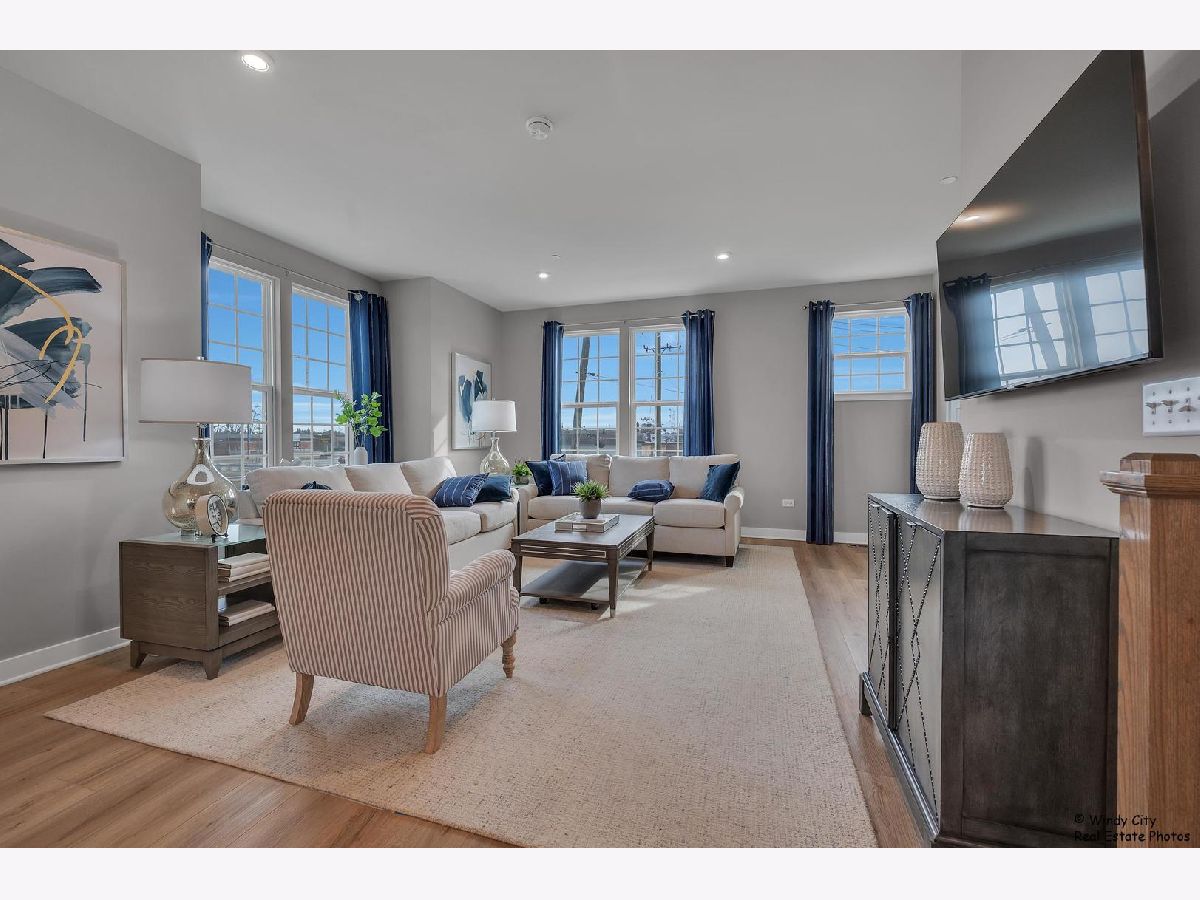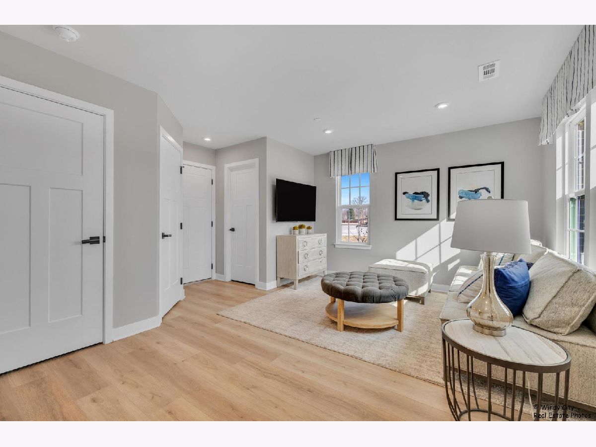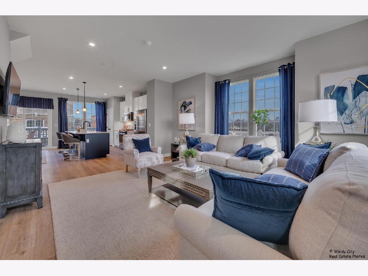 Come see this new construction former model unit and discover the perfect blend of convenience and luxury in this stunning end-unit, 2-car garage townhome in Wheeling! The Mozart offers all the benefits of townhome living with the added features of a single-family home. Step into the spacious first floor recreation room ideal for additional living space or entertaining guests. - the level also offers garage access. On the second floor, an expansive kitchen with a large island seamlessly flows into the bright and airy living room, creating the perfect space for relaxation or hosting gatherings. The kitchen is a chef's dream, featuring upgraded cabinets, sleek stainless steel appliances, and gorgeous quartz countertops. A convenient powder room is also located on this level. Upstairs, you'll find two spacious bedrooms with generous closet space, a full hall bath, and a luxurious owner's suite. The owner's bedroom boasts a huge walk-in closet, while the private owner's bath offers a spa-like experience with a dual vanity and a spacious 5' shower. Located in the desirable London Crossing community, this townhome offers easy access to major roads and is just 1 mile from the Metra, making commuting a breeze. Don't miss your chance to own this low-maintenance home in a prime location! No pets and no smoking in the unit.