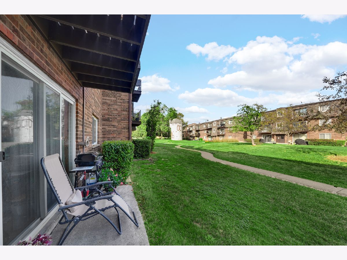 Rarely available first-floor condo in the resort-style Bay Colony community. This well-maintained home is filled with natural light from large windows and a sliding glass door that opens to a private patio with peaceful greenery views. The spacious living area features engineered hardwood floors that extend through both generously sized bedrooms. The updated kitchen is equipped with stainless steel appliances and ceramic tile flooring. For your peace of mind and comfort, the unit features a brand-new 2025 AC, furnace, and water heater. Residents enjoy a convenient laundry room located just across the hallway with a free washer and dryer. The unit includes two parking spaces: one assigned and one unassigned, plus ample guest parking. This amenity-rich complex offers a swimming pool, clubhouse, basketball court, playground, and walking paths. Ideally located with easy access to expressways, public transportation, schools, shopping, and dining.