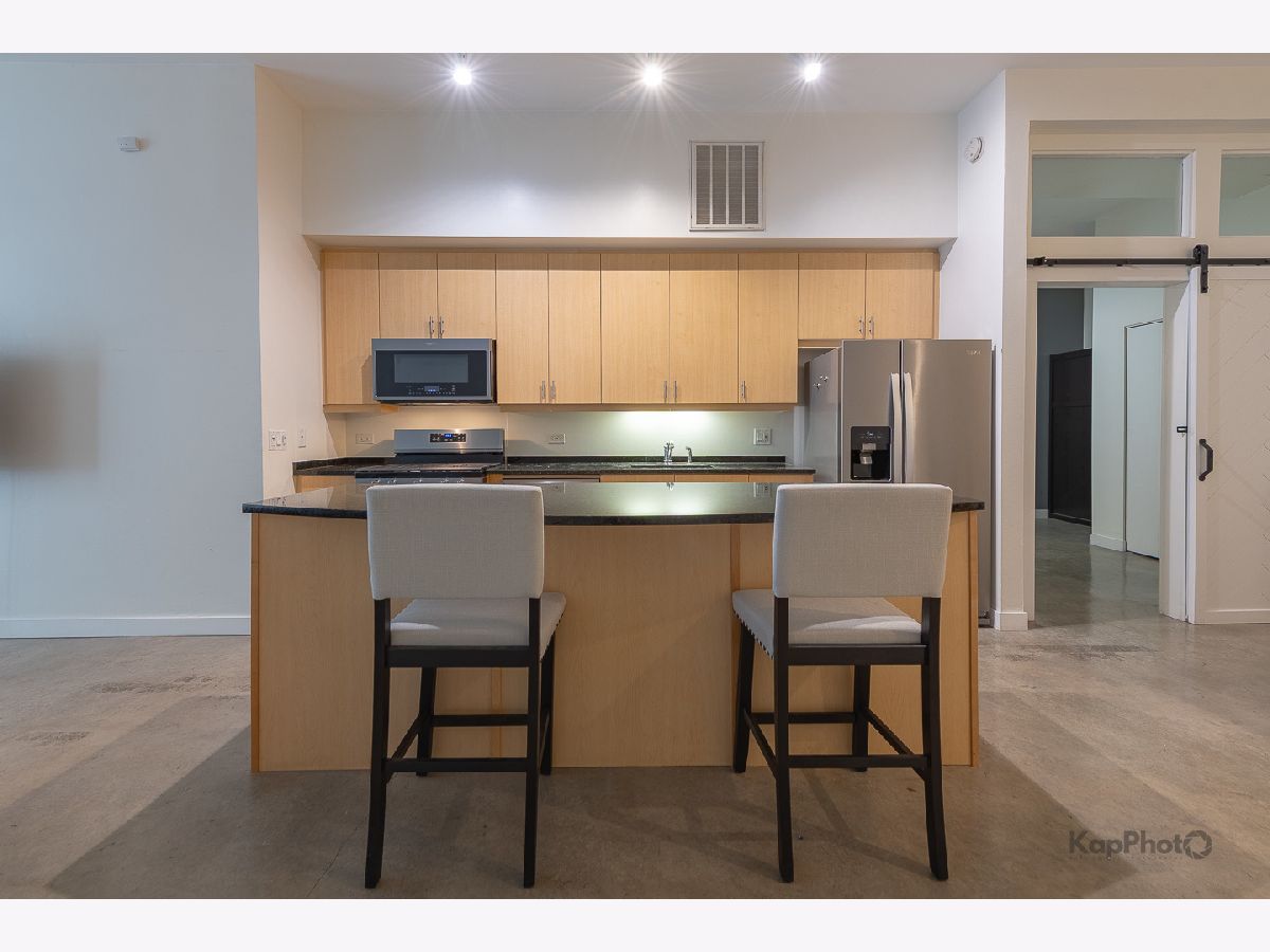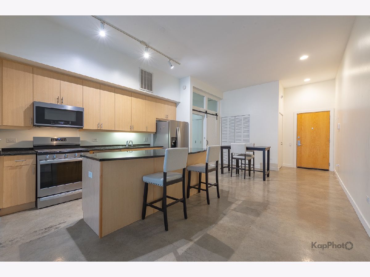 Bright and spacious 2 bed/2 bath in boutique elevator building now available for immediate occupancy. Located in the heart of the West Loop, this unit is appointed with floor-to-ceiling windows, tall ceilings, sleek polished concrete floors, open floor plan, and large balcony over looking Madison Row. Kitchen boasts 6' island, a plethora of cabinet space, granite countertops, and stainless steel appliances. Primary suite with west facing windows, large vanity, marble tile, and large tub. 2nd bedroom is enclosed and en-suite with Murphy bed and farm door which allows it to be used as a bedroom or office. Outdoor parking space on property is available for $200 per month. Set in outstanding West Loop location just steps to Madison Row, Starbucks, Mary Bartelme Park, shops, restaurants, Soho House, Greektown, and the Fulton Market District.