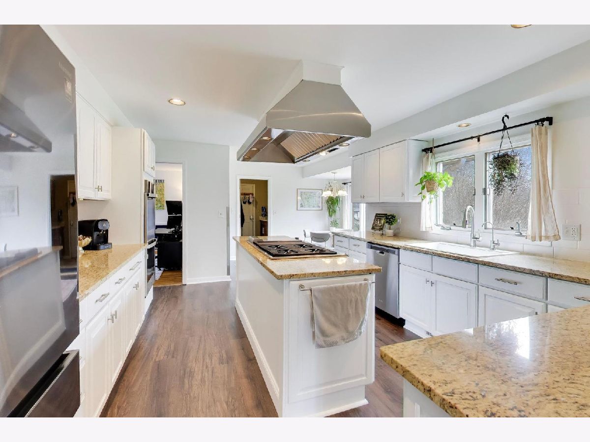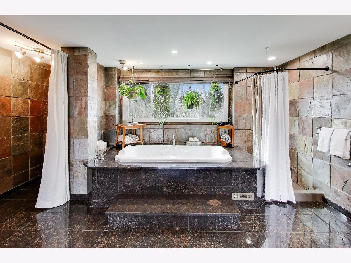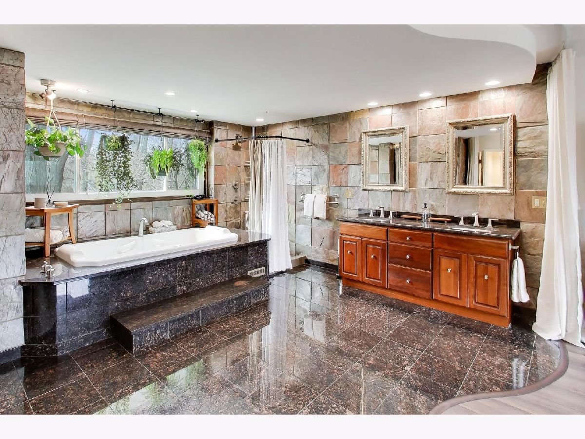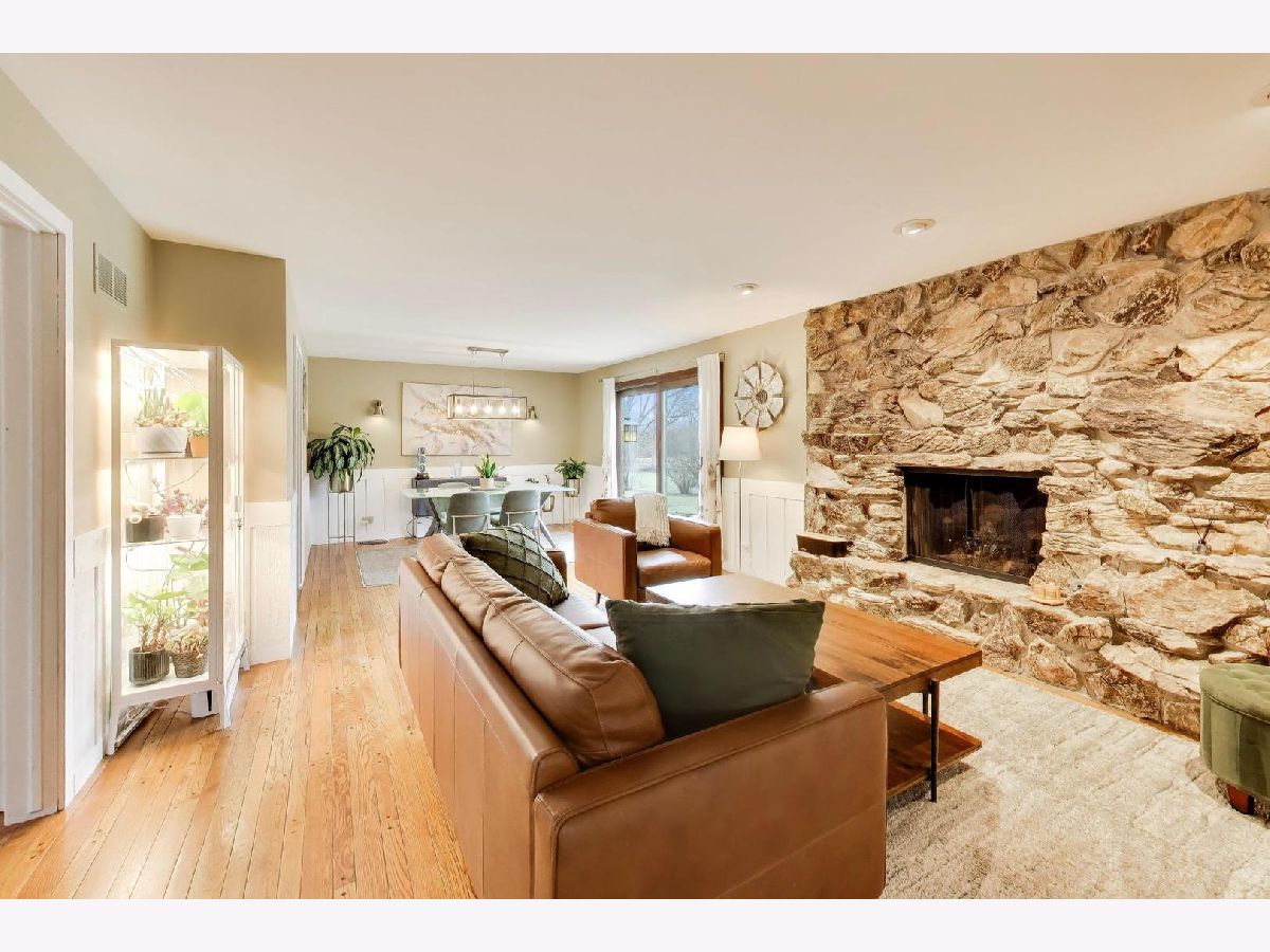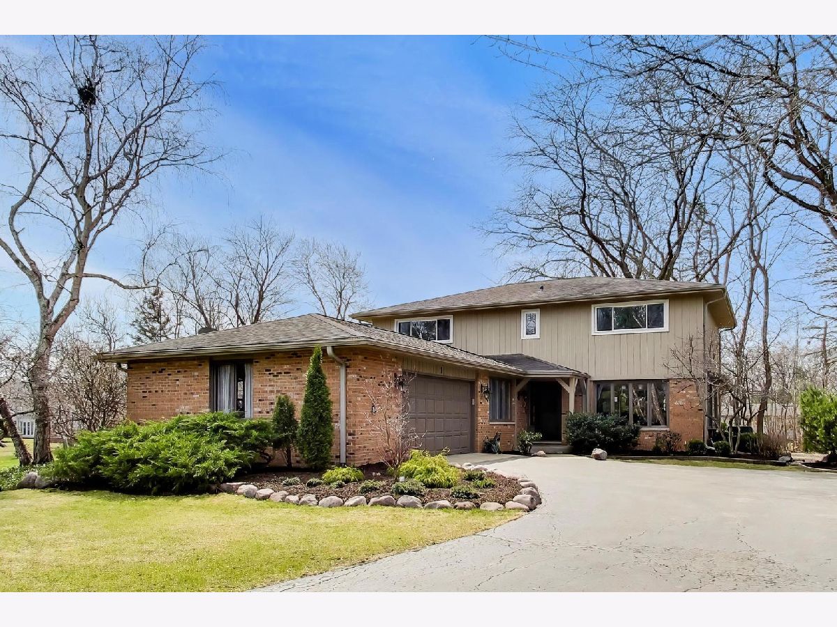 Welcome home to this modern, meticulously maintained two-story in the highly sought-after Glennshire subdivision of Hawthorn Woods! Set on a premium lot of nearly one acre and one of the few homes in the area with public water, this property is surrounded by beautiful gardens and mature pines, maples, and oak trees-creating a peaceful, nature-filled setting where deer and birds are frequent visitors. Step inside to a bright and inviting living room filled with natural light streaming through the tree-lined views. Two spacious main-level offices offers flexibility and can easily function as a multi-generational bedrooms. The updated kitchen features crisp white cabinetry, granite countertops, newer flooring, and stainless steel appliances-providing ample storage and workspace for any home chef. Enjoy casual meals in the breakfast nook or entertain in the separate dining room, with hardwood floors flowing throughout areas of the main level. The oversized family room is perfect for gathering, highlighted by a striking stone fireplace and easy access to your private outdoor retreat. Upstairs, the primary suite is a true sanctuary, complete with a spa-like bath featuring a jetted tub, glassless shower, natural slate and granite finishes, and a generous walk-in closet. Two additional large bedrooms and a full bath with dual sinks complete the second floor. The finished basement expands your living space with a recreation area, game room, additional bedroom, workshop, and abundant storage-ideal for families of all sizes. Enjoy peace of mind with major updates already completed, including a new A/C (2025), newer HVAC system (2023), septic tank (2020), and water heater (2020), along with whole house water filtration system, fresh exterior paint and numerous additional improvements throughout. Located in the award-winning Stevenson School District and just minutes from shopping, dining, and everyday conveniences-this home truly checks every box!