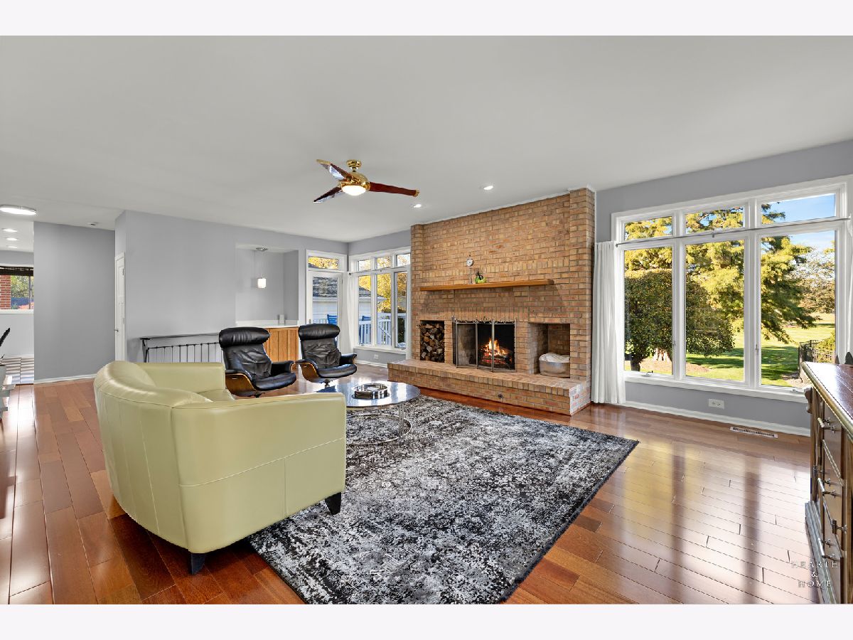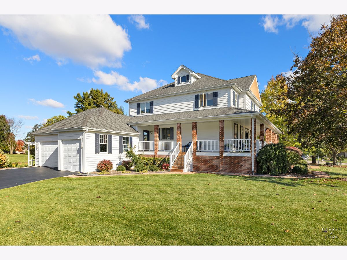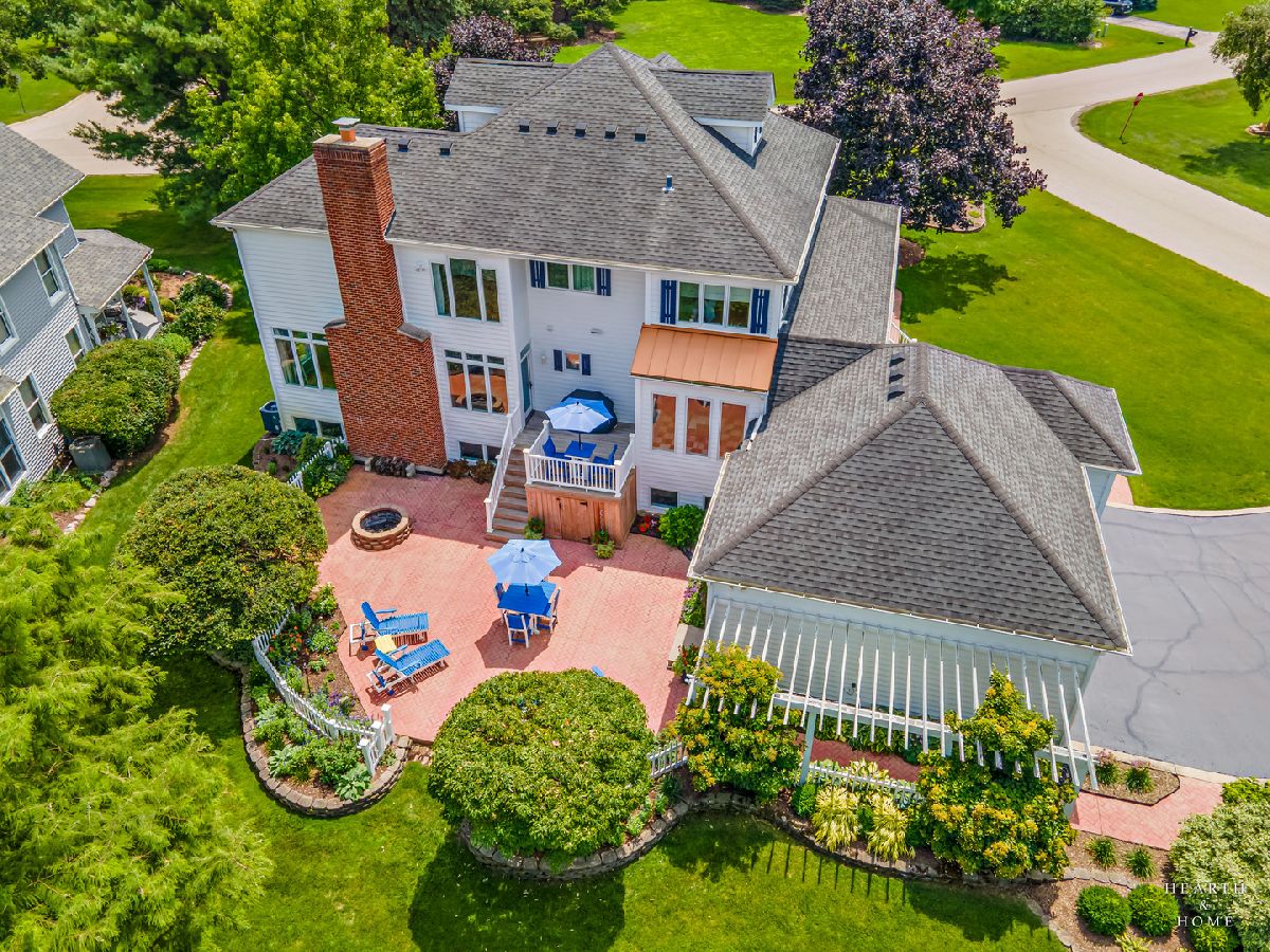 Welcome to this beautifully crafted custom home in the sought-after Chalet Hills Golf Course Estates community! Perfectly positioned on a corner lot across from a quiet neighborhood park, it charms from the start with a wraparound porch, professional landscaping, and timeless curb appeal. Step inside to discover hardwood floors, a freshly painted interior, and abundant natural light streaming through premium Pella windows. The bright, open layout features a chef's kitchen with white cabinetry, quartz countertops, double oven, cooktop range, island seating, a walk-in pantry, and a sunny breakfast nook. The family room is warm and inviting with a brick fireplace and walls of windows showcasing the scenic views. Formal living and dining rooms offer elegant entertaining spaces, while the main-level office with custom built-ins can flex as a fifth bedroom or workspace. Upstairs, unwind in the primary suite with a separate sitting area, walk-in closet, and spa-like bath featuring a freestanding tub and designer shower. Three more bedrooms each with a walk-in closet share a dual vanity hall bath with standing shower and tub. A third-floor attic space is ready to be finished-perfect for a playroom, studio, or guest suite. The full English basement, filled with natural light and roughed in for a bathroom, offers endless potential to create a recreation area, media room, or additional living space. Outdoor living is just as inviting with a stamped concrete patio, deck, colorful perennial gardens, and a firepit. Equipped with dual-zoned HVAC, newer furnaces and A/C units, two 50-gallon water heaters, a recently painted exterior and interior. Meticulously cared for and truly a must-see!