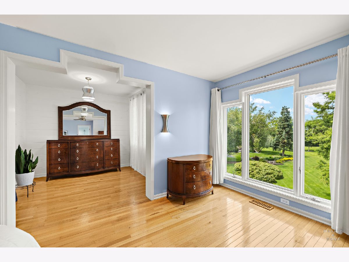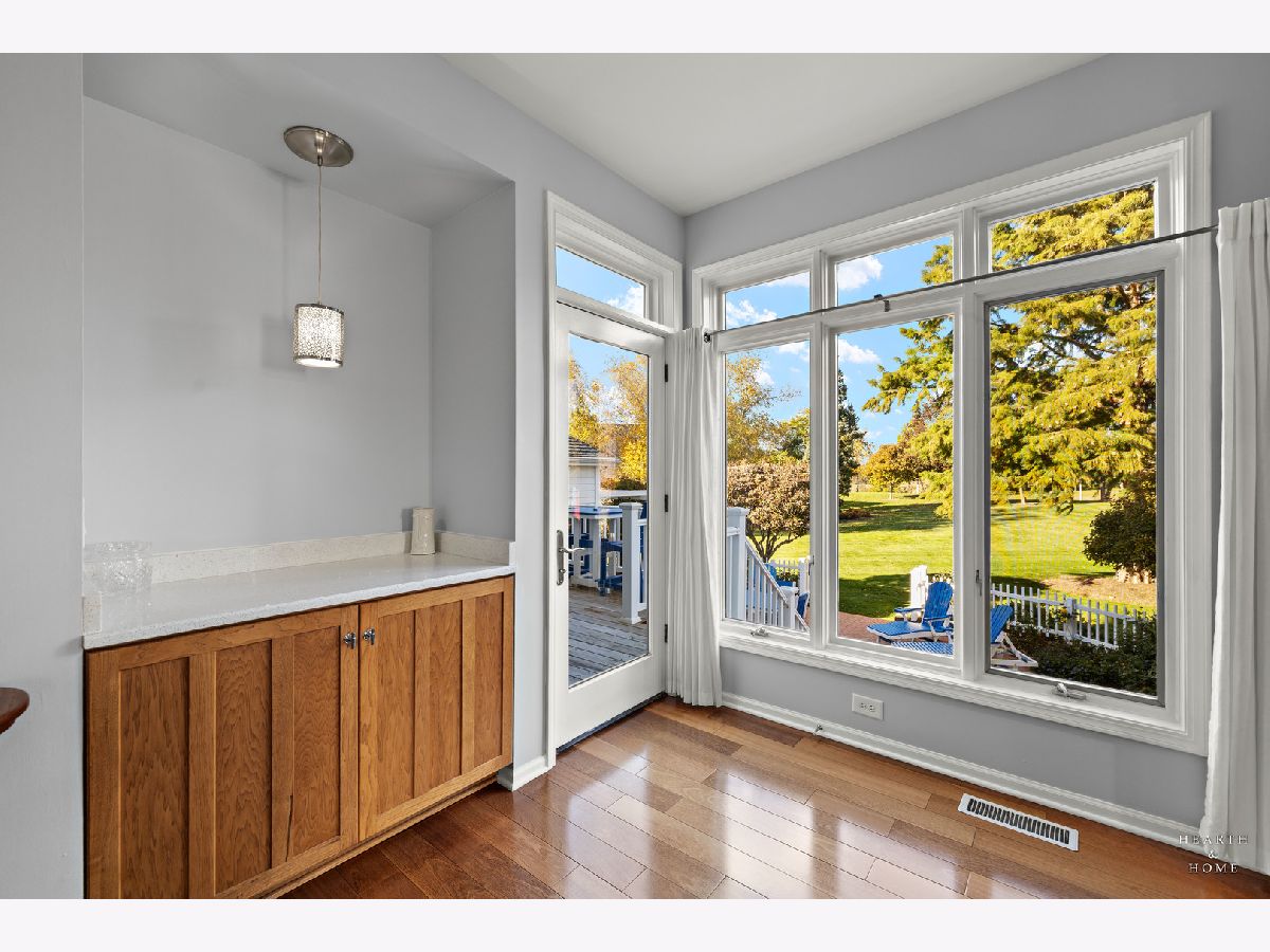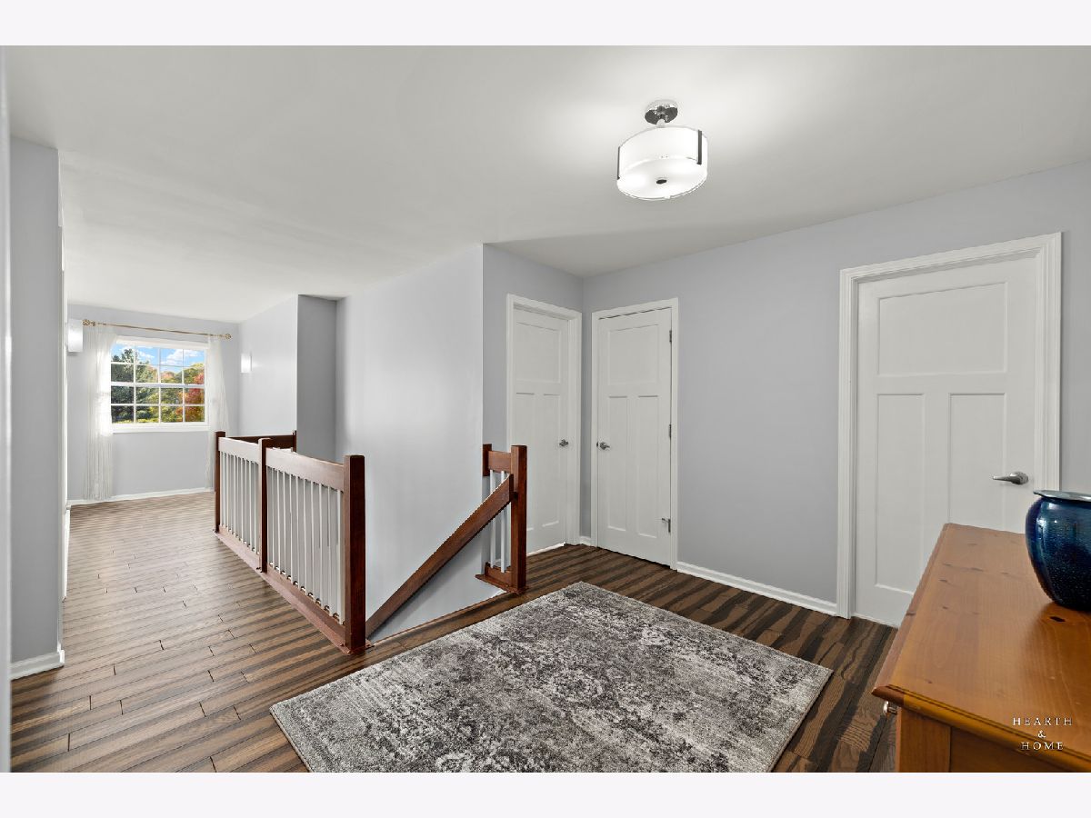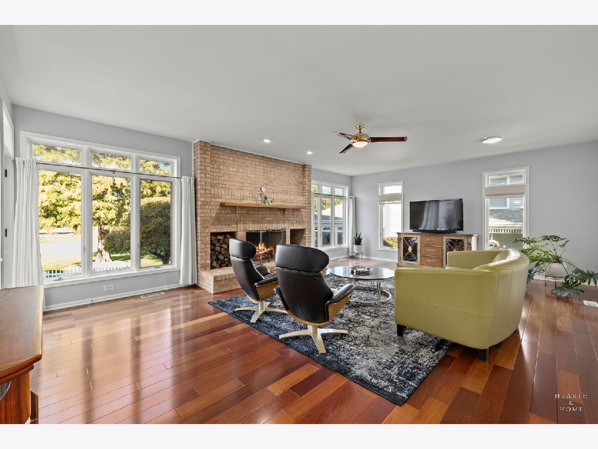 Welcome to this beautifully crafted custom home in the sought-after Chalet Hills Golf Course Estates community! Perfectly positioned on a corner lot across from a quiet neighborhood park, it charms from the start with a wraparound porch, professional landscaping, and timeless curb appeal. Step inside to discover hardwood floors, a freshly painted interior, and abundant natural light streaming through premium Pella windows. The bright, open layout features a chef's kitchen with white cabinetry, quartz countertops, double oven, cooktop range, island seating, a walk-in pantry, and a sunny breakfast nook. The family room is warm and inviting with a brick fireplace and walls of windows showcasing the scenic views. Formal living and dining rooms offer elegant entertaining spaces, while the main-level office with custom built-ins can flex as a fifth bedroom or workspace. Upstairs, unwind in the primary suite with a separate sitting area, walk-in closet, and spa-like bath featuring a freestanding tub and designer shower. Three more bedrooms each with a walk-in closet share a dual vanity hall bath with standing shower and tub. A third-floor attic space is ready to be finished-perfect for a playroom, studio, or guest suite. The full English basement, filled with natural light and roughed in for a bathroom, offers endless potential to create a recreation area, media room, or additional living space. Outdoor living is just as inviting with a stamped concrete patio, deck, colorful perennial gardens, and a firepit. Equipped with dual-zoned HVAC, newer furnaces and A/C units, two 50-gallon water heaters, a recently painted exterior and interior. Meticulously cared for and truly a must-see!