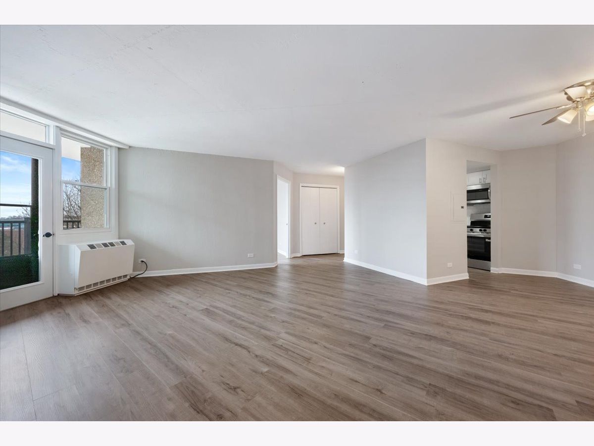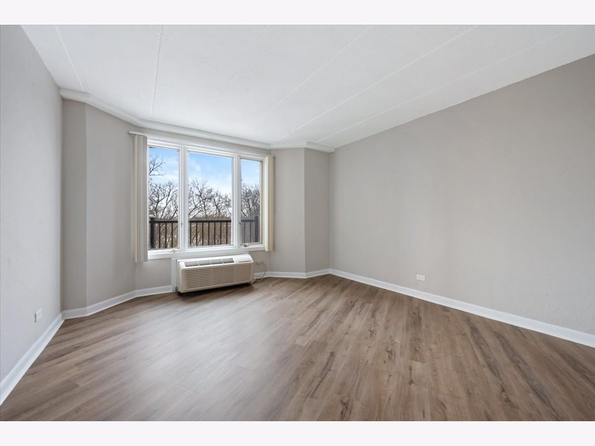 Completely renovated, spacious unit offering comfort, style, and exceptional building amenities. Enjoy peaceful treetop views overlooking the pool and wooded area, creating a relaxing indoor-outdoor connection. You will appreciate the spacious layout, brand-new wide plank flooring, fresh paint throughout, all-new white kitchen with stainless steel appliances and a classic subway tile backsplash. Updates blend modern style with timeless appeal. Both bathrooms have been tastefully improved as well. Features include excellent closet space for easy, organized living, and this is one of twelve units with a brand-new balcony. Free parking is included in the outdoor lot for added convenience. Close proximity to the Palatine Trail, library, and shopping. The building offers a full suite of amenities, including a doorperson who is there M-F 12-8pm and Sat/Sun 8am-8pm, exercise room, onsite manager, pool, party room, and coin laundry. Nothing to do but move in and enjoy!