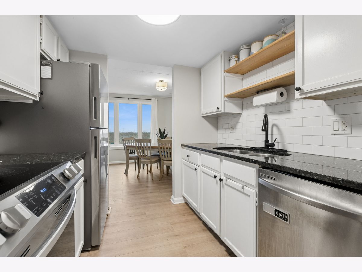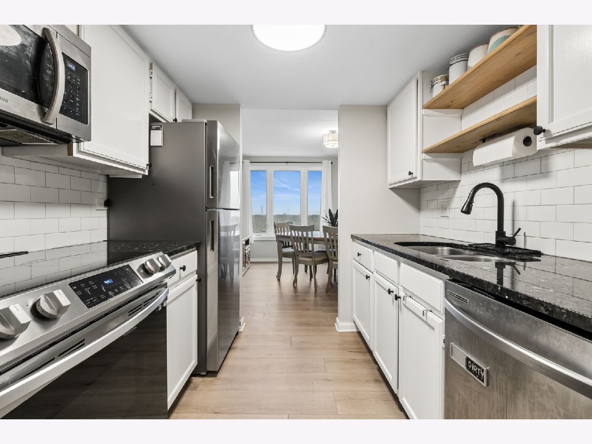 Enjoy resort-style living surrounded by mature trees and natural scenery. This beautifully updated corner condo offers bright, open living spaces and stunning views of the wooded grounds, winding pathways, and creek from every window. The remodeled kitchen features granite countertops, newer appliances, and thoughtful upgrades throughout. The spacious two-bedroom layout includes a generous primary suite with a private bath and large walk-in closet. Skip the gym membership-this community offers a fully equipped fitness room, sauna, and a stylish party room perfect for hosting gatherings. Relax outdoors by the pool, or enjoy quiet time in the library and activity spaces within the building. A elegant lobby with doorperson security, elevator access, and beautifully maintained common areas enhance your everyday living experience. Perfectly situated just minutes from downtown conveniences, shopping, dining, and commuter transportation, this meticulously maintained condo offers comfort, convenience, and a relaxed lifestyle in a beautiful natural setting. Some photos are virtually stages