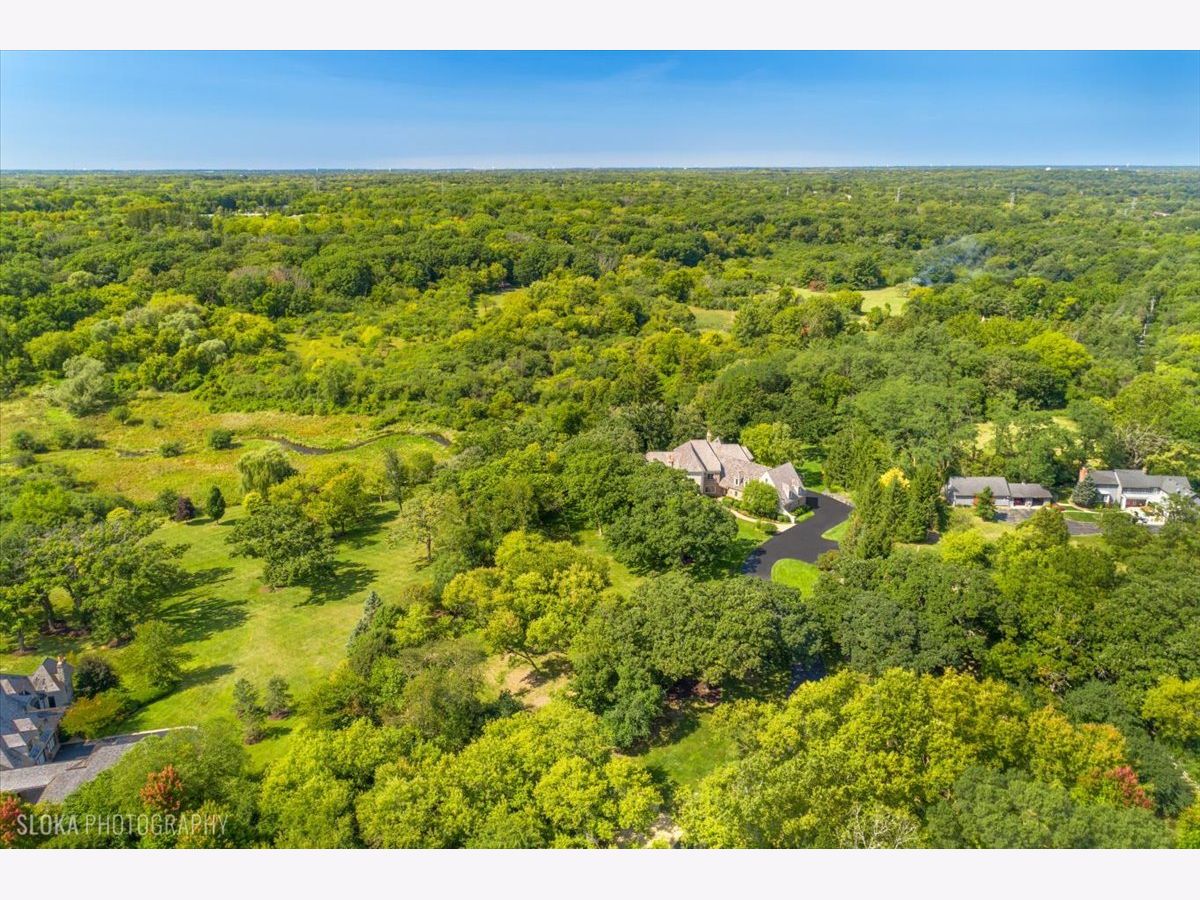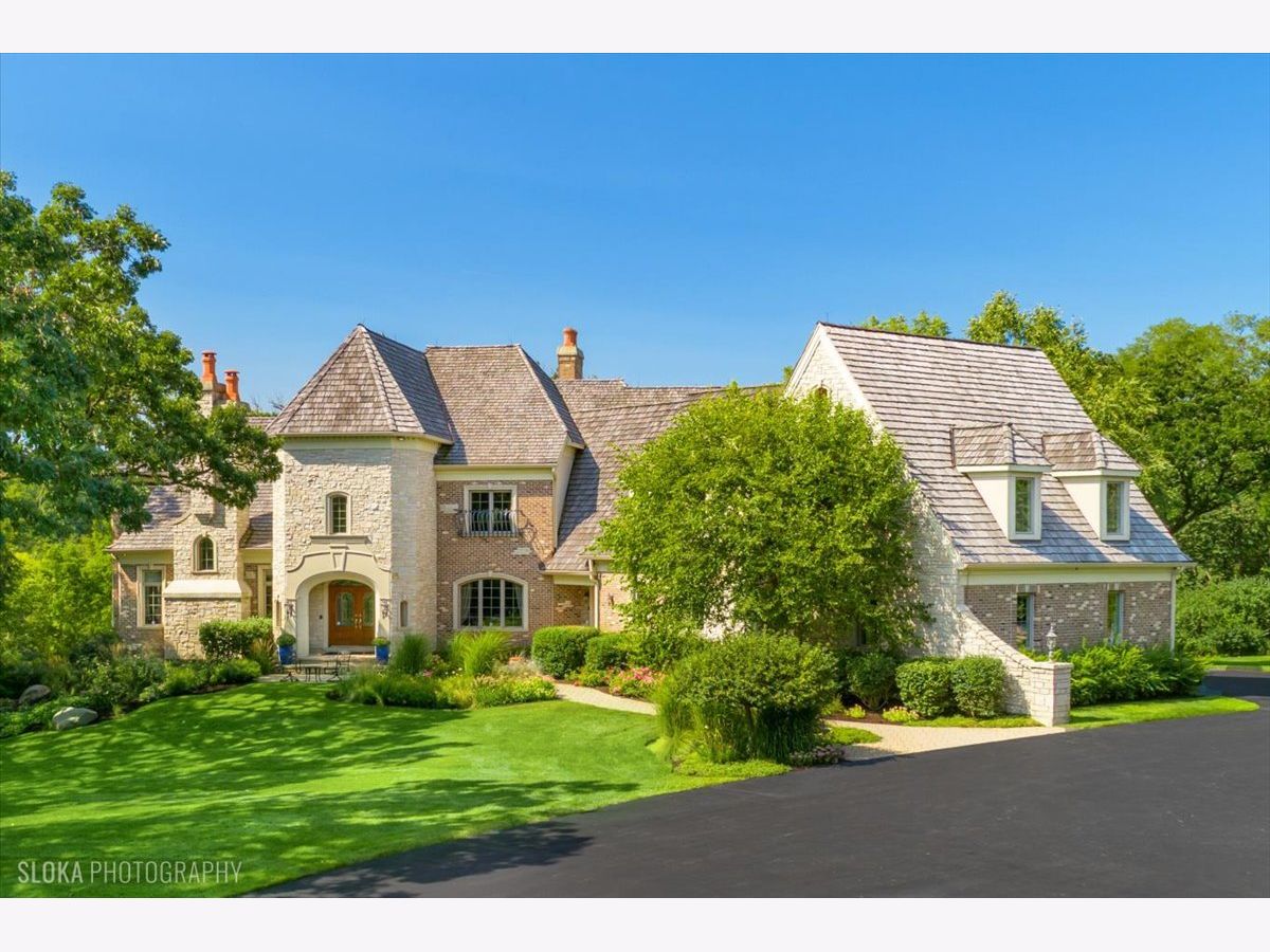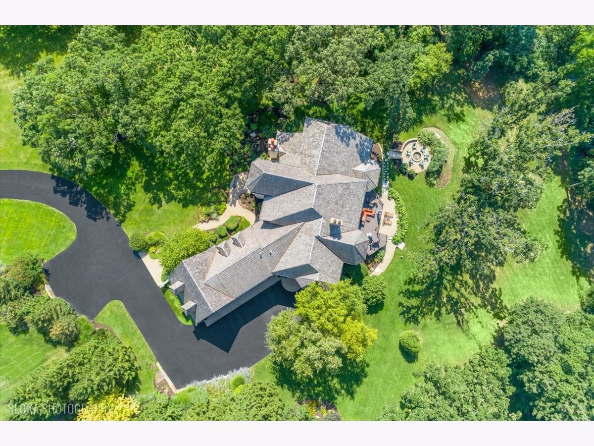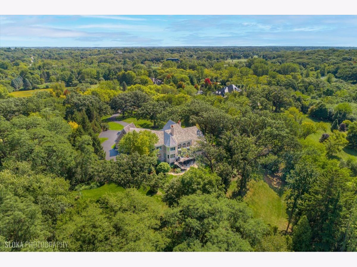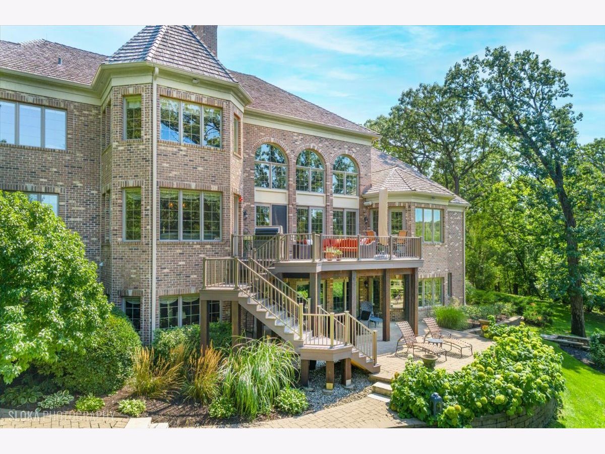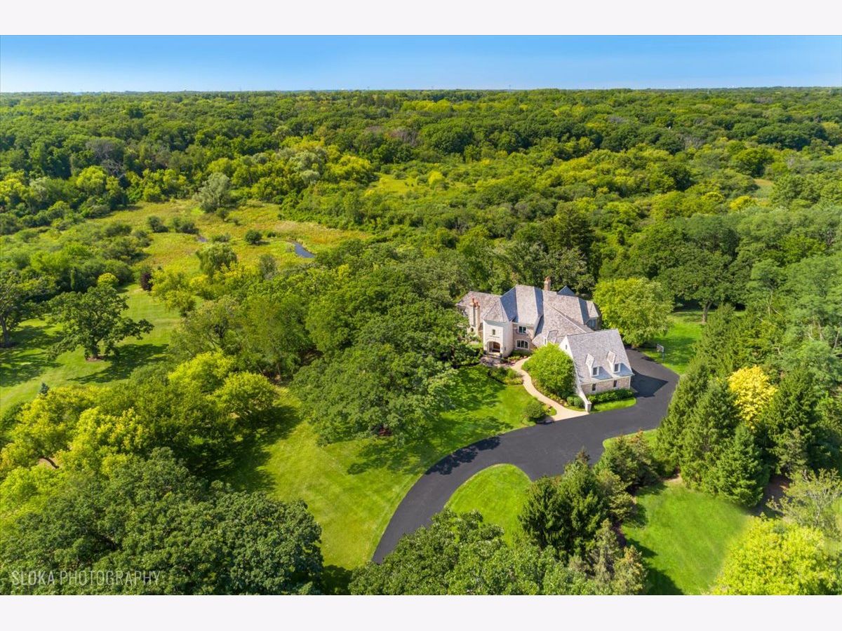 Welcome to a truly exceptional Barrington Hills estate, gracefully set on 5+ acres of serene, storybook beauty. A winding, wooded drive sets the stage, opening to a property with breathtaking, postcard-worthy views in every direction. Inside, you'll find timeless architectural details-stunning coffered ceilings, elegant columns, arched doorways, and an airy, light-filled layout with soaring ceilings and oversized rooms designed to showcase the incredible scenery. Step through the grand entrance into a dramatic two-story foyer crowned by a designer chandelier and a sweeping staircase. The adjacent dining room offers an elegant setting for memorable gatherings and flows seamlessly into the main living areas. From here, sightlines lead you straight into the striking great room, where triple sliders frame the views and a floor-to-ceiling fireplace anchors the space. A chef's delight, the spacious kitchen features a bayed breakfast area with its own fireplace and French door to the deck, along with an island with breakfast bar, top-tier appliances, and a generous walk-in pantry. Double French doors reveal a private study-richly paneled with a stunning stone fireplace with arched window-an ideal work-from-home retreat. The main-floor primary suite is a luxurious haven with a sitting area, deck access, dual walk-in closets, and a spa-inspired ensuite bath. Two half baths, a laundry room, and a rear staircase complete the main level. Upstairs, an impressive balcony walkway overlooking both the foyer and great room sets the tone for the second floor. Three spacious ensuite bedrooms each offer walk-in closets. Two fabulous bonus rooms, a kitchenette, and an additional half bath create the perfect setup for guests, in-laws, or private hobby spaces. Prepare to be wowed by the expansive walkout lower level-an entertainer's dream with a large recreation area, fireplace, game area with wet bar and billiards space, cigar den, second game/play room, fifth ensuite bedroom, and abundant storage. Step out to the deck or paver patio to enjoy lush landscaping, total privacy, and peaceful views of nature. A built-in firepit invites cozy evenings under the stars. Additional highlights include a newer Trex deck (2022), heated 4-car garage, and newer cedar shake roof (2020). All just minutes to town, train, shopping, dining, and award-winning D220 schools. A rare opportunity to own a private luxury retreat in one of Barrington Hills most sought-after settings.