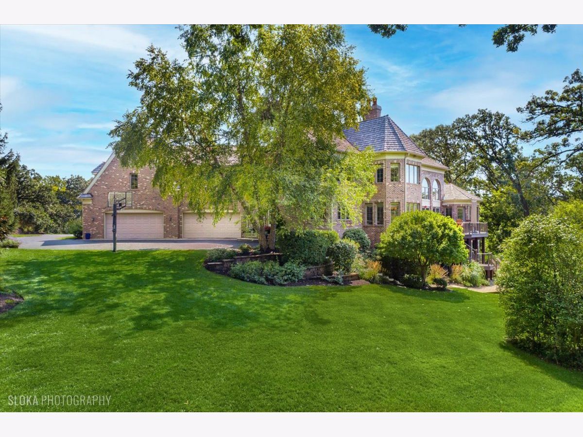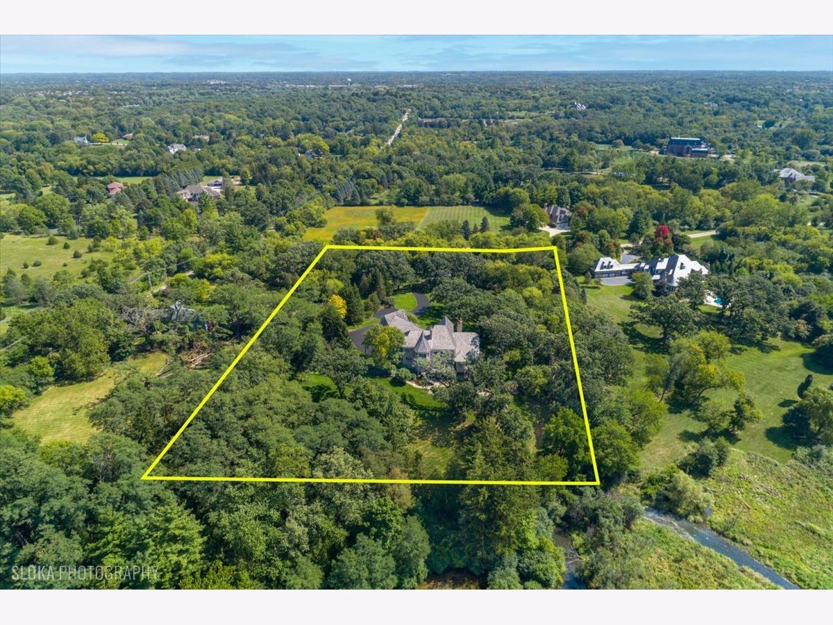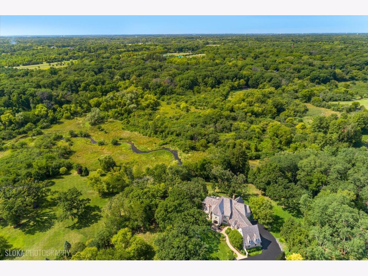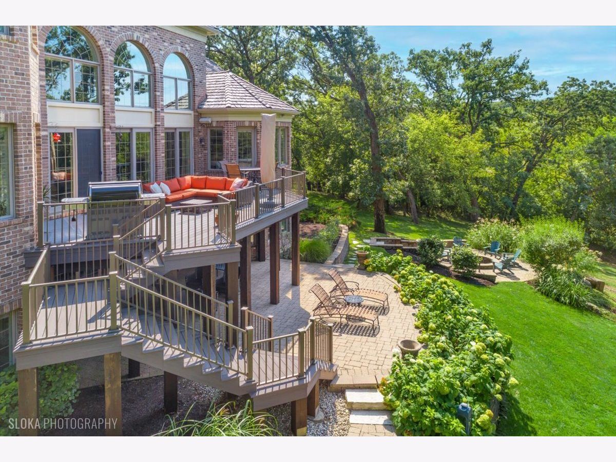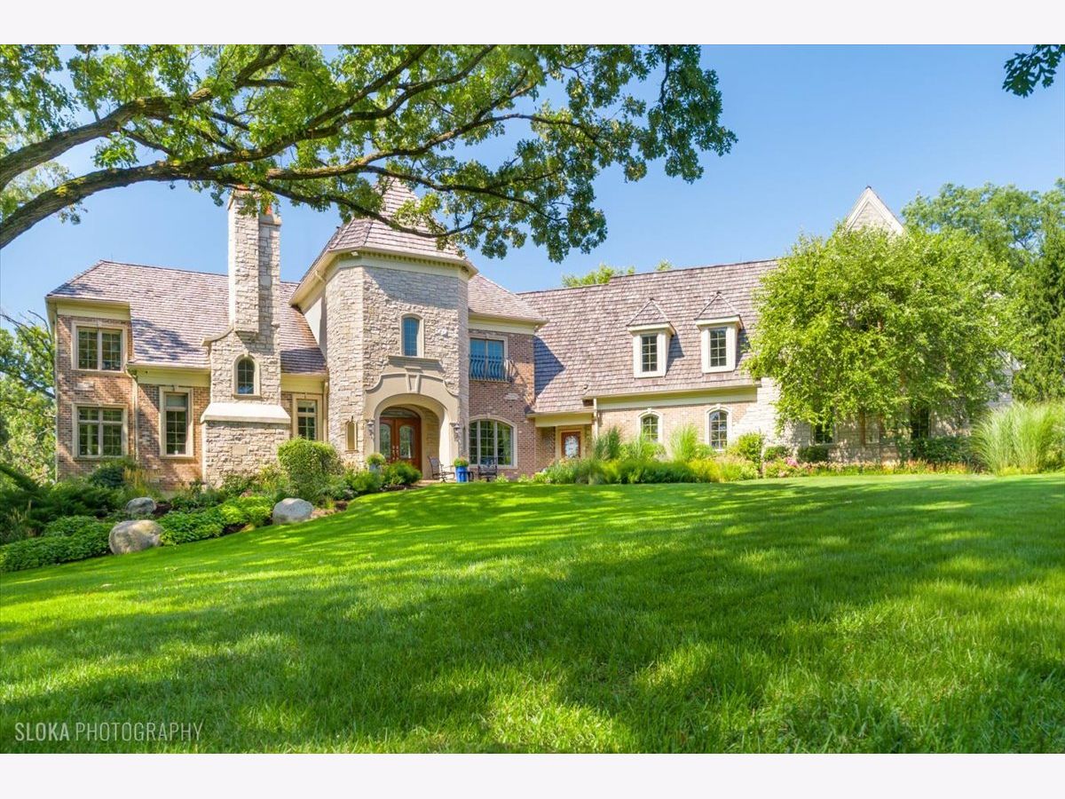 Welcome to a truly exceptional Barrington Hills estate, gracefully set on 5+ acres of serene, storybook beauty. A winding, wooded drive sets the stage, opening to a property with breathtaking, postcard-worthy views in every direction. Inside, you'll find timeless architectural details-stunning coffered ceilings, elegant columns, arched doorways, and an airy, light-filled layout with soaring ceilings and oversized rooms designed to showcase the incredible scenery. Step through the grand entrance into a dramatic two-story foyer crowned by a designer chandelier and a sweeping staircase. The adjacent dining room offers an elegant setting for memorable gatherings and flows seamlessly into the main living areas. From here, sightlines lead you straight into the striking great room, where triple sliders frame the views and a floor-to-ceiling fireplace anchors the space. A chef's delight, the spacious kitchen features a bayed breakfast area with its own fireplace and French door to the deck, along with an island with breakfast bar, top-tier appliances, and a generous walk-in pantry. Double French doors reveal a private study-richly paneled with a stunning stone fireplace with arched window-an ideal work-from-home retreat. The main-floor primary suite is a luxurious haven with a sitting area, deck access, dual walk-in closets, and a spa-inspired ensuite bath. Two half baths, a laundry room, and a rear staircase complete the main level. Upstairs, an impressive balcony walkway overlooking both the foyer and great room sets the tone for the second floor. Three spacious ensuite bedrooms each offer walk-in closets. Two fabulous bonus rooms, a kitchenette, and an additional half bath create the perfect setup for guests, in-laws, or private hobby spaces. Prepare to be wowed by the expansive walkout lower level-an entertainer's dream with a large recreation area, fireplace, game area with wet bar and billiards space, cigar den, second game/play room, fifth ensuite bedroom, and abundant storage. Step out to the deck or paver patio to enjoy lush landscaping, total privacy, and peaceful views of nature. A built-in firepit invites cozy evenings under the stars. Additional highlights include a newer Trex deck (2022), heated 4-car garage, and newer cedar shake roof (2020). All just minutes to town, train, shopping, dining, and award-winning D220 schools. A rare opportunity to own a private luxury retreat in one of Barrington Hills most sought-after settings.