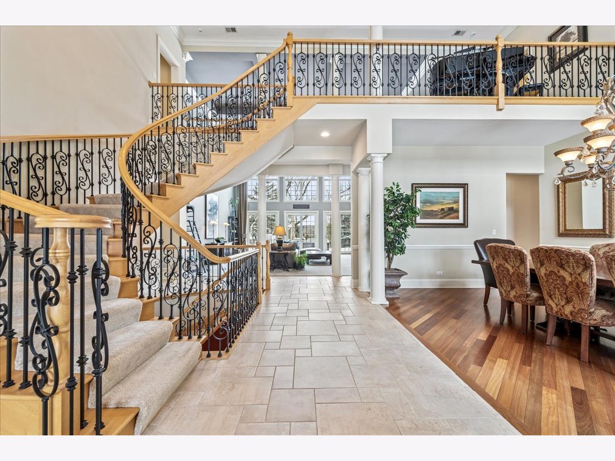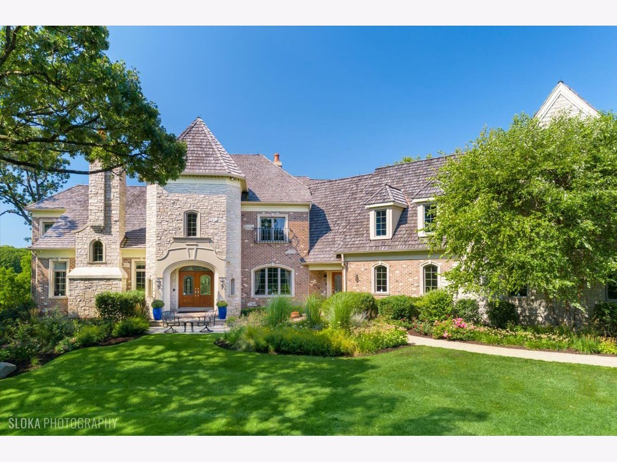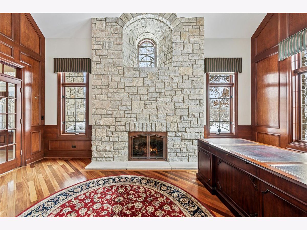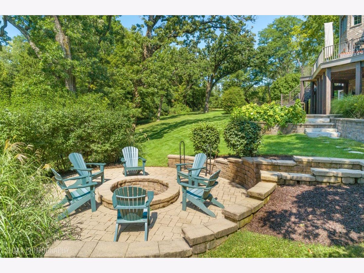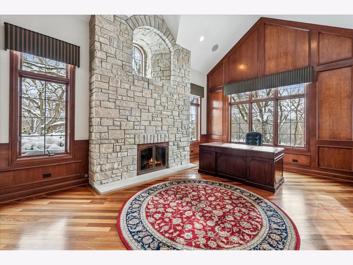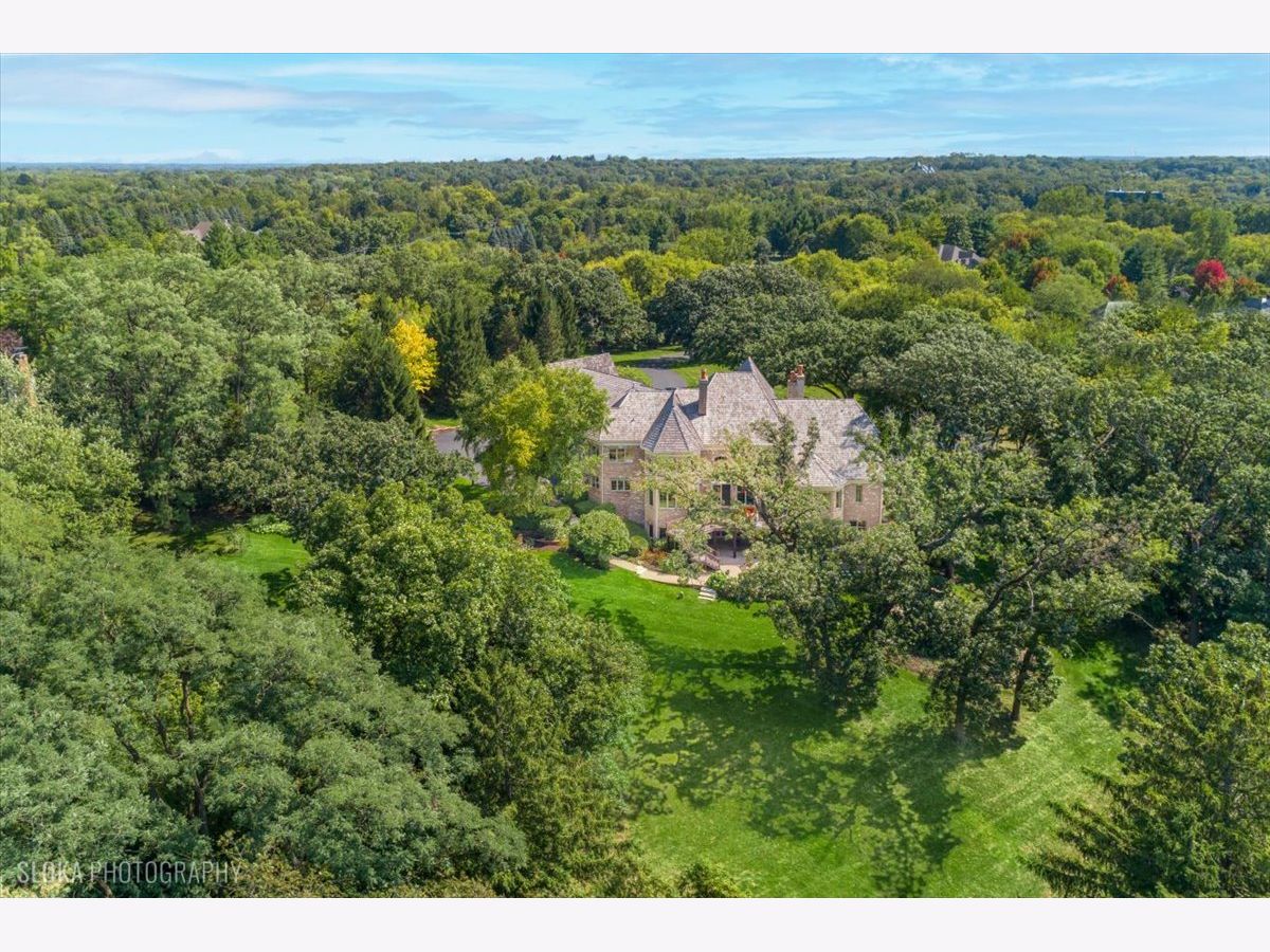 Welcome to a truly exceptional Barrington Hills estate, gracefully set on 5+ acres of serene, storybook beauty. A winding, wooded drive sets the stage, opening to a property with breathtaking, postcard-worthy views in every direction. Inside, you'll find timeless architectural details-stunning coffered ceilings, elegant columns, arched doorways, and an airy, light-filled layout with soaring ceilings and oversized rooms designed to showcase the incredible scenery. Step through the grand entrance into a dramatic two-story foyer crowned by a designer chandelier and a sweeping staircase. The adjacent dining room offers an elegant setting for memorable gatherings and flows seamlessly into the main living areas. From here, sightlines lead you straight into the striking great room, where triple sliders frame the views and a floor-to-ceiling fireplace anchors the space. A chef's delight, the spacious kitchen features a bayed breakfast area with its own fireplace and French door to the deck, along with an island with breakfast bar, top-tier appliances, and a generous walk-in pantry. Double French doors reveal a private study-richly paneled with a stunning stone fireplace with arched window-an ideal work-from-home retreat. The main-floor primary suite is a luxurious haven with a sitting area, deck access, dual walk-in closets, and a spa-inspired ensuite bath. Two half baths, a laundry room, and a rear staircase complete the main level. Upstairs, an impressive balcony walkway overlooking both the foyer and great room sets the tone for the second floor. Three spacious ensuite bedrooms each offer walk-in closets. Two fabulous bonus rooms, a kitchenette, and an additional half bath create the perfect setup for guests, in-laws, or private hobby spaces. Prepare to be wowed by the expansive walkout lower level-an entertainer's dream with a large recreation area, fireplace, game area with wet bar and billiards space, cigar den, second game/play room, fifth ensuite bedroom, and abundant storage. Step out to the deck or paver patio to enjoy lush landscaping, total privacy, and peaceful views of nature. A built-in firepit invites cozy evenings under the stars. Additional highlights include a newer Trex deck (2022), heated 4-car garage, and newer cedar shake roof (2020). All just minutes to town, train, shopping, dining, and award-winning D220 schools. A rare opportunity to own a private luxury retreat in one of Barrington Hills most sought-after settings.