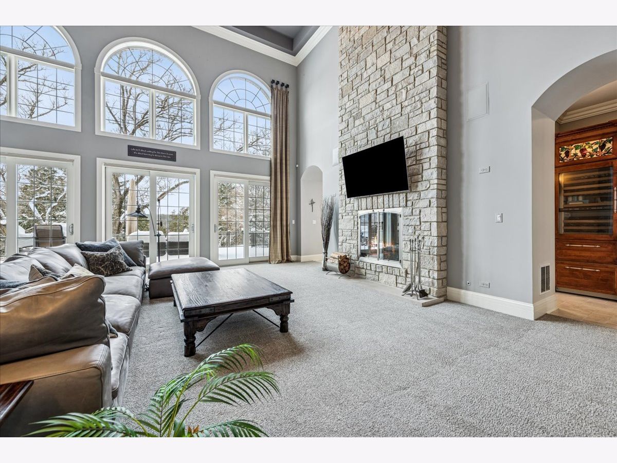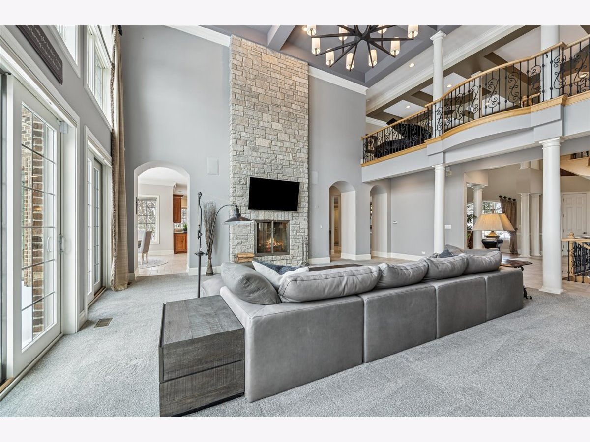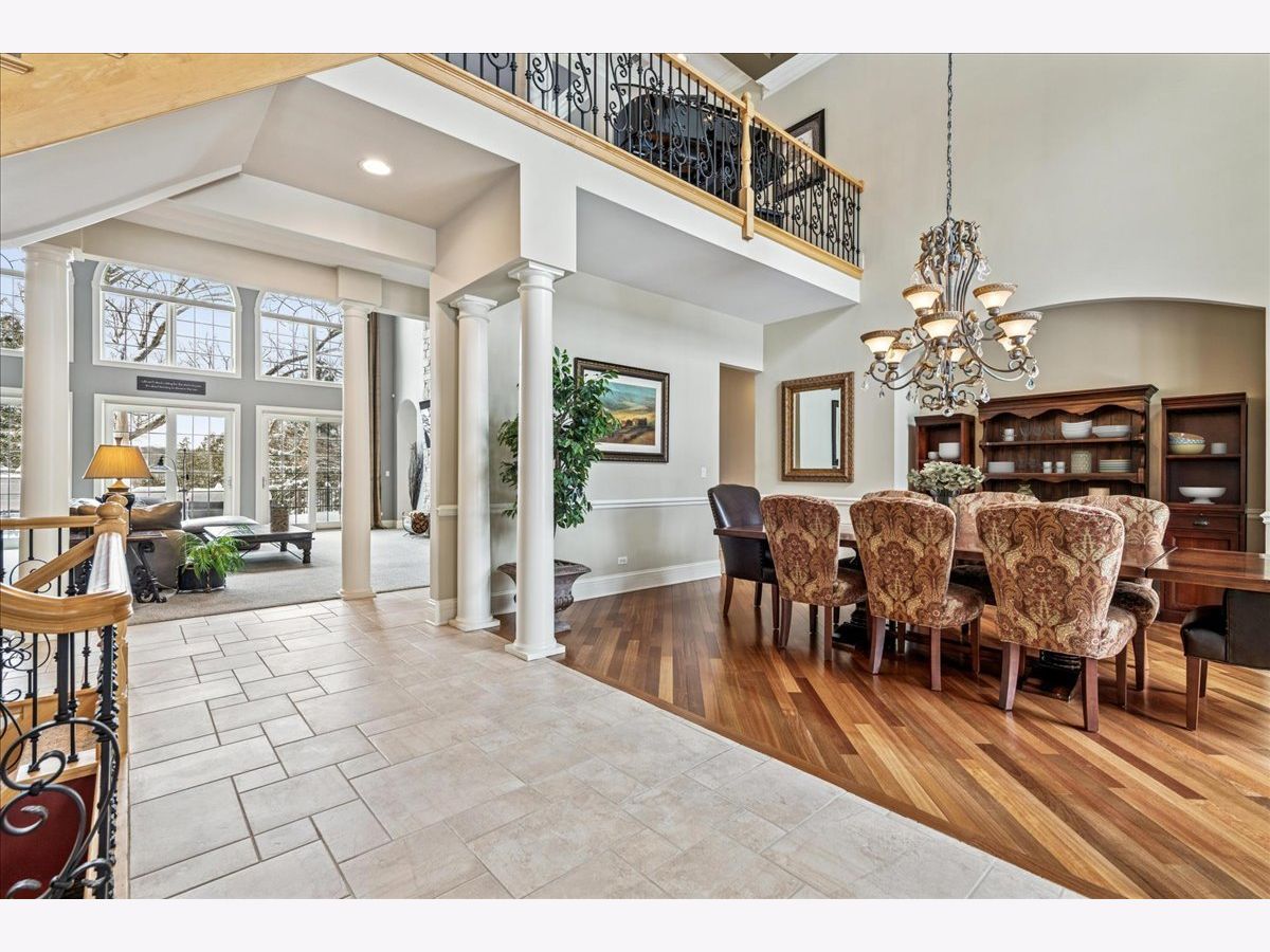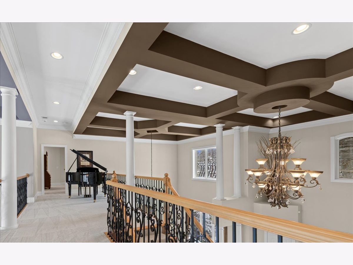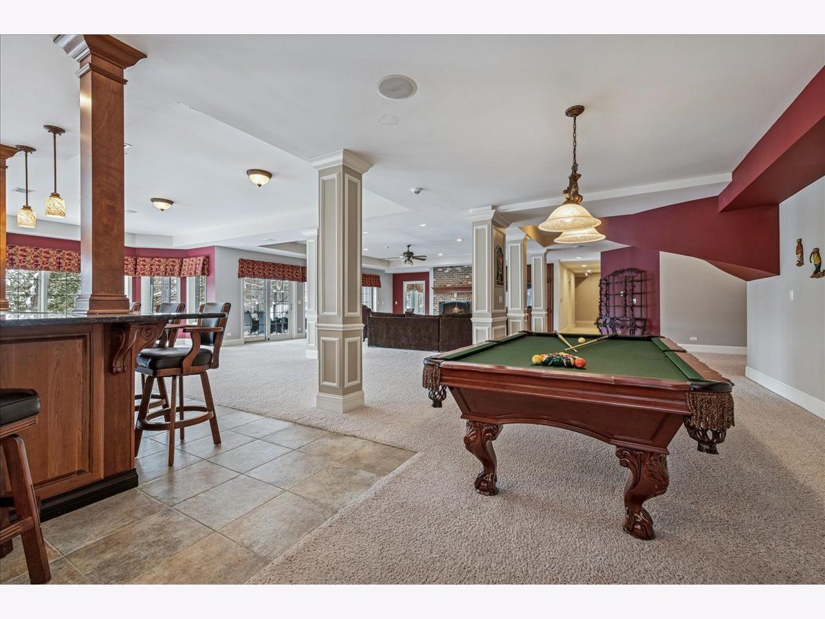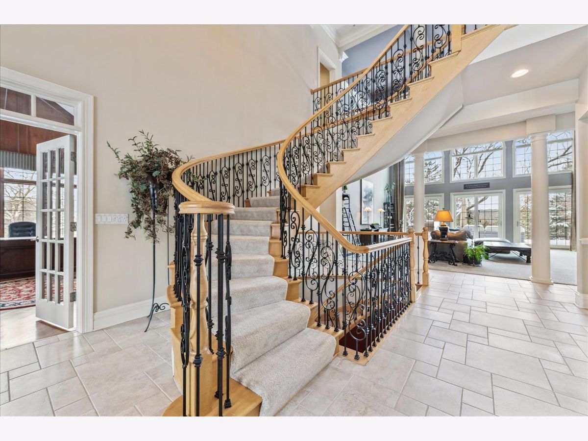 Welcome to a truly exceptional Barrington Hills estate, gracefully set on 5+ acres of serene, storybook beauty. A winding, wooded drive sets the stage, opening to a property with breathtaking, postcard-worthy views in every direction. Inside, you'll find timeless architectural details-stunning coffered ceilings, elegant columns, arched doorways, and an airy, light-filled layout with soaring ceilings and oversized rooms designed to showcase the incredible scenery. Step through the grand entrance into a dramatic two-story foyer crowned by a designer chandelier and a sweeping staircase. The adjacent dining room offers an elegant setting for memorable gatherings and flows seamlessly into the main living areas. From here, sightlines lead you straight into the striking great room, where triple sliders frame the views and a floor-to-ceiling fireplace anchors the space. A chef's delight, the spacious kitchen features a bayed breakfast area with its own fireplace and French door to the deck, along with an island with breakfast bar, top-tier appliances, and a generous walk-in pantry. Double French doors reveal a private study-richly paneled with a stunning stone fireplace with arched window-an ideal work-from-home retreat. The main-floor primary suite is a luxurious haven with a sitting area, deck access, dual walk-in closets, and a spa-inspired ensuite bath. Two half baths, a laundry room, and a rear staircase complete the main level. Upstairs, an impressive balcony walkway overlooking both the foyer and great room sets the tone for the second floor. Three spacious ensuite bedrooms each offer walk-in closets. Two fabulous bonus rooms, a kitchenette, and an additional half bath create the perfect setup for guests, in-laws, or private hobby spaces. Prepare to be wowed by the expansive walkout lower level-an entertainer's dream with a large recreation area, fireplace, game area with wet bar and billiards space, cigar den, second game/play room, fifth ensuite bedroom, and abundant storage. Step out to the deck or paver patio to enjoy lush landscaping, total privacy, and peaceful views of nature. A built-in firepit invites cozy evenings under the stars. Additional highlights include a newer Trex deck (2022), heated 4-car garage, and newer cedar shake roof (2020). All just minutes to town, train, shopping, dining, and award-winning D220 schools. A rare opportunity to own a private luxury retreat in one of Barrington Hills most sought-after settings.