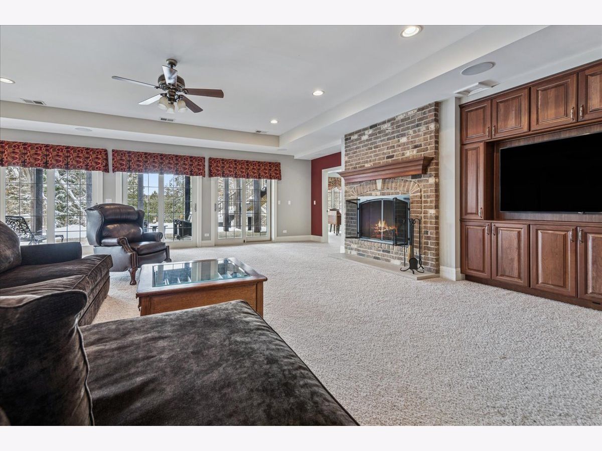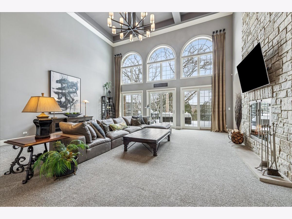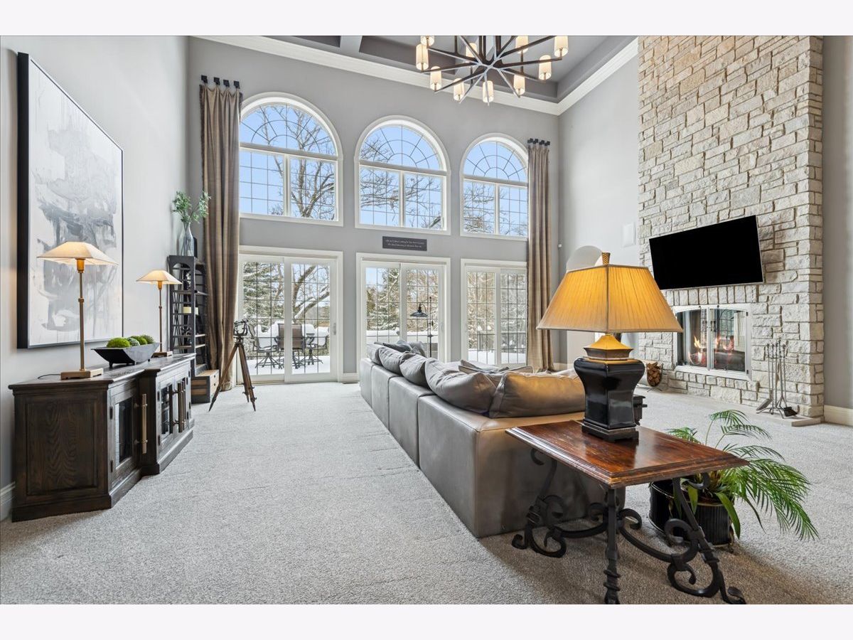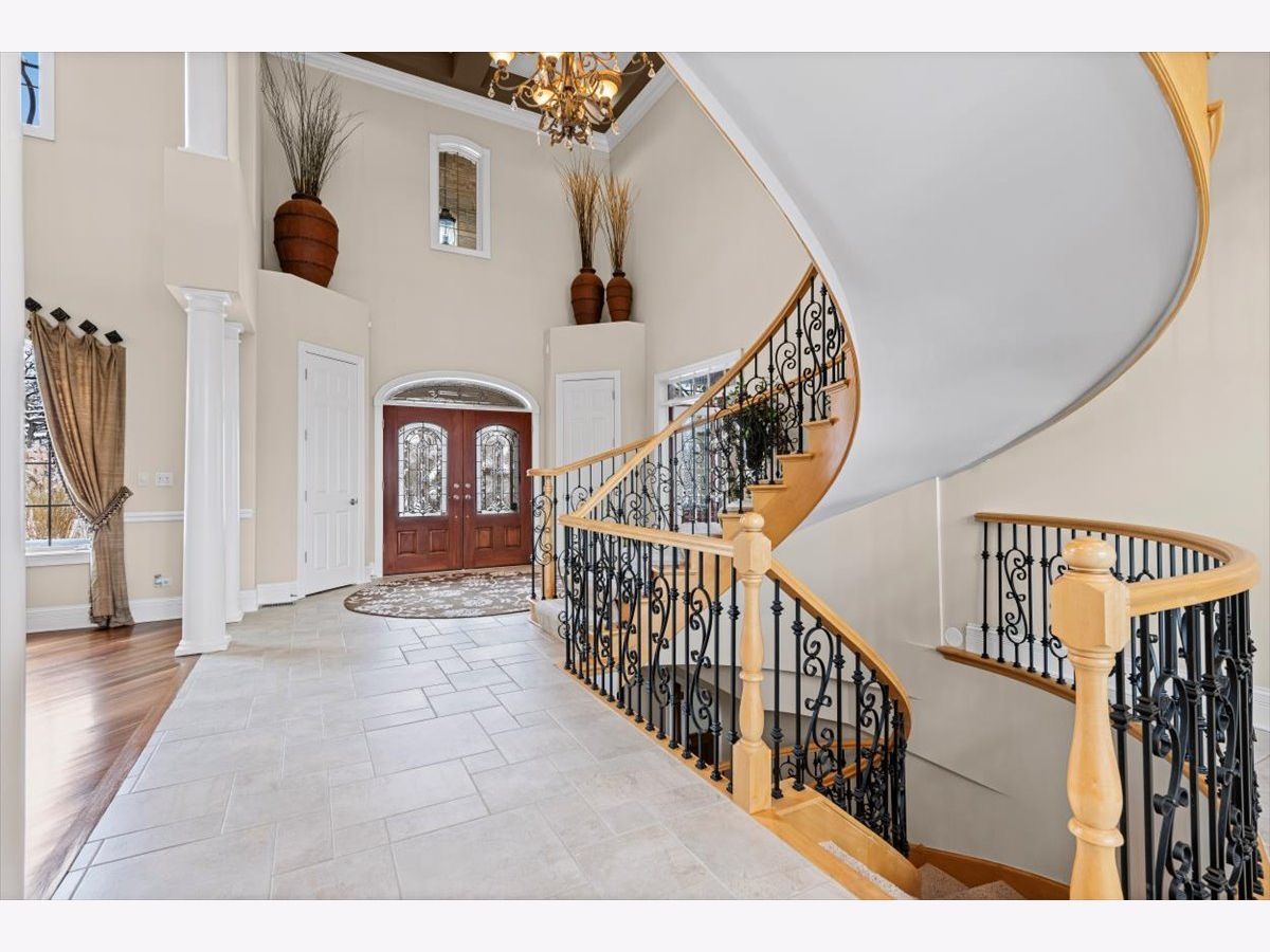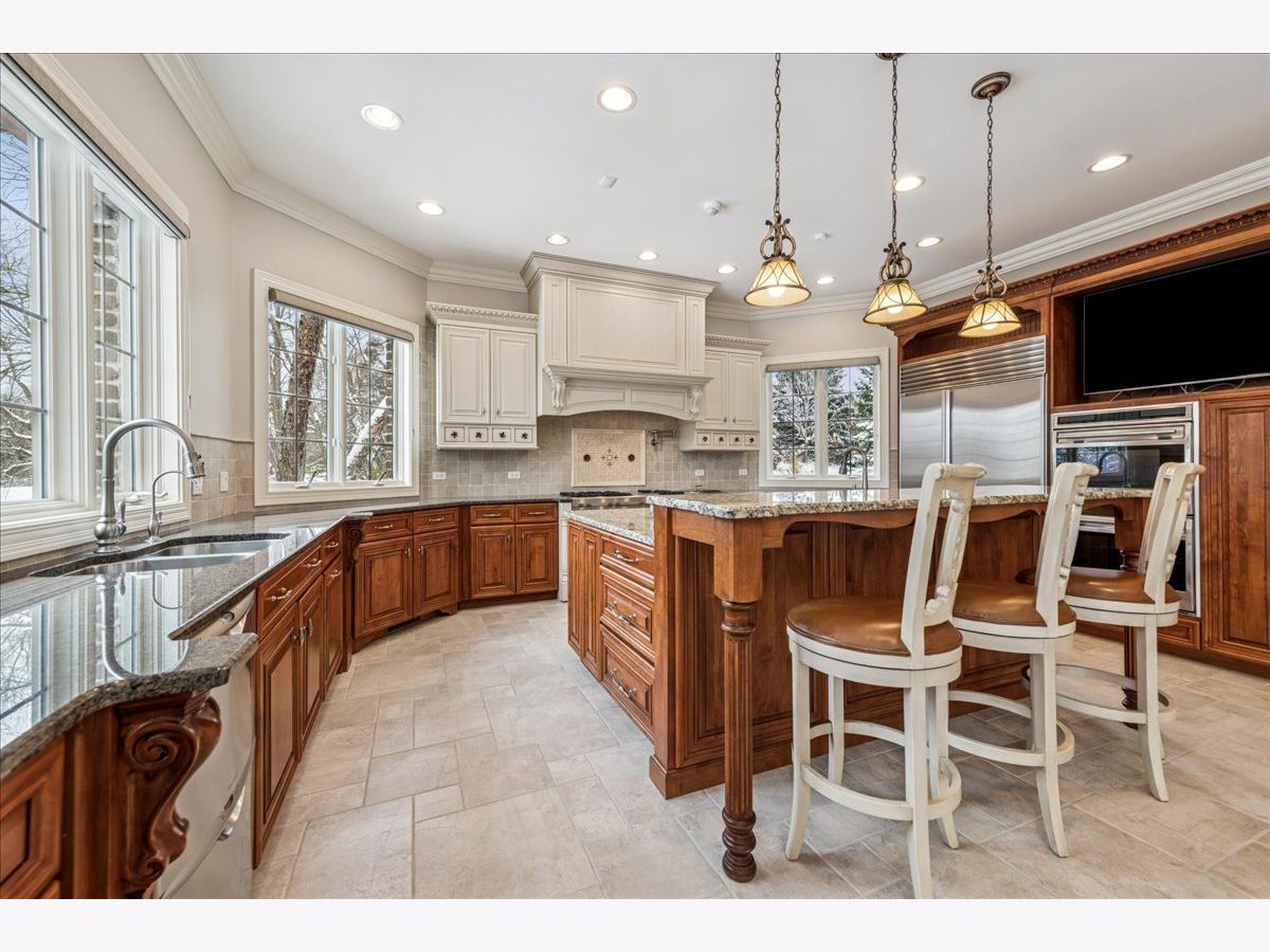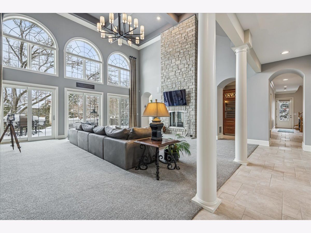 Welcome to a truly exceptional Barrington Hills estate, gracefully set on 5+ acres of serene, storybook beauty. A winding, wooded drive sets the stage, opening to a property with breathtaking, postcard-worthy views in every direction. Inside, you'll find timeless architectural details-stunning coffered ceilings, elegant columns, arched doorways, and an airy, light-filled layout with soaring ceilings and oversized rooms designed to showcase the incredible scenery. Step through the grand entrance into a dramatic two-story foyer crowned by a designer chandelier and a sweeping staircase. The adjacent dining room offers an elegant setting for memorable gatherings and flows seamlessly into the main living areas. From here, sightlines lead you straight into the striking great room, where triple sliders frame the views and a floor-to-ceiling fireplace anchors the space. A chef's delight, the spacious kitchen features a bayed breakfast area with its own fireplace and French door to the deck, along with an island with breakfast bar, top-tier appliances, and a generous walk-in pantry. Double French doors reveal a private study-richly paneled with a stunning stone fireplace with arched window-an ideal work-from-home retreat. The main-floor primary suite is a luxurious haven with a sitting area, deck access, dual walk-in closets, and a spa-inspired ensuite bath. Two half baths, a laundry room, and a rear staircase complete the main level. Upstairs, an impressive balcony walkway overlooking both the foyer and great room sets the tone for the second floor. Three spacious ensuite bedrooms each offer walk-in closets. Two fabulous bonus rooms, a kitchenette, and an additional half bath create the perfect setup for guests, in-laws, or private hobby spaces. Prepare to be wowed by the expansive walkout lower level-an entertainer's dream with a large recreation area, fireplace, game area with wet bar and billiards space, cigar den, second game/play room, fifth ensuite bedroom, and abundant storage. Step out to the deck or paver patio to enjoy lush landscaping, total privacy, and peaceful views of nature. A built-in firepit invites cozy evenings under the stars. Additional highlights include a newer Trex deck (2022), heated 4-car garage, and newer cedar shake roof (2020). All just minutes to town, train, shopping, dining, and award-winning D220 schools. A rare opportunity to own a private luxury retreat in one of Barrington Hills most sought-after settings.