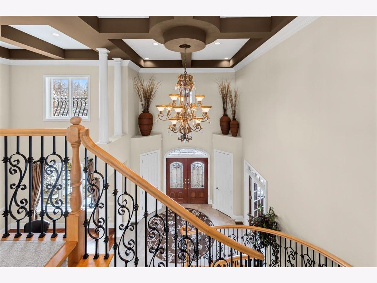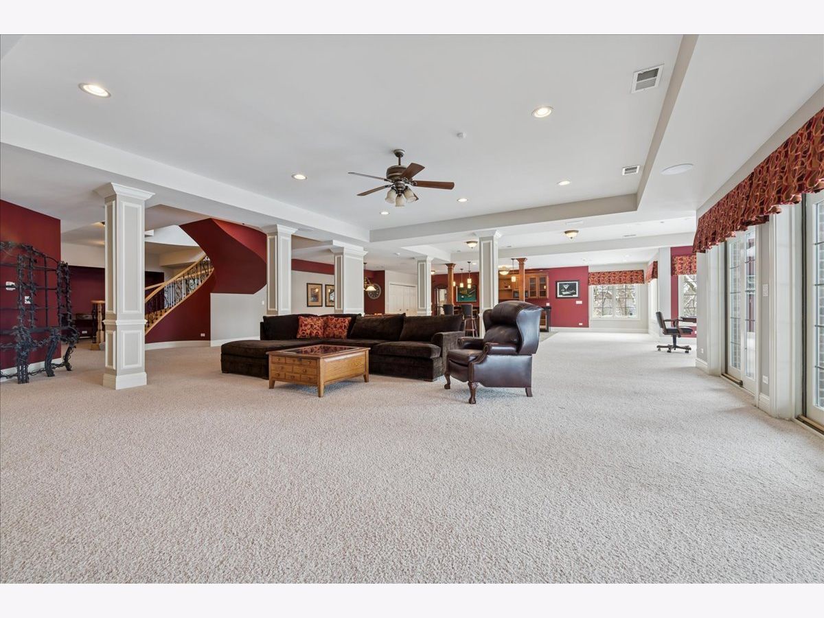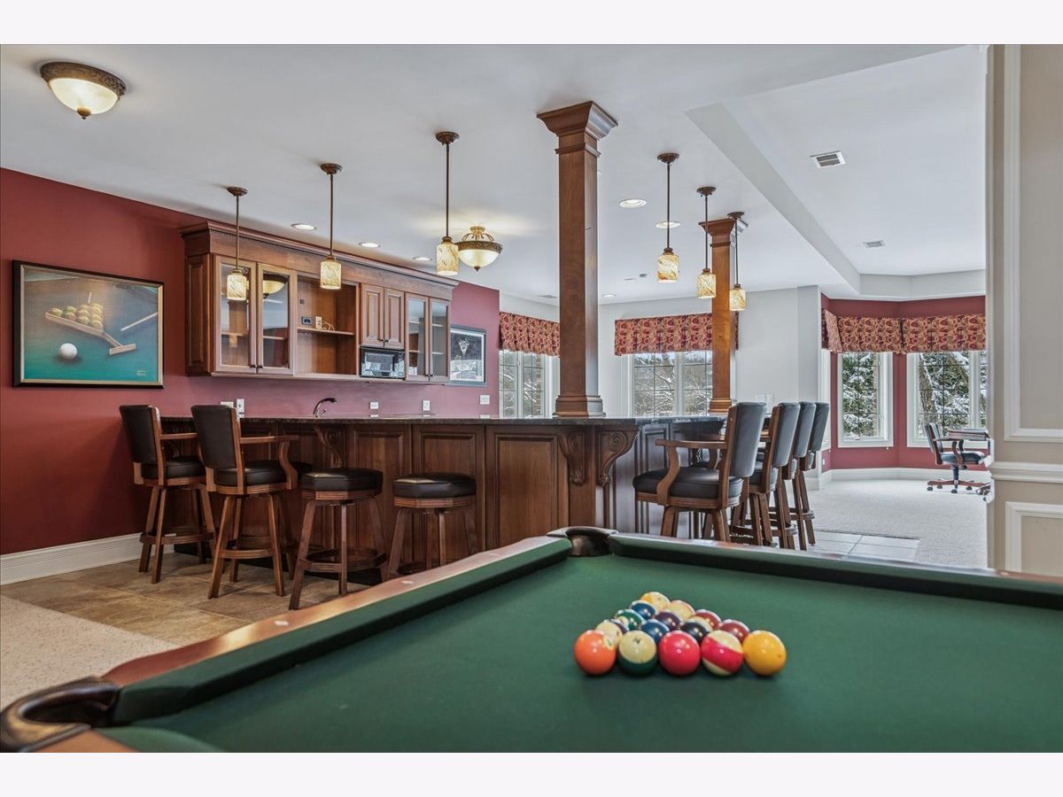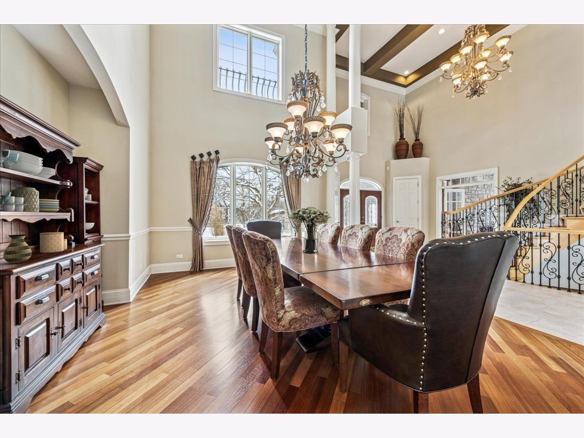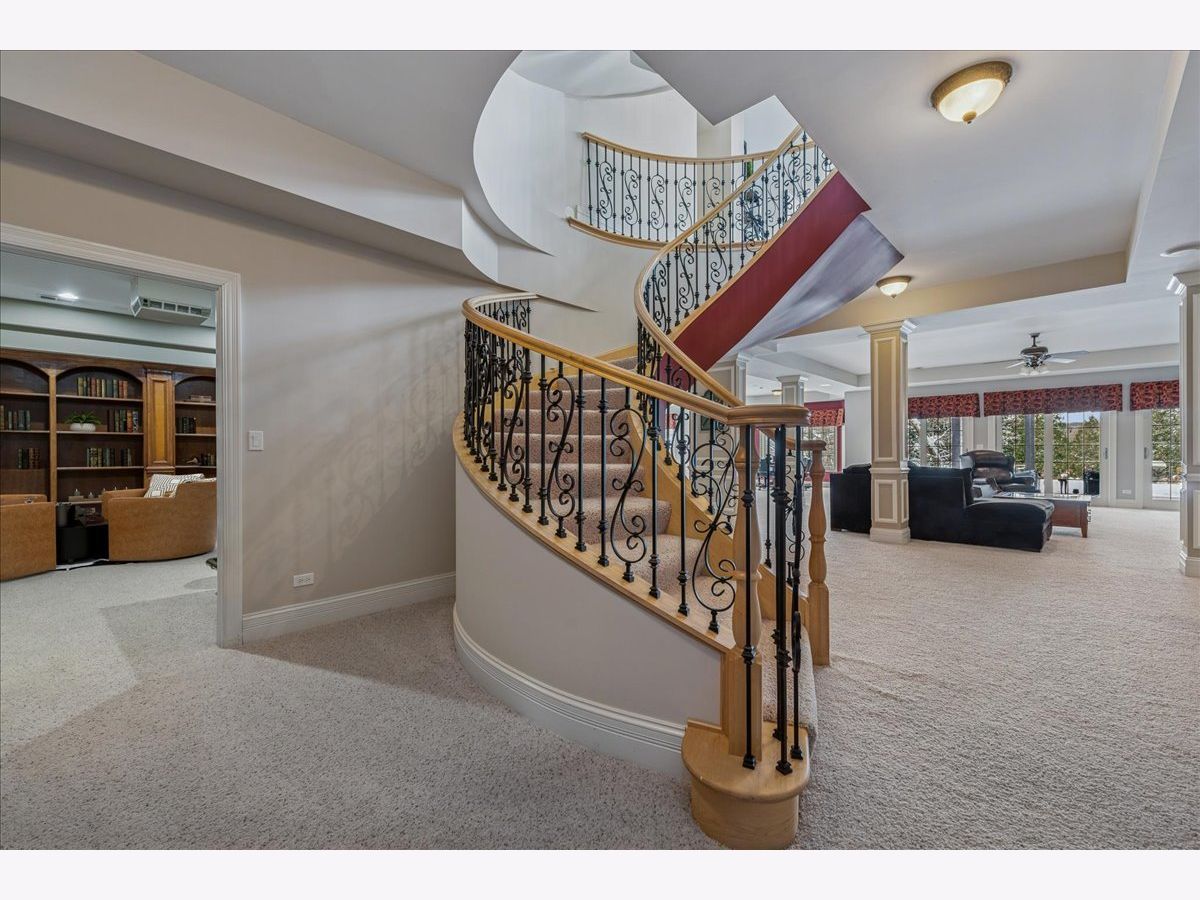 Welcome to a truly exceptional Barrington Hills estate, gracefully set on 5+ acres of serene, storybook beauty. A winding, wooded drive sets the stage, opening to a property with breathtaking, postcard-worthy views in every direction. Inside, you'll find timeless architectural details-stunning coffered ceilings, elegant columns, arched doorways, and an airy, light-filled layout with soaring ceilings and oversized rooms designed to showcase the incredible scenery. Step through the grand entrance into a dramatic two-story foyer crowned by a designer chandelier and a sweeping staircase. The adjacent dining room offers an elegant setting for memorable gatherings and flows seamlessly into the main living areas. From here, sightlines lead you straight into the striking great room, where triple sliders frame the views and a floor-to-ceiling fireplace anchors the space. A chef's delight, the spacious kitchen features a bayed breakfast area with its own fireplace and French door to the deck, along with an island with breakfast bar, top-tier appliances, and a generous walk-in pantry. Double French doors reveal a private study-richly paneled with a stunning stone fireplace with arched window-an ideal work-from-home retreat. The main-floor primary suite is a luxurious haven with a sitting area, deck access, dual walk-in closets, and a spa-inspired ensuite bath. Two half baths, a laundry room, and a rear staircase complete the main level. Upstairs, an impressive balcony walkway overlooking both the foyer and great room sets the tone for the second floor. Three spacious ensuite bedrooms each offer walk-in closets. Two fabulous bonus rooms, a kitchenette, and an additional half bath create the perfect setup for guests, in-laws, or private hobby spaces. Prepare to be wowed by the expansive walkout lower level-an entertainer's dream with a large recreation area, fireplace, game area with wet bar and billiards space, cigar den, second game/play room, fifth ensuite bedroom, and abundant storage. Step out to the deck or paver patio to enjoy lush landscaping, total privacy, and peaceful views of nature. A built-in firepit invites cozy evenings under the stars. Additional highlights include a newer Trex deck (2022), heated 4-car garage, and newer cedar shake roof (2020). All just minutes to town, train, shopping, dining, and award-winning D220 schools. A rare opportunity to own a private luxury retreat in one of Barrington Hills most sought-after settings.