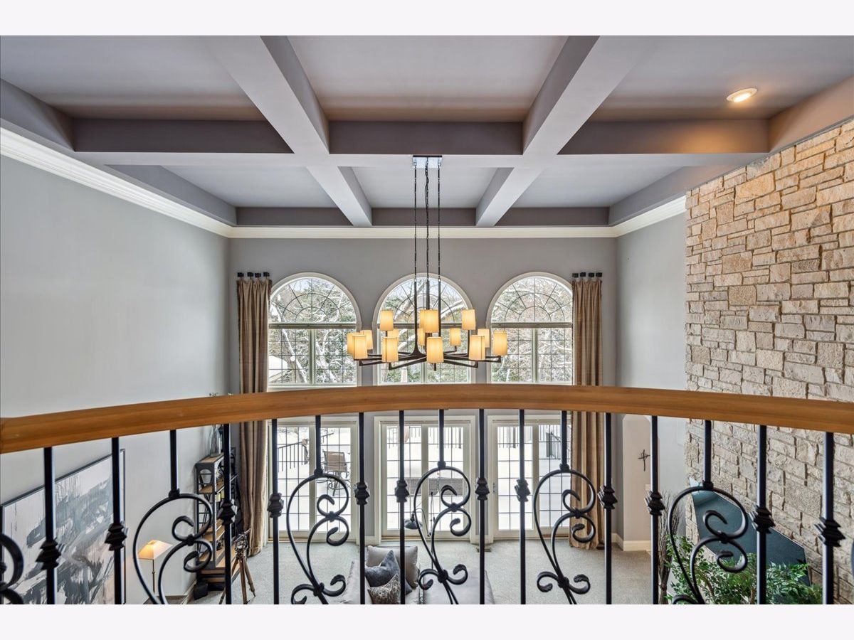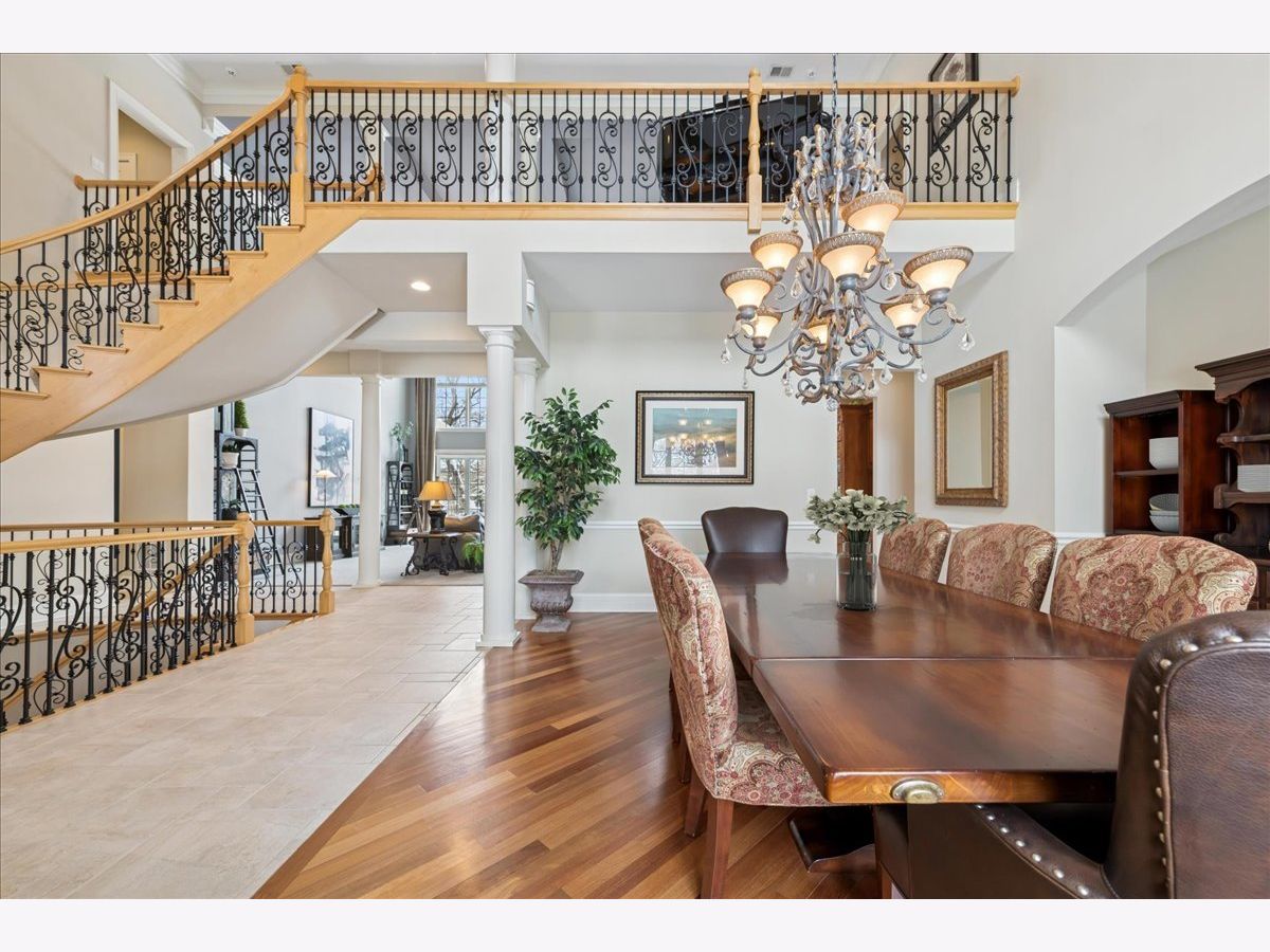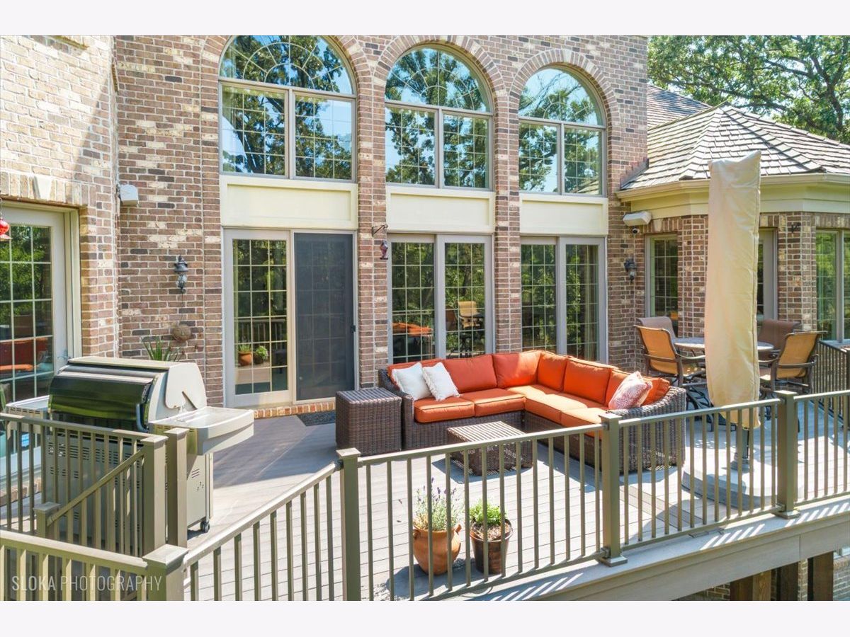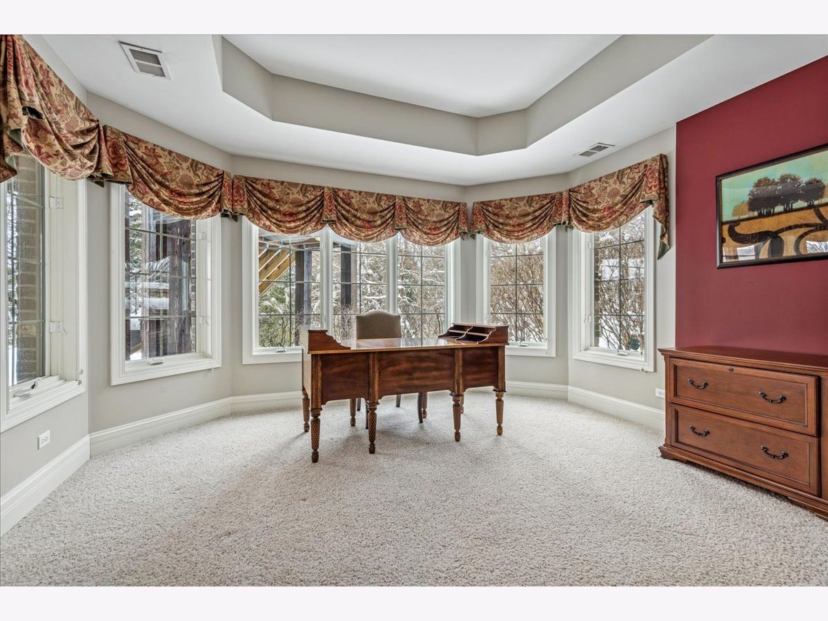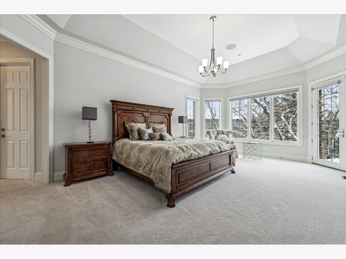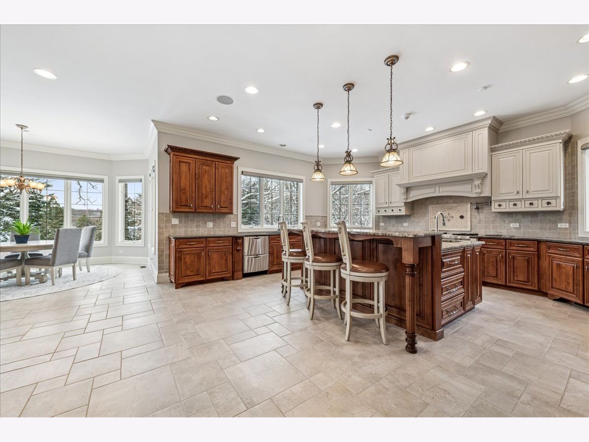 Welcome to a truly exceptional Barrington Hills estate, gracefully set on 5+ acres of serene, storybook beauty. A winding, wooded drive sets the stage, opening to a property with breathtaking, postcard-worthy views in every direction. Inside, you'll find timeless architectural details-stunning coffered ceilings, elegant columns, arched doorways, and an airy, light-filled layout with soaring ceilings and oversized rooms designed to showcase the incredible scenery. Step through the grand entrance into a dramatic two-story foyer crowned by a designer chandelier and a sweeping staircase. The adjacent dining room offers an elegant setting for memorable gatherings and flows seamlessly into the main living areas. From here, sightlines lead you straight into the striking great room, where triple sliders frame the views and a floor-to-ceiling fireplace anchors the space. A chef's delight, the spacious kitchen features a bayed breakfast area with its own fireplace and French door to the deck, along with an island with breakfast bar, top-tier appliances, and a generous walk-in pantry. Double French doors reveal a private study-richly paneled with a stunning stone fireplace with arched window-an ideal work-from-home retreat. The main-floor primary suite is a luxurious haven with a sitting area, deck access, dual walk-in closets, and a spa-inspired ensuite bath. Two half baths, a laundry room, and a rear staircase complete the main level. Upstairs, an impressive balcony walkway overlooking both the foyer and great room sets the tone for the second floor. Three spacious ensuite bedrooms each offer walk-in closets. Two fabulous bonus rooms, a kitchenette, and an additional half bath create the perfect setup for guests, in-laws, or private hobby spaces. Prepare to be wowed by the expansive walkout lower level-an entertainer's dream with a large recreation area, fireplace, game area with wet bar and billiards space, cigar den, second game/play room, fifth ensuite bedroom, and abundant storage. Step out to the deck or paver patio to enjoy lush landscaping, total privacy, and peaceful views of nature. A built-in firepit invites cozy evenings under the stars. Additional highlights include a newer Trex deck (2022), heated 4-car garage, and newer cedar shake roof (2020). All just minutes to town, train, shopping, dining, and award-winning D220 schools. A rare opportunity to own a private luxury retreat in one of Barrington Hills most sought-after settings.