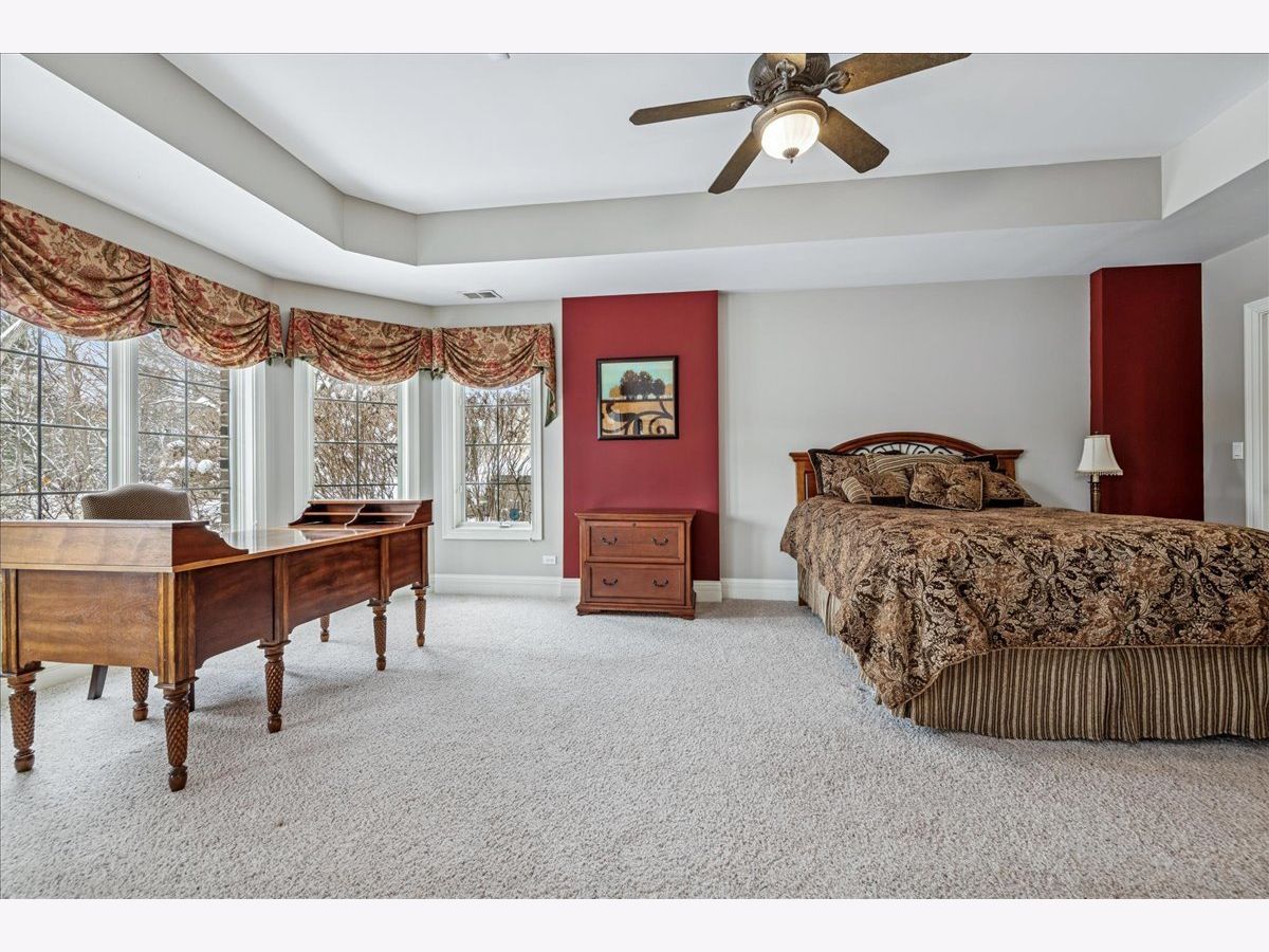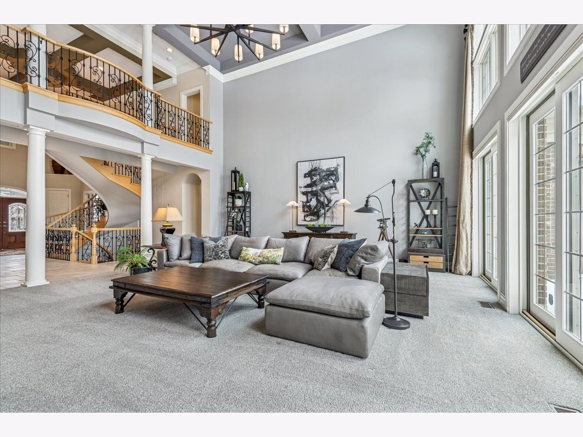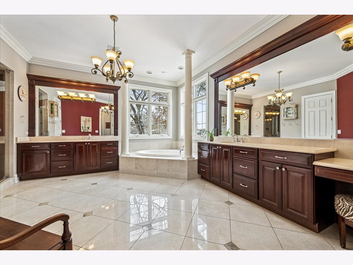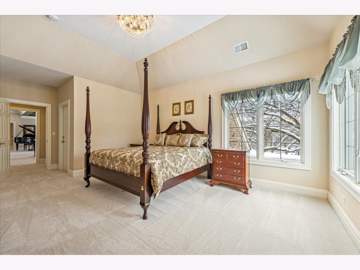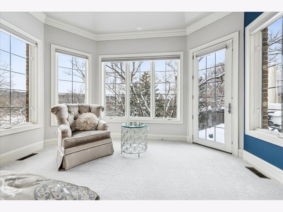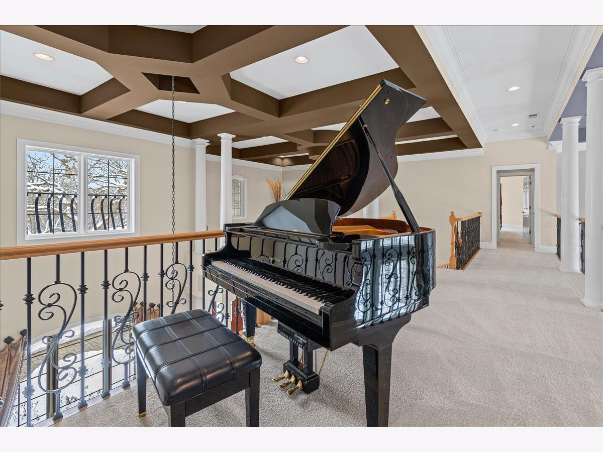 Welcome to a truly exceptional Barrington Hills estate, gracefully set on 5+ acres of serene, storybook beauty. A winding, wooded drive sets the stage, opening to a property with breathtaking, postcard-worthy views in every direction. Inside, you'll find timeless architectural details-stunning coffered ceilings, elegant columns, arched doorways, and an airy, light-filled layout with soaring ceilings and oversized rooms designed to showcase the incredible scenery. Step through the grand entrance into a dramatic two-story foyer crowned by a designer chandelier and a sweeping staircase. The adjacent dining room offers an elegant setting for memorable gatherings and flows seamlessly into the main living areas. From here, sightlines lead you straight into the striking great room, where triple sliders frame the views and a floor-to-ceiling fireplace anchors the space. A chef's delight, the spacious kitchen features a bayed breakfast area with its own fireplace and French door to the deck, along with an island with breakfast bar, top-tier appliances, and a generous walk-in pantry. Double French doors reveal a private study-richly paneled with a stunning stone fireplace with arched window-an ideal work-from-home retreat. The main-floor primary suite is a luxurious haven with a sitting area, deck access, dual walk-in closets, and a spa-inspired ensuite bath. Two half baths, a laundry room, and a rear staircase complete the main level. Upstairs, an impressive balcony walkway overlooking both the foyer and great room sets the tone for the second floor. Three spacious ensuite bedrooms each offer walk-in closets. Two fabulous bonus rooms, a kitchenette, and an additional half bath create the perfect setup for guests, in-laws, or private hobby spaces. Prepare to be wowed by the expansive walkout lower level-an entertainer's dream with a large recreation area, fireplace, game area with wet bar and billiards space, cigar den, second game/play room, fifth ensuite bedroom, and abundant storage. Step out to the deck or paver patio to enjoy lush landscaping, total privacy, and peaceful views of nature. A built-in firepit invites cozy evenings under the stars. Additional highlights include a newer Trex deck (2022), heated 4-car garage, and newer cedar shake roof (2020). All just minutes to town, train, shopping, dining, and award-winning D220 schools. A rare opportunity to own a private luxury retreat in one of Barrington Hills most sought-after settings.