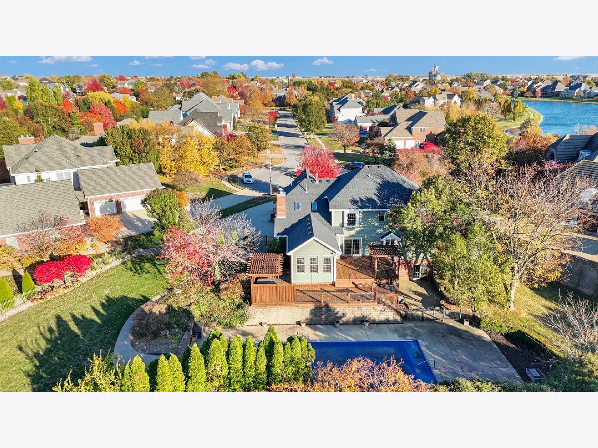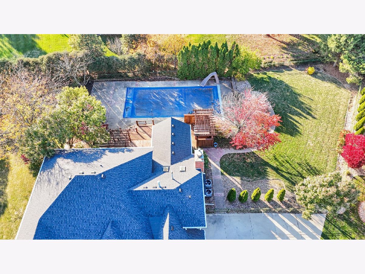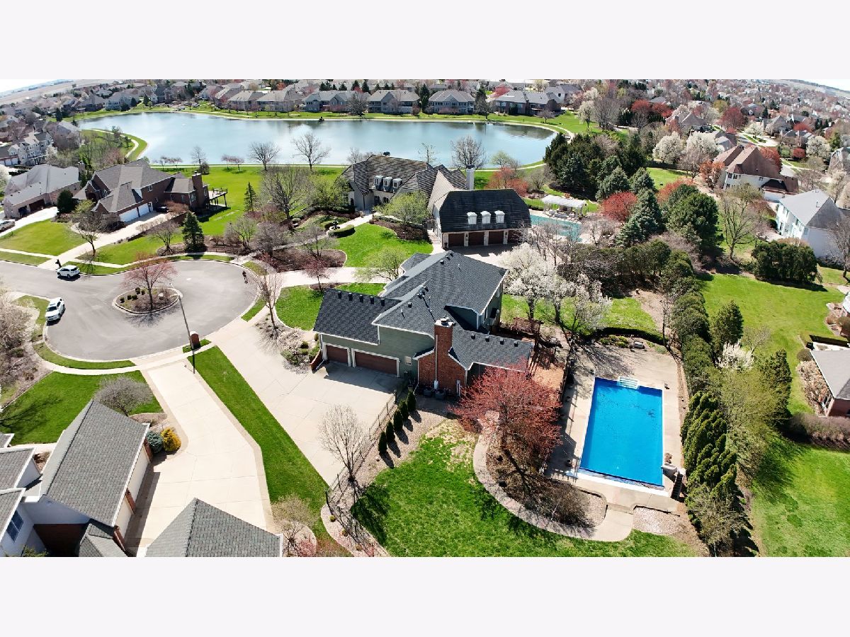 Welcome to 1 Windsong Way! An elegant, one-of-a-kind 5-bedroom, 4.5-bath walk-out Tudor perfectly situated on a peaceful cul-de-sac with private lake access. Resting on a half-acre lot with professional landscaping with an abundance of outdoor living space, this home offers resort-style living with a 24' x 48' in-ground pool, private hot tub area, and an expansive wraparound deck-ideal for entertaining and relaxation. Step inside to discover 9-foot ceilings, a formal dining room and living room, and a spacious eat-in kitchen featuring a large center island with seating, quartz countertops, a wet bar, and updated dishwasher and microwave (2024). The family room impresses with a vaulted ceiling, custom built-ins, and a cozy fireplace-perfect for winter nights. A sunlit four-seasons room with outdoor access provides a warm, inviting space year-round. The private office with custom-built-ins, conveniently located off the kitchen, offers a quiet space for work or study. Upstairs, the primary suite is a true retreat with its own fireplace, tray ceiling, and a spacious walk-in closet with built-ins, wall safe, and additional storage. The upper level also includes an en-suite bedroom and Jack-and-Jill bedrooms, all with new carpet (July 2025). The walk-out basement expands your living space with generous recreation areas and two large storage rooms with built-in shelving. New flooring was added in 2021. Additional features include first-floor laundry with custom cabinetry and shelving, three-car side-load garage with ample guest parking, new roof and pool heater (2023), new HVAC systems (2022), new water heater (2021), and irrigation system. This elegant and meticulously maintained home combines timeless Tudor charm with modern amenities, all in a premier location. Don't miss the chance to make this exceptional property your next home!