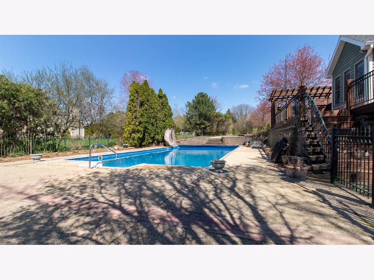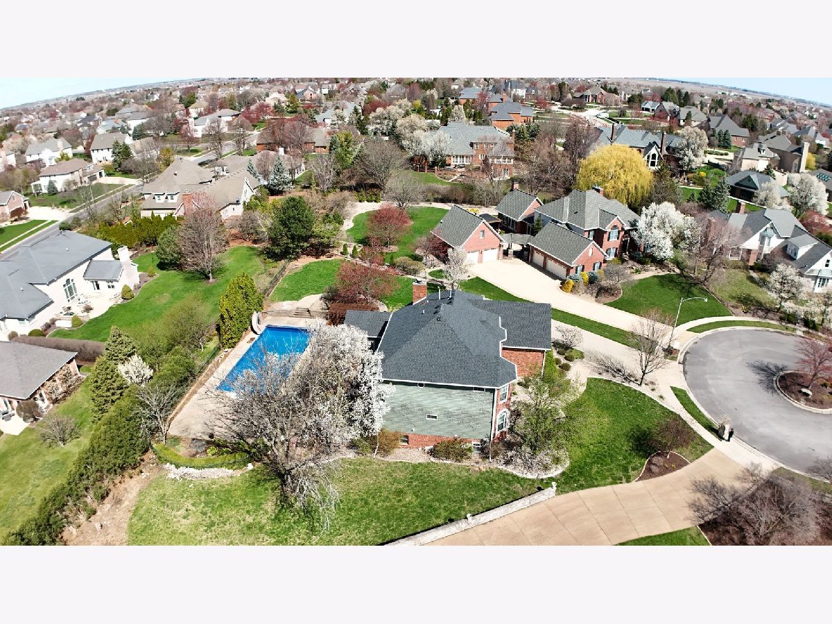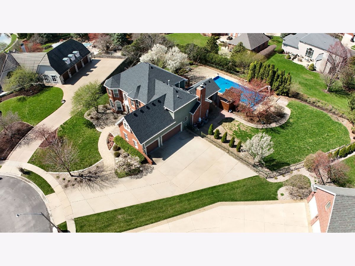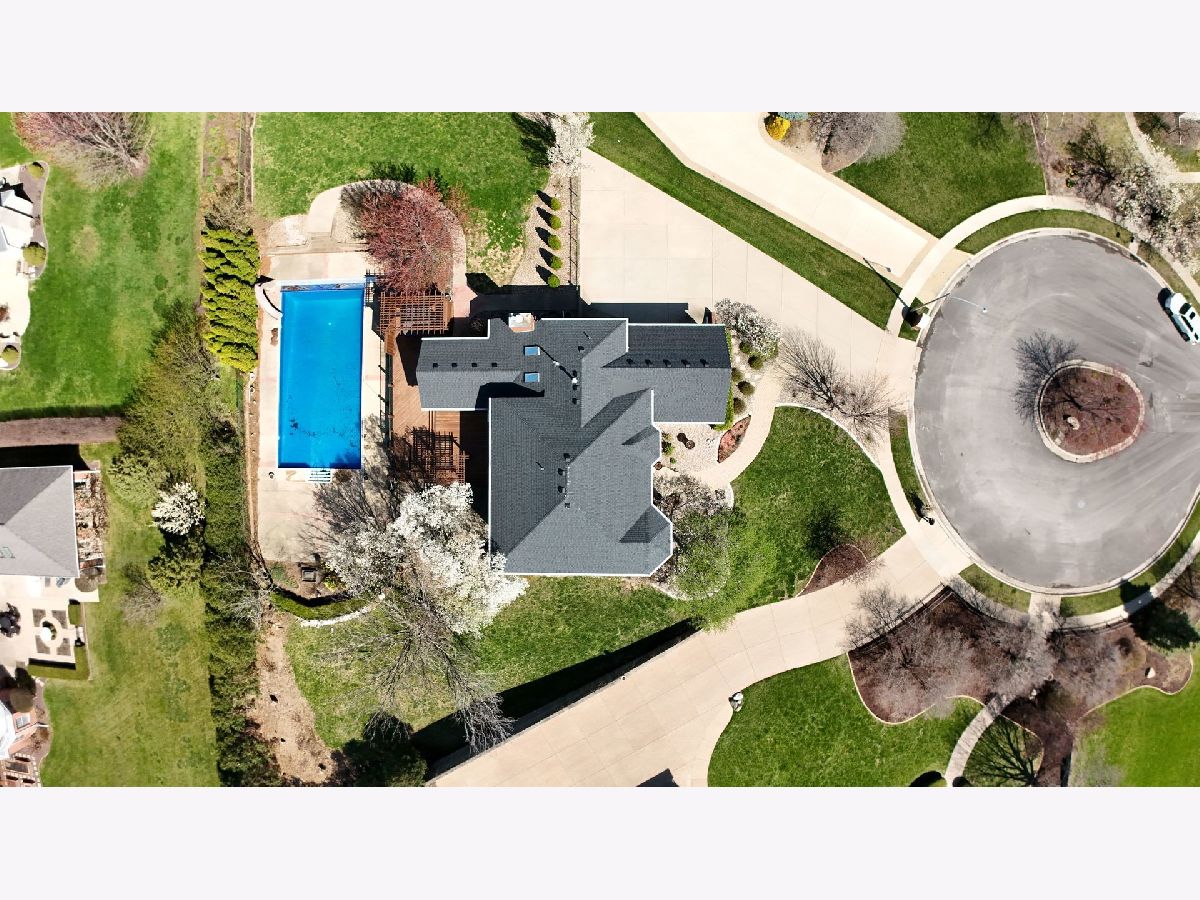 Welcome to 1 Windsong Way! An elegant, one-of-a-kind 5-bedroom, 4.5-bath walk-out Tudor perfectly situated on a peaceful cul-de-sac with private lake access. Resting on a half-acre lot with professional landscaping with an abundance of outdoor living space, this home offers resort-style living with a 24' x 48' in-ground pool, private hot tub area, and an expansive wraparound deck-ideal for entertaining and relaxation. Step inside to discover 9-foot ceilings, a formal dining room and living room, and a spacious eat-in kitchen featuring a large center island with seating, quartz countertops, a wet bar, and updated dishwasher and microwave (2024). The family room impresses with a vaulted ceiling, custom built-ins, and a cozy fireplace-perfect for winter nights. A sunlit four-seasons room with outdoor access provides a warm, inviting space year-round. The private office with custom-built-ins, conveniently located off the kitchen, offers a quiet space for work or study. Upstairs, the primary suite is a true retreat with its own fireplace, tray ceiling, and a spacious walk-in closet with built-ins, wall safe, and additional storage. The upper level also includes an en-suite bedroom and Jack-and-Jill bedrooms, all with new carpet (July 2025). The walk-out basement expands your living space with generous recreation areas and two large storage rooms with built-in shelving. New flooring was added in 2021. Additional features include first-floor laundry with custom cabinetry and shelving, three-car side-load garage with ample guest parking, new roof and pool heater (2023), new HVAC systems (2022), new water heater (2021), and irrigation system. This elegant and meticulously maintained home combines timeless Tudor charm with modern amenities, all in a premier location. Don't miss the chance to make this exceptional property your next home!