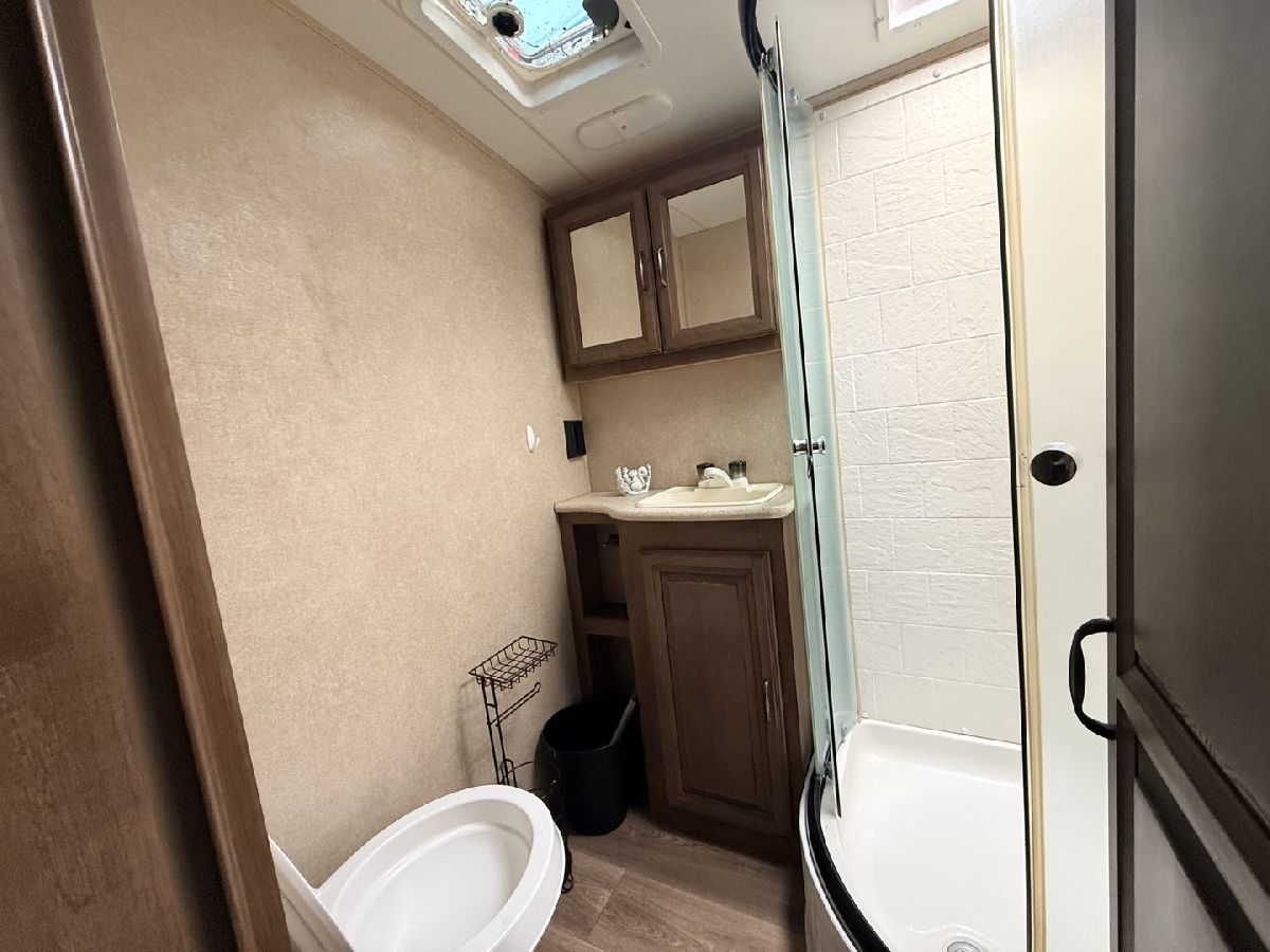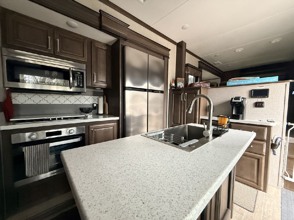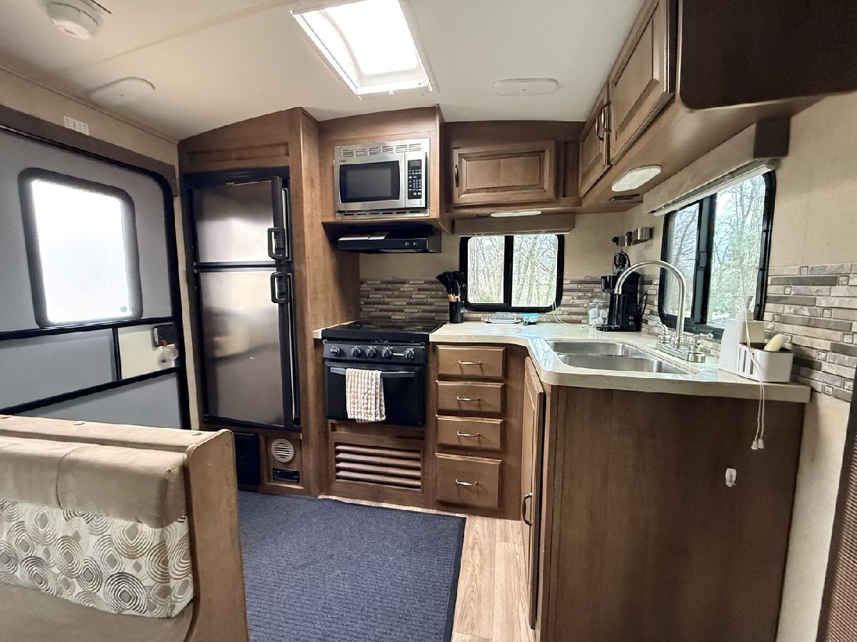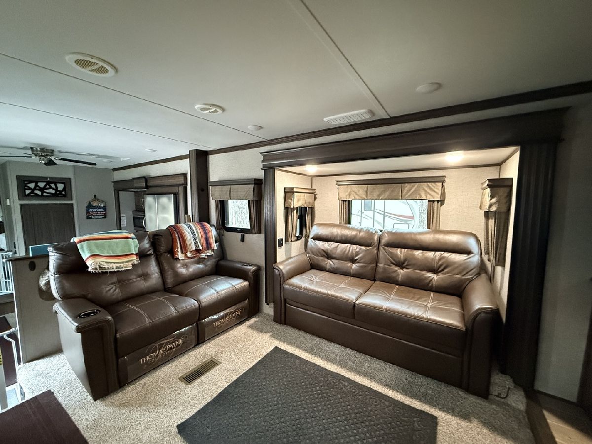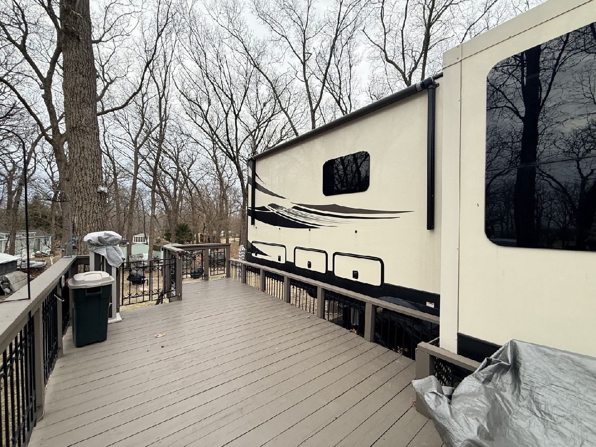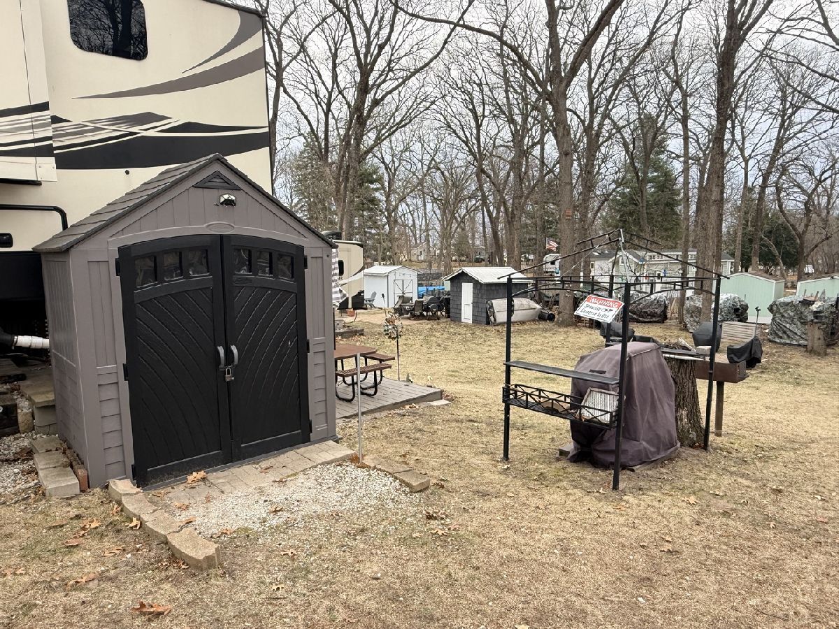 Discover the perfect getaway with two well-maintained, sewered lots in Section 10, offering comfort, space, and everything you need to relax or entertain. One lot features a 2019 Alpine 3700FL travel trailer with five slides, a spacious one-bedroom layout, stunning kitchen area, and an elevated living room that creates a bright, open feel. The second lot includes a 2015 Fun Finder 241LRK travel trailer with one slide, ideal for guests or additional living space. Bedroom includes a features a Tempur-Pedic mattress($2,000). Enjoy the outdoors with three decks throughout the property, a large patio block area with a fire pit, and plenty of firewood neatly stored under tarps to the rear. The property also includes a grill gazebo, gravel driveway, and beautiful landscaping that enhances the overall setting. Additional features include two small sheds (no contents) for extra storage, central A/C and heat with propane gas, roof A/C units, and ample sleeping space throughout both units. All furniture and appliances stay, making this a truly move-in-ready retreat. No outdoor furniture besides the two chairs on the deck of the fun finder. Both winter covers for travel trailer's will stay. Located just a short distance from Bass Lake, this property is perfect for weekend escapes or extended stays-call today to schedule your private showing! Picnic table, Grill, small table on deck does not stay. Please note that Woodhaven Lakes is a gated recreational community and cannot be used as a primary residence or homestead. You must be accompanied by a broker to view any properties, YOU CANNOT ACCESS THE CAMPGROUND WITHOUT A PASS. The property owner pays the association fees.