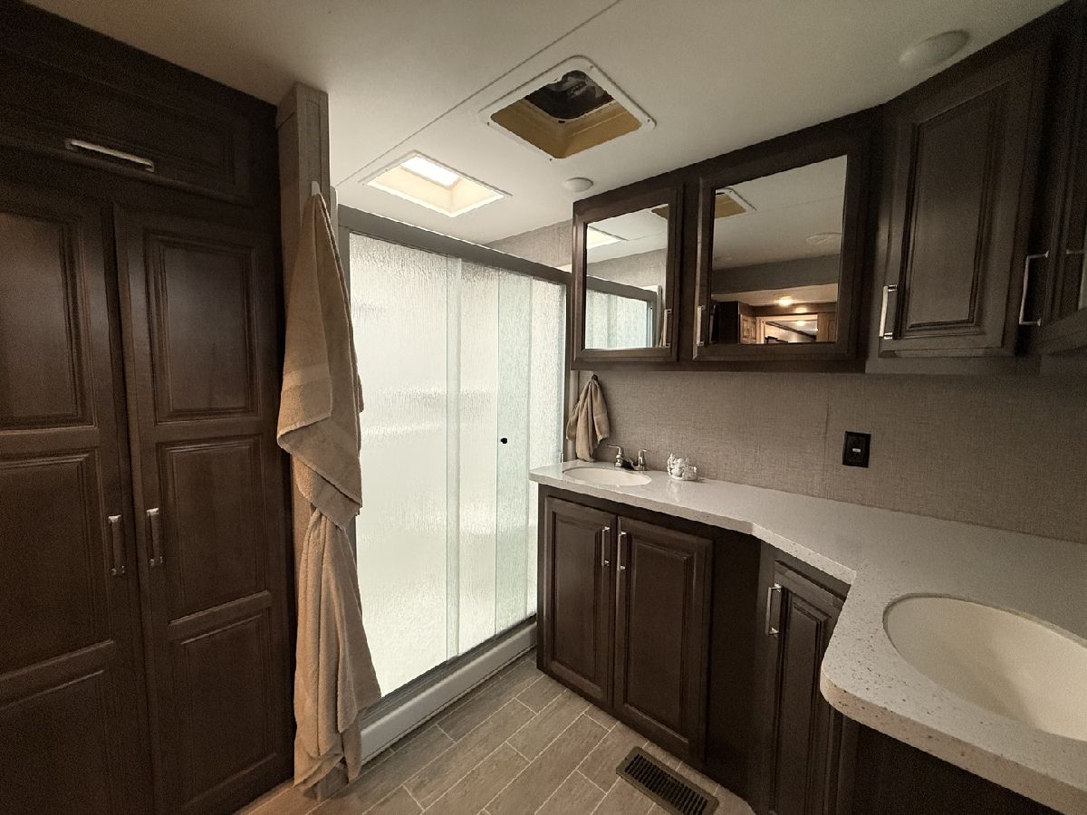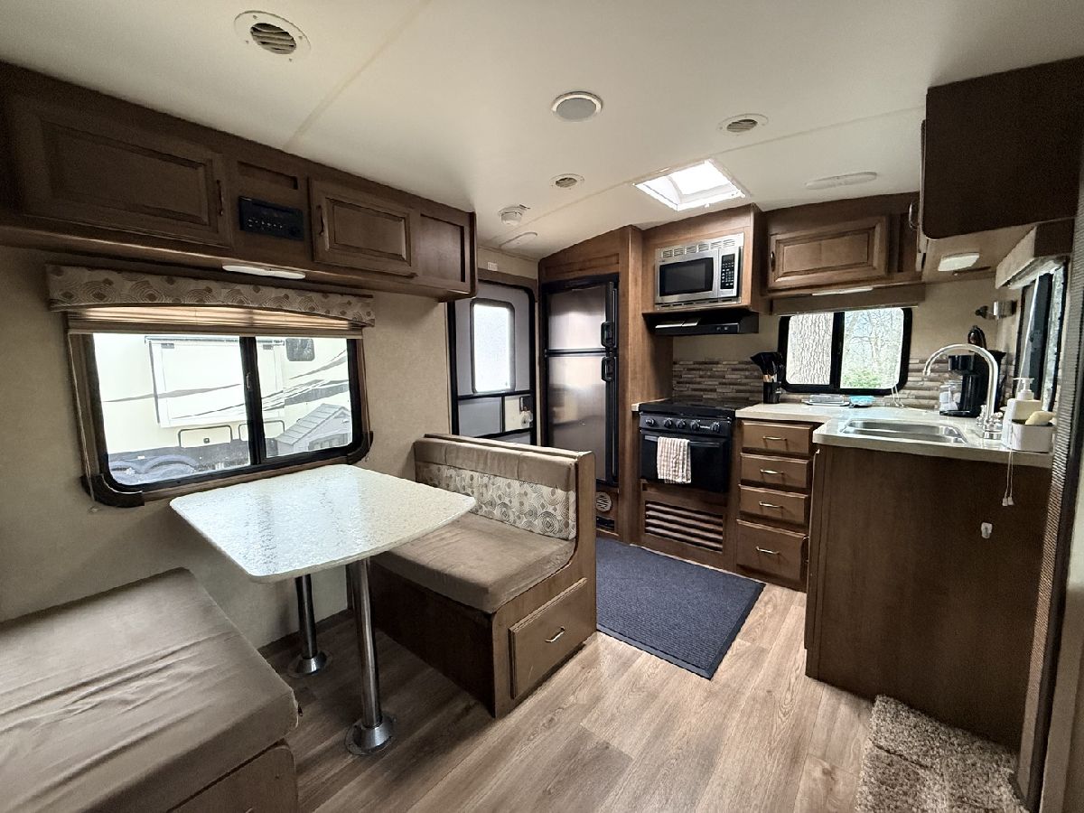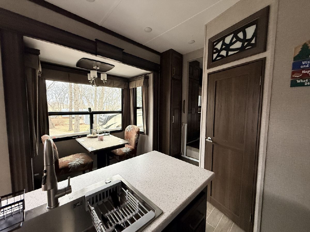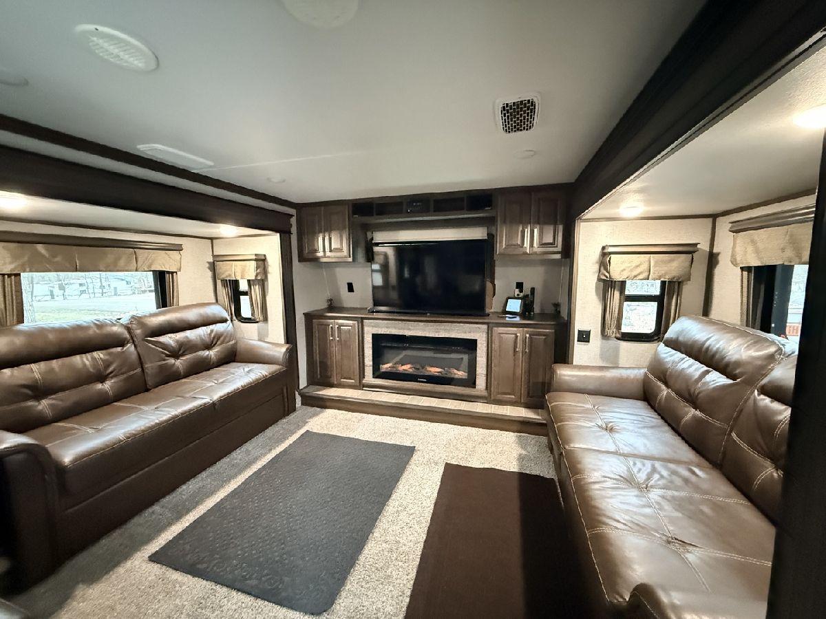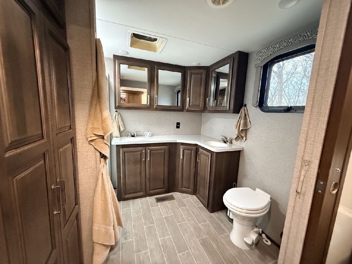 Discover the perfect getaway with two well-maintained, sewered lots in Section 10, offering comfort, space, and everything you need to relax or entertain. One lot features a 2019 Alpine 3700FL travel trailer with five slides, a spacious one-bedroom layout, stunning kitchen area, and an elevated living room that creates a bright, open feel. The second lot includes a 2015 Fun Finder 241LRK travel trailer with one slide, ideal for guests or additional living space. Bedroom includes a features a Tempur-Pedic mattress($2,000). Enjoy the outdoors with three decks throughout the property, a large patio block area with a fire pit, and plenty of firewood neatly stored under tarps to the rear. The property also includes a grill gazebo, gravel driveway, and beautiful landscaping that enhances the overall setting. Additional features include two small sheds (no contents) for extra storage, central A/C and heat with propane gas, roof A/C units, and ample sleeping space throughout both units. All furniture and appliances stay, making this a truly move-in-ready retreat. No outdoor furniture besides the two chairs on the deck of the fun finder. Both winter covers for travel trailer's will stay. Located just a short distance from Bass Lake, this property is perfect for weekend escapes or extended stays-call today to schedule your private showing! Picnic table, Grill, small table on deck does not stay. Please note that Woodhaven Lakes is a gated recreational community and cannot be used as a primary residence or homestead. You must be accompanied by a broker to view any properties, YOU CANNOT ACCESS THE CAMPGROUND WITHOUT A PASS. The property owner pays the association fees.