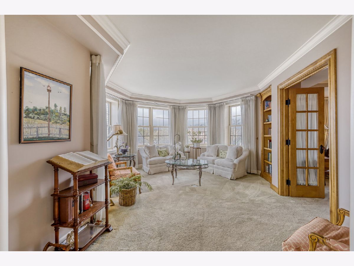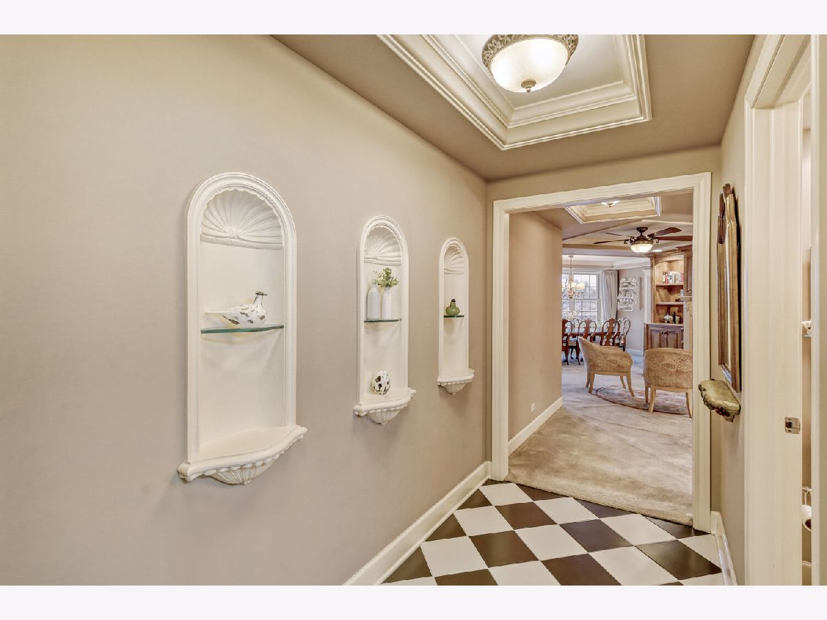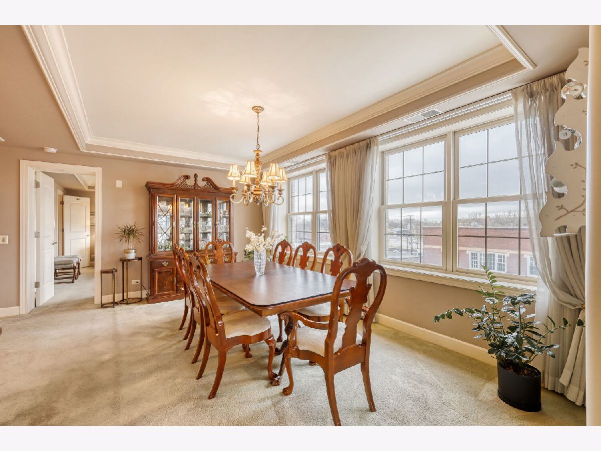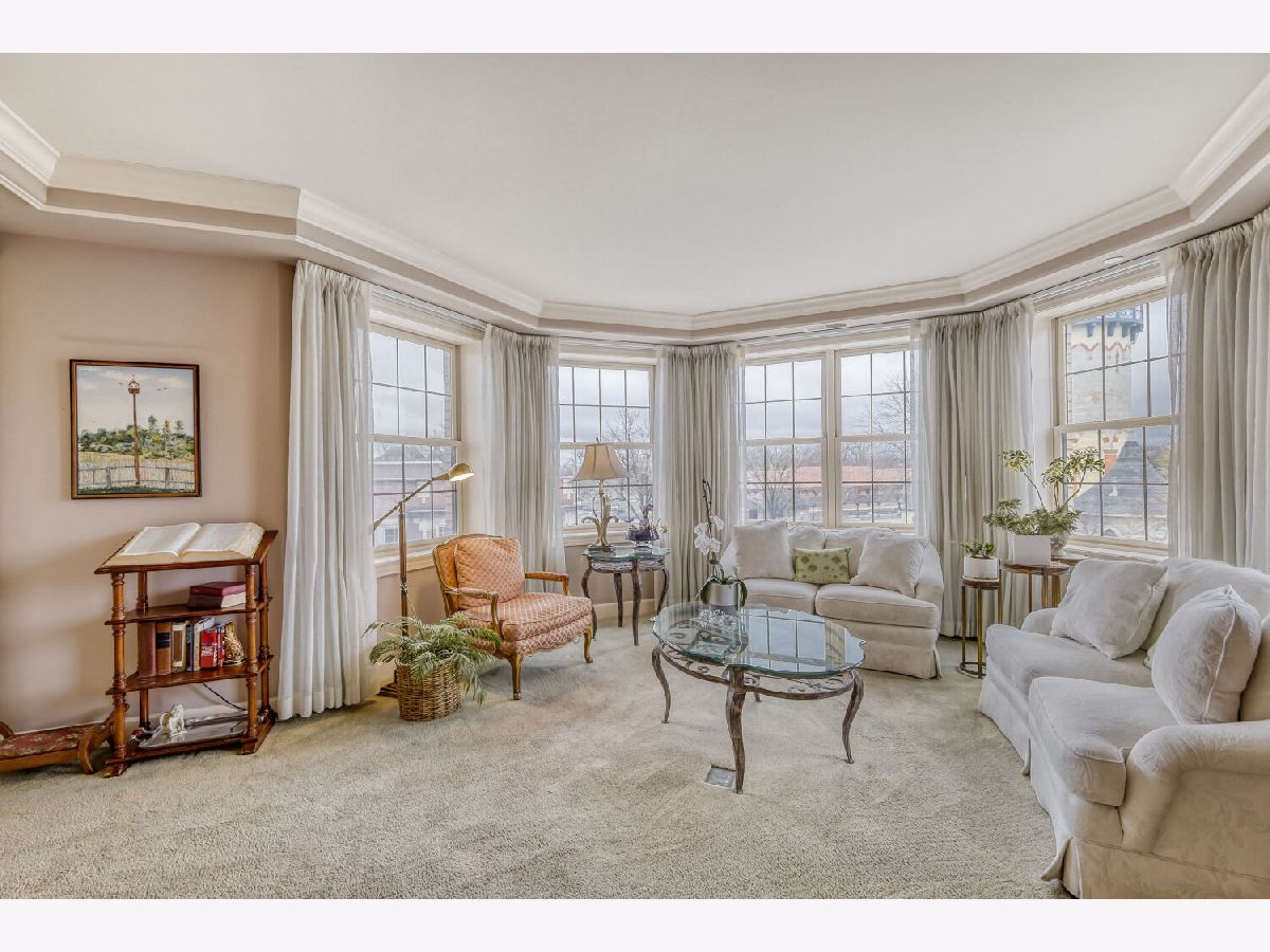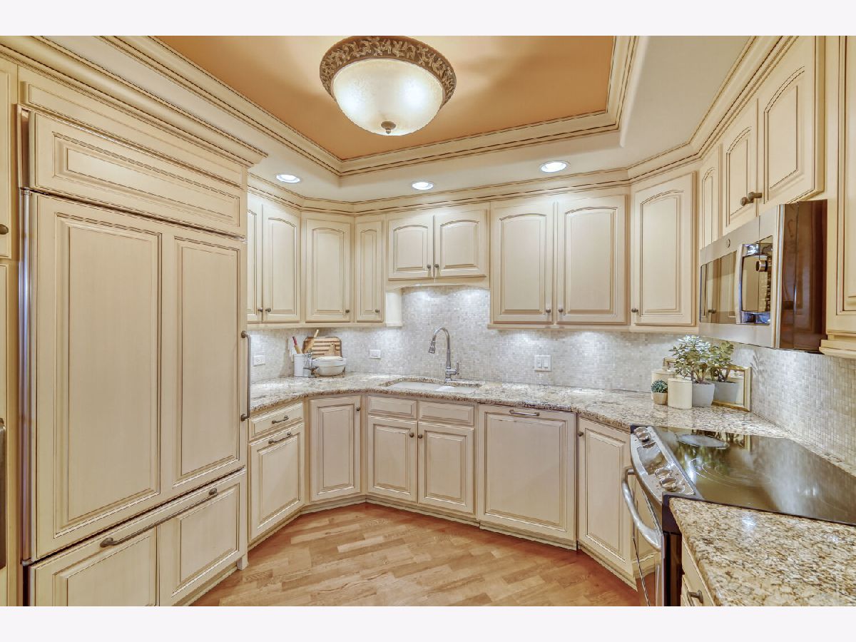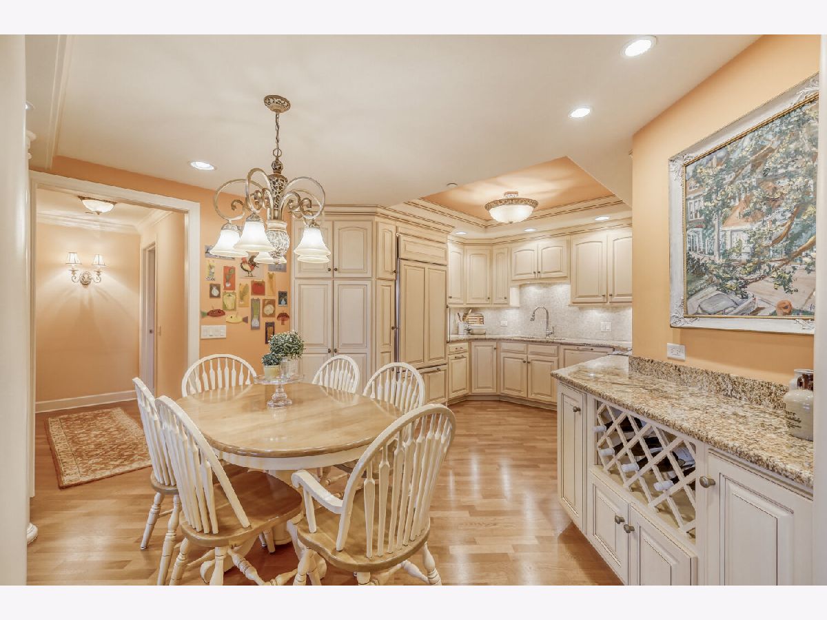 Located in one of the nation's first planned suburbs just nine miles from Chicago and surrounded by natural beauty, this exceptional end-unit luxury condo offers a seamless blend of classic elegance and modern comfort. A bold black-and-white tiled entryway makes a striking first impression, opening to sun-filled interiors with tall ceilings, rich detailing, and exquisite custom millwork throughout. The thoughtfully designed floor plan includes three ensuite bedrooms, each with custom-organized closets. The serene primary suite features volume ceilings and a spa-like bath with a soaking tub, oversized walk-in shower, and double vanities. A charming French country eat-in kitchen, with custom Das Holz Haus beveled door cabinetry, granite counters, high-end appliances including a Sub Zero cabinet paneled refrigerator, and tile backsplash, flows effortlessly into a cozy fireplace sitting area and a formal dining room, perfect for entertaining. A bright and inviting living room with graceful rounded lines adds character and warmth, while French doors lead to a dedicated office or flexible third bedroom suite. With windows on multiple exposures, natural light fills every corner of the home. Set within an elegant, well-maintained building just steps from dining, shopping, and the train, this residence offers a sophisticated, maintenance-free lifestyle in an unbeatable location. Major updates include HVAC 2025, Aprilaire humidifier 2025, Honeywell wireless thermostat 2025. Please find extended details sheet attached under additional info.