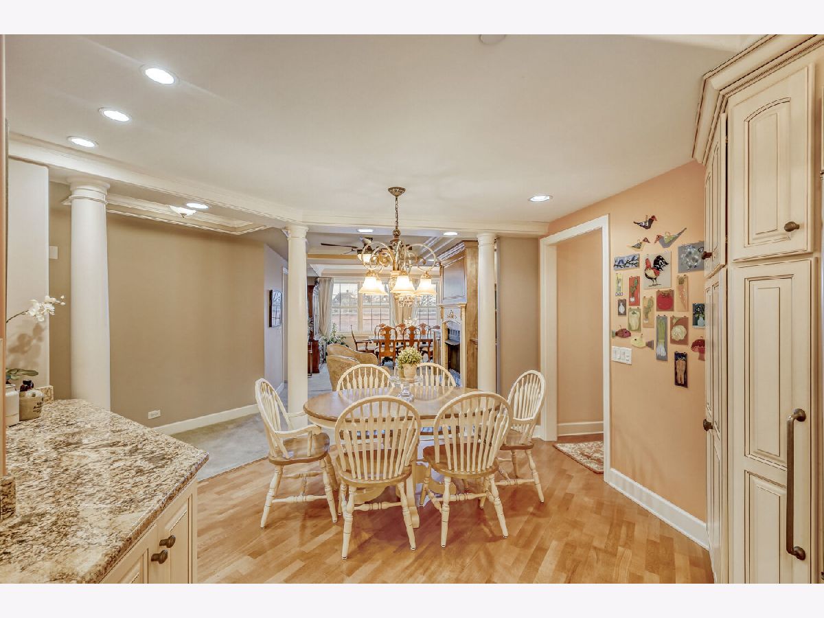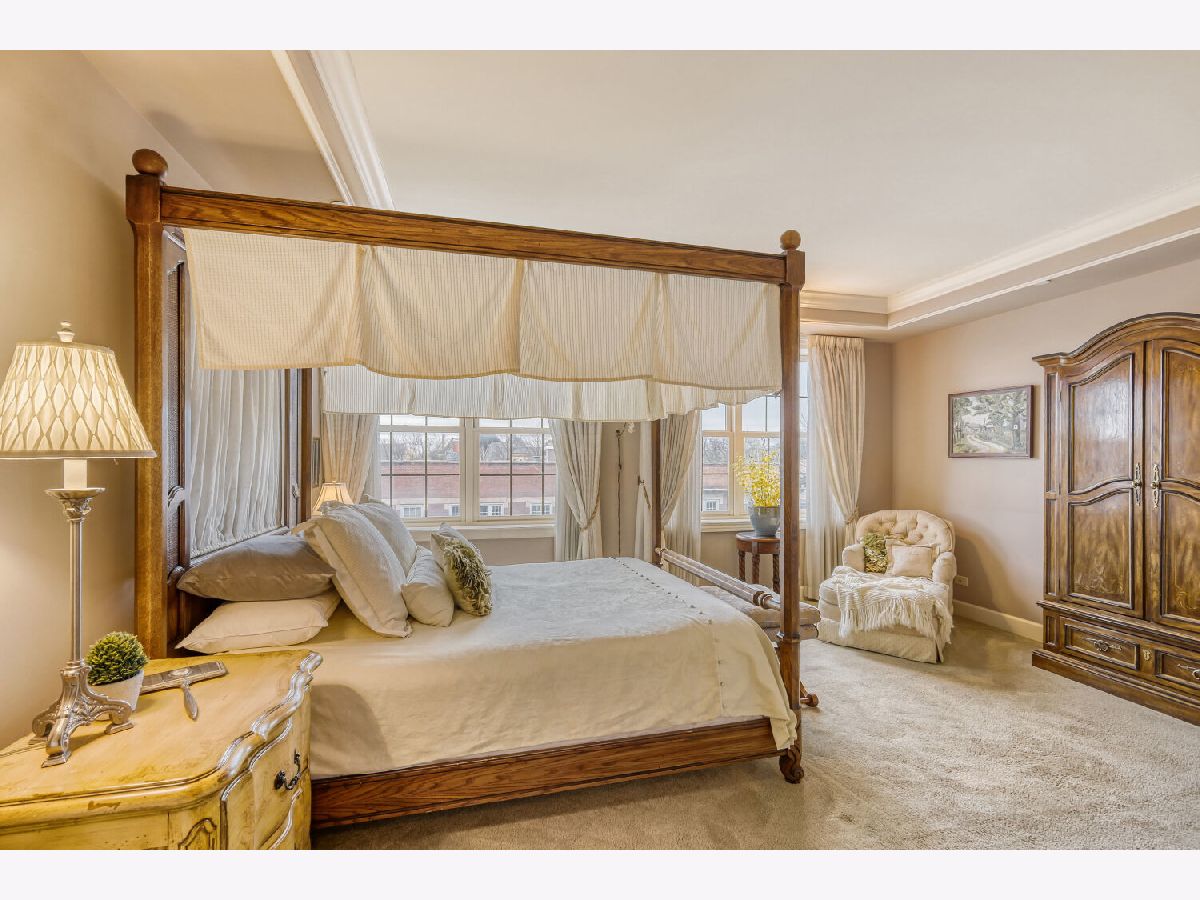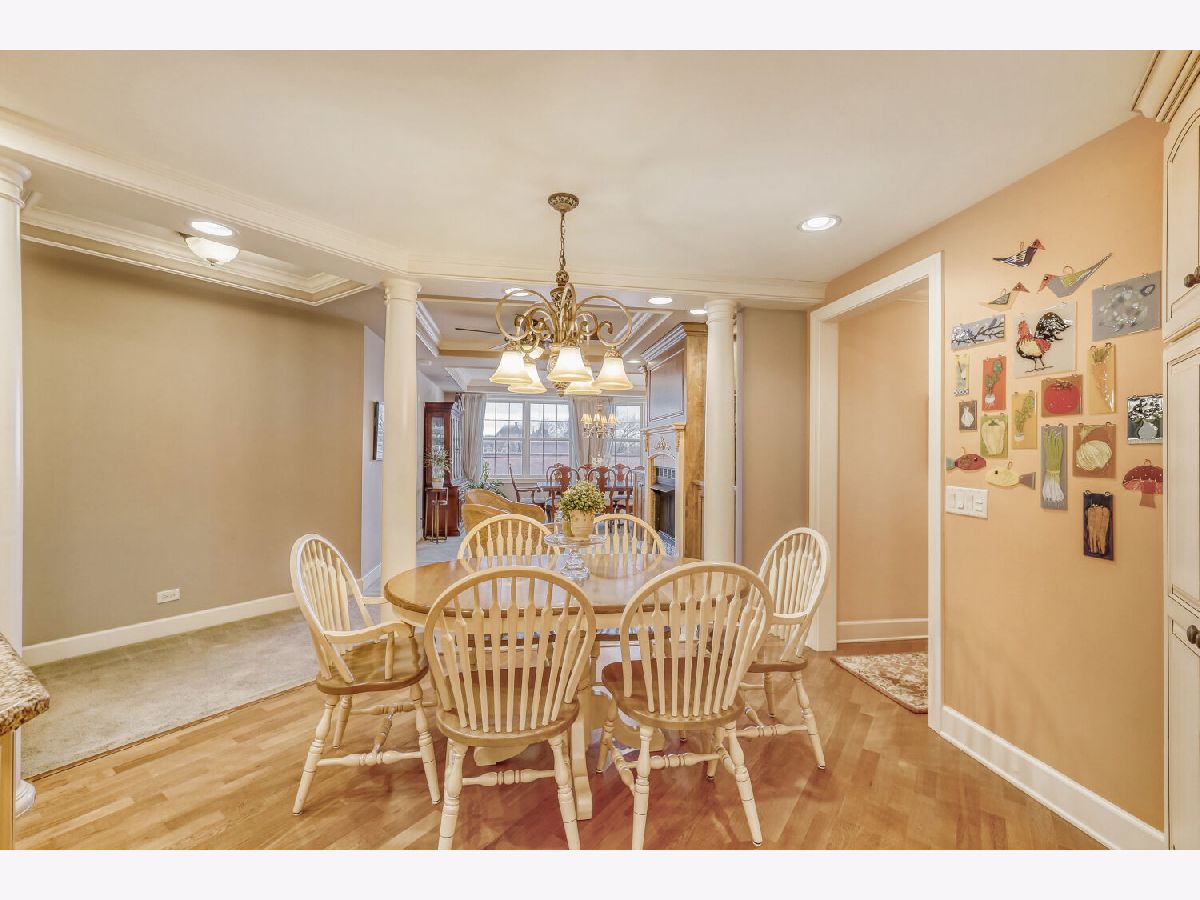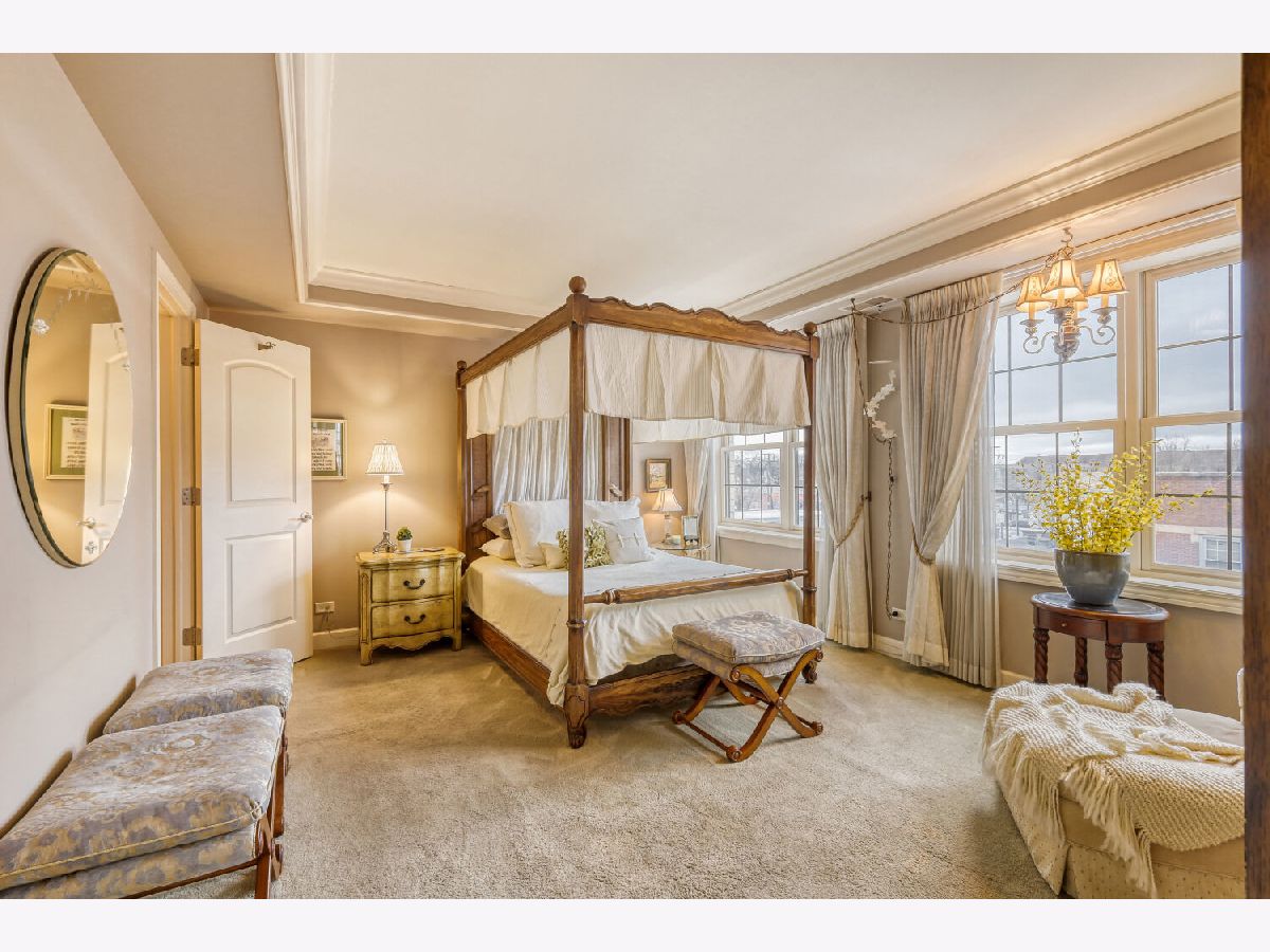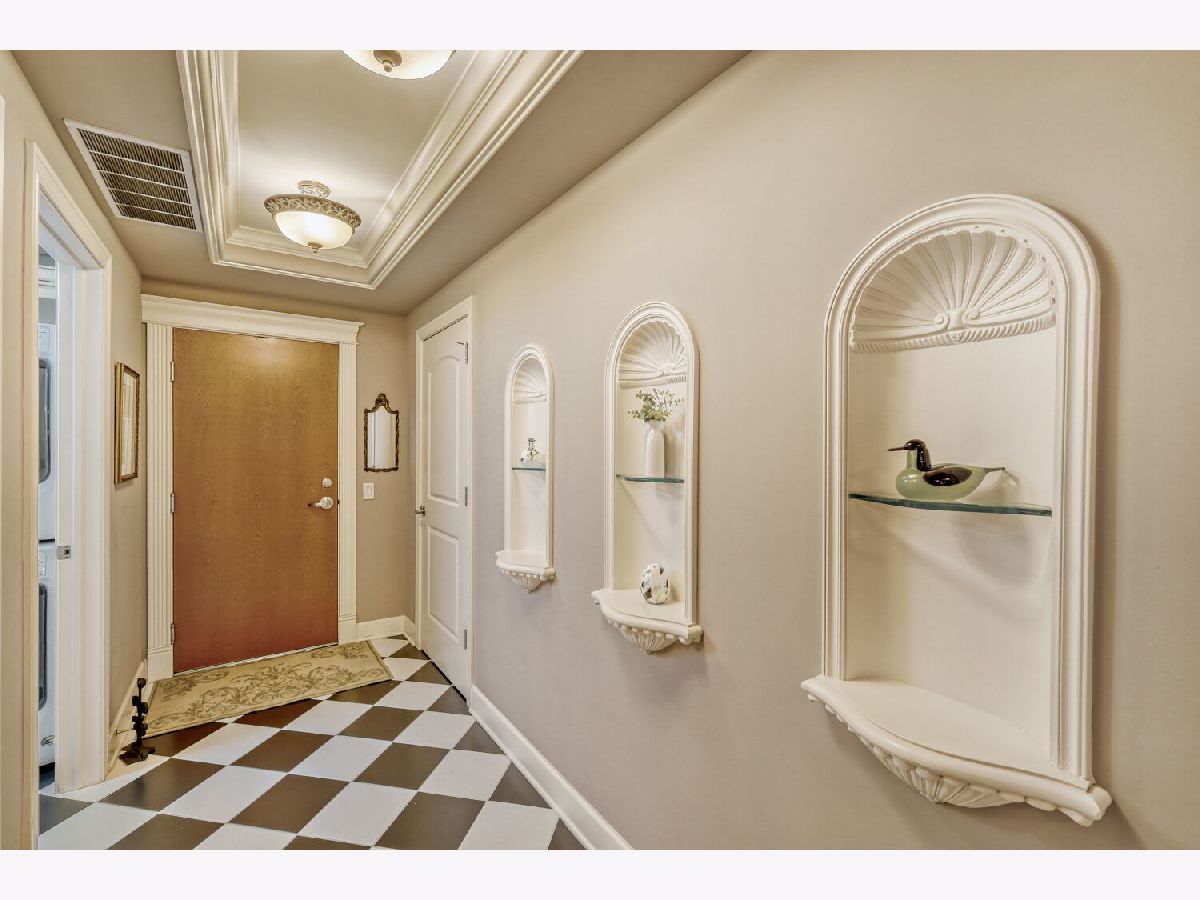 Located in one of the nation's first planned suburbs just nine miles from Chicago and surrounded by natural beauty, this exceptional end-unit luxury condo offers a seamless blend of classic elegance and modern comfort. A bold black-and-white tiled entryway makes a striking first impression, opening to sun-filled interiors with tall ceilings, rich detailing, and exquisite custom millwork throughout. The thoughtfully designed floor plan includes three ensuite bedrooms, each with custom-organized closets. The serene primary suite features volume ceilings and a spa-like bath with a soaking tub, oversized walk-in shower, and double vanities. A charming French country eat-in kitchen, with custom Das Holz Haus beveled door cabinetry, granite counters, high-end appliances including a Sub Zero cabinet paneled refrigerator, and tile backsplash, flows effortlessly into a cozy fireplace sitting area and a formal dining room, perfect for entertaining. A bright and inviting living room with graceful rounded lines adds character and warmth, while French doors lead to a dedicated office or flexible third bedroom suite. With windows on multiple exposures, natural light fills every corner of the home. Set within an elegant, well-maintained building just steps from dining, shopping, and the train, this residence offers a sophisticated, maintenance-free lifestyle in an unbeatable location. Major updates include HVAC 2025, Aprilaire humidifier 2025, Honeywell wireless thermostat 2025. Please find extended details sheet attached under additional info.