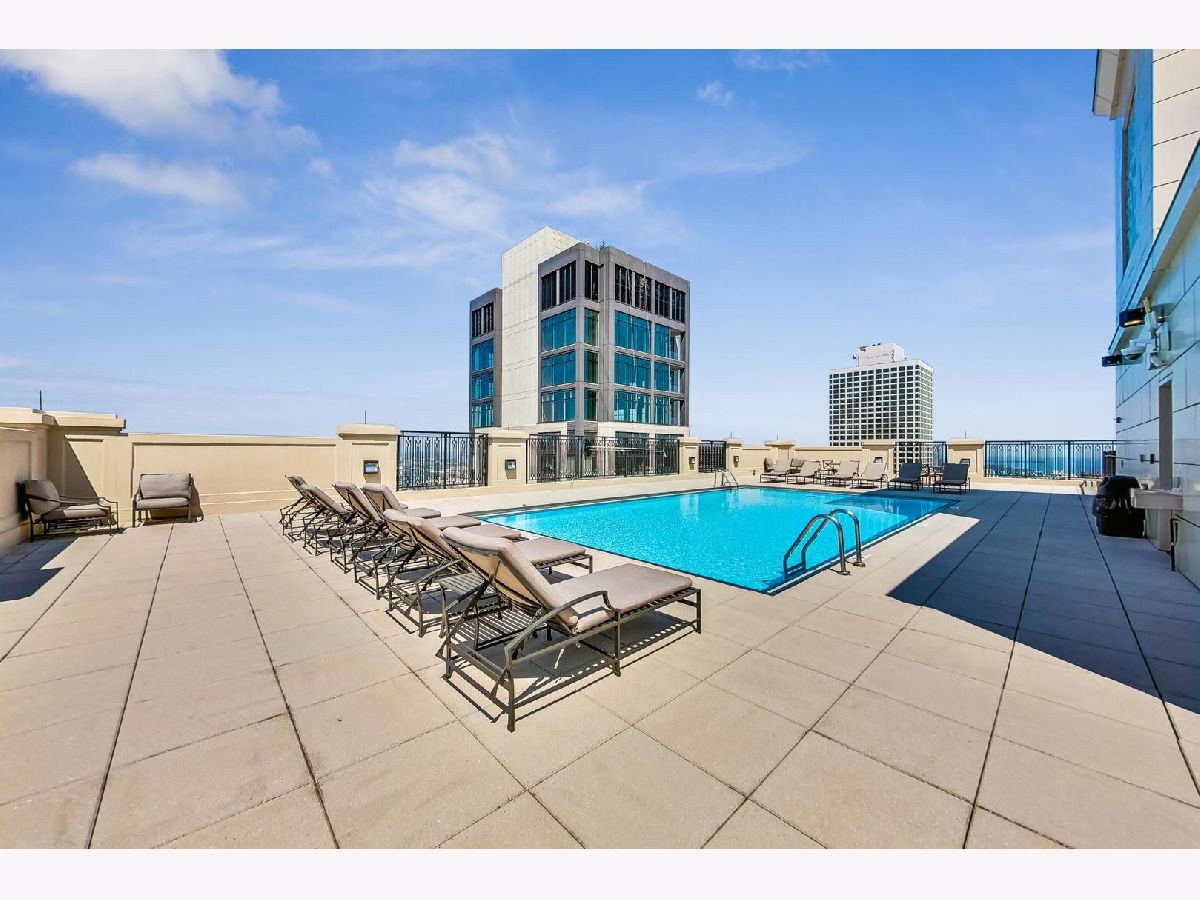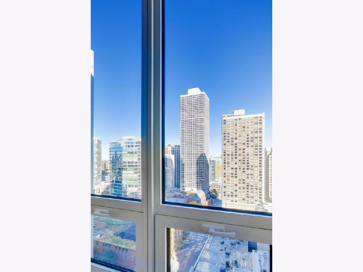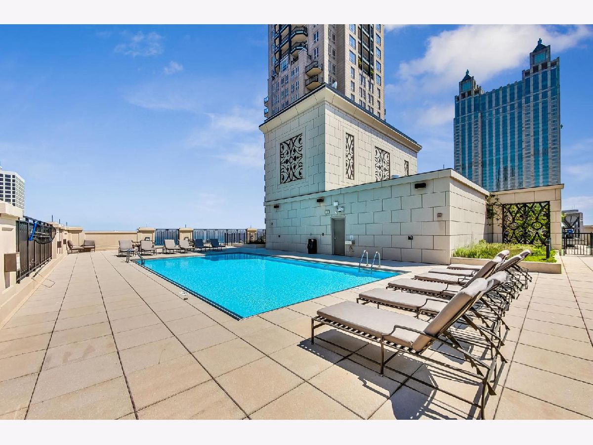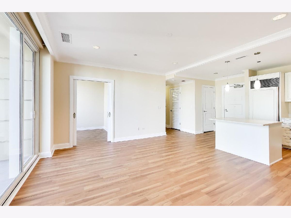 This stunning one-bedroom plus den residence offers soaring 20A beams, floor-to-ceiling windows, and unobstructed Eastern and Northern city views that flood the home with natural light. The thoughtfully designed floor plan features an open-concept kitchen with granite countertops, Sub-Zero refrigerator, newer appliances, and a large island perfect for entertaining-while still leaving space for a dining table. The living room is a great size to relax. Off the living area, a private balcony with a gas line makes grilling effortless. The primary suite includes a spacious walk-in closet, plus a second closet, and a luxurious marble bath with double sinks, soaking tub, and separate shower. The versatile den, ideal for a home office or guest space, enjoys the same wonderful light and views. A stylishly updated powder room, new LG stackable laundry, and brand-new laminate wood flooring throughout add modern comfort and brightness. Residents enjoy top-tier amenities, including a 24-hour doorman, rooftop pool, sundeck and gardens, state-of-the-art fitness center, and elegant party room. The building is exceptionally well run, with recently renovated hallways, $2.4M in reserves, and a 4-pipe system that allows heating or cooling year-round. Unbeatable location just steps from Michigan Avenue, Oak Street Beach, renowned restaurants, coffee shops, grocery stores, and premier shopping. Storage space is included; one attached, heated garage space 5th floor prime space.