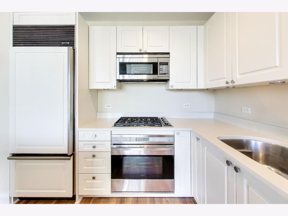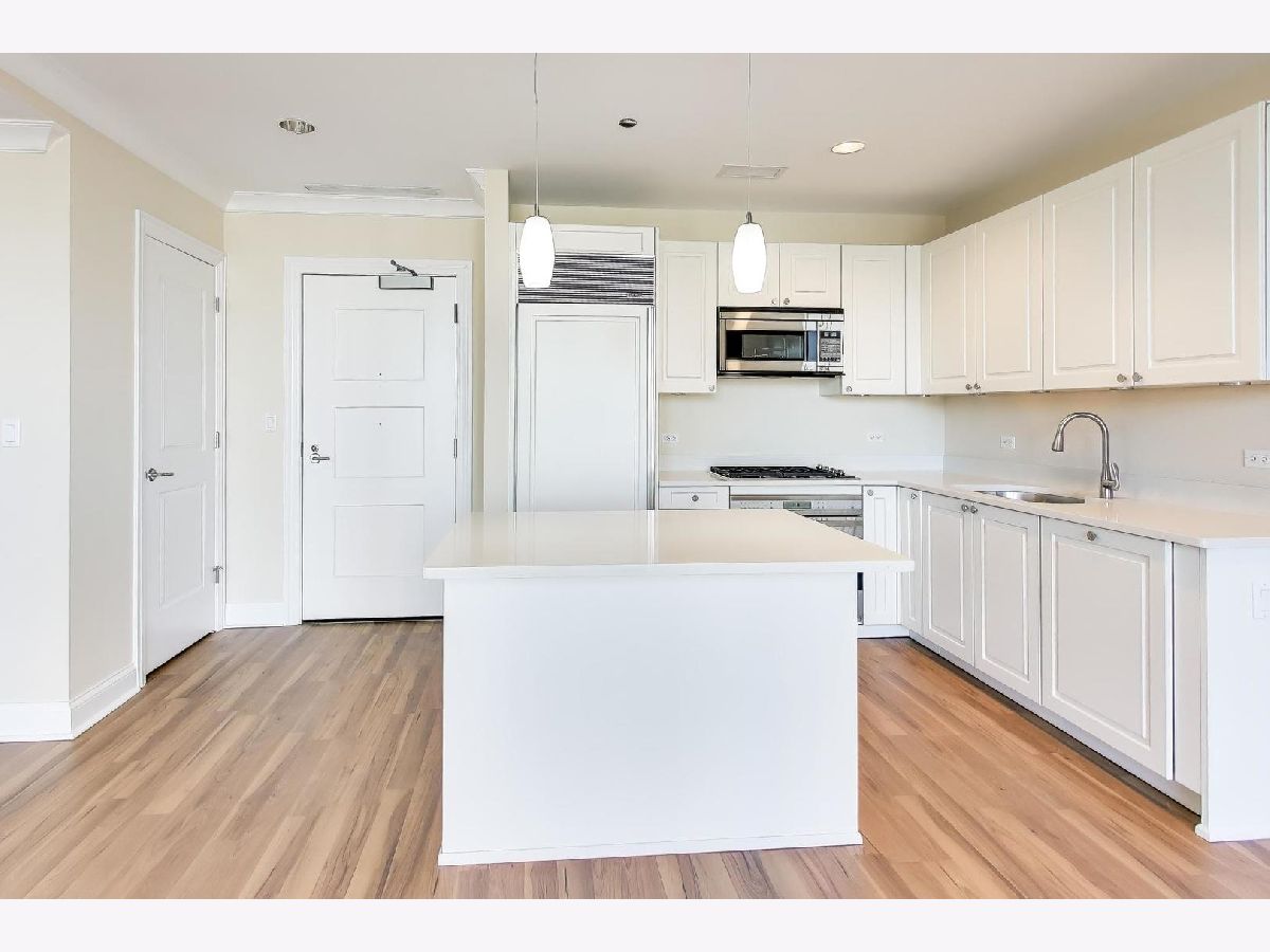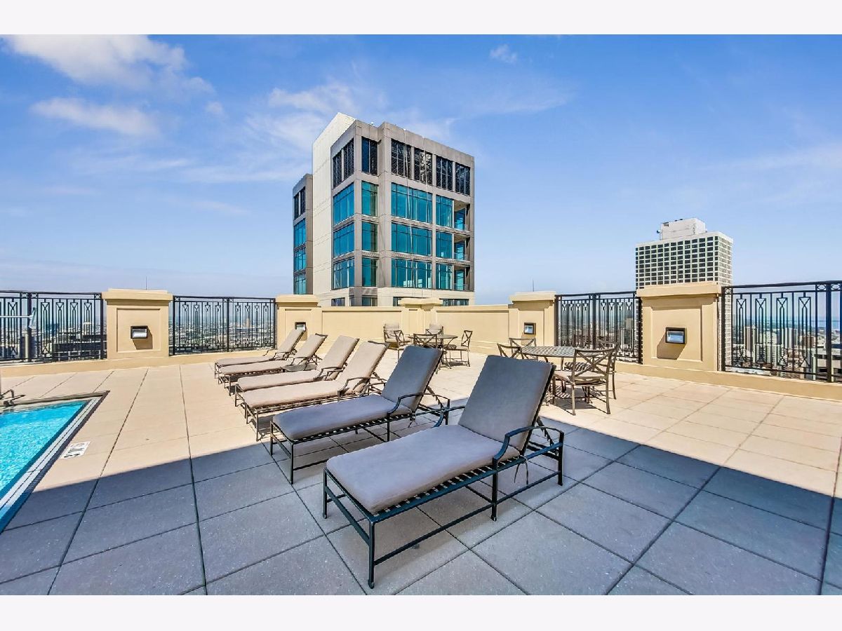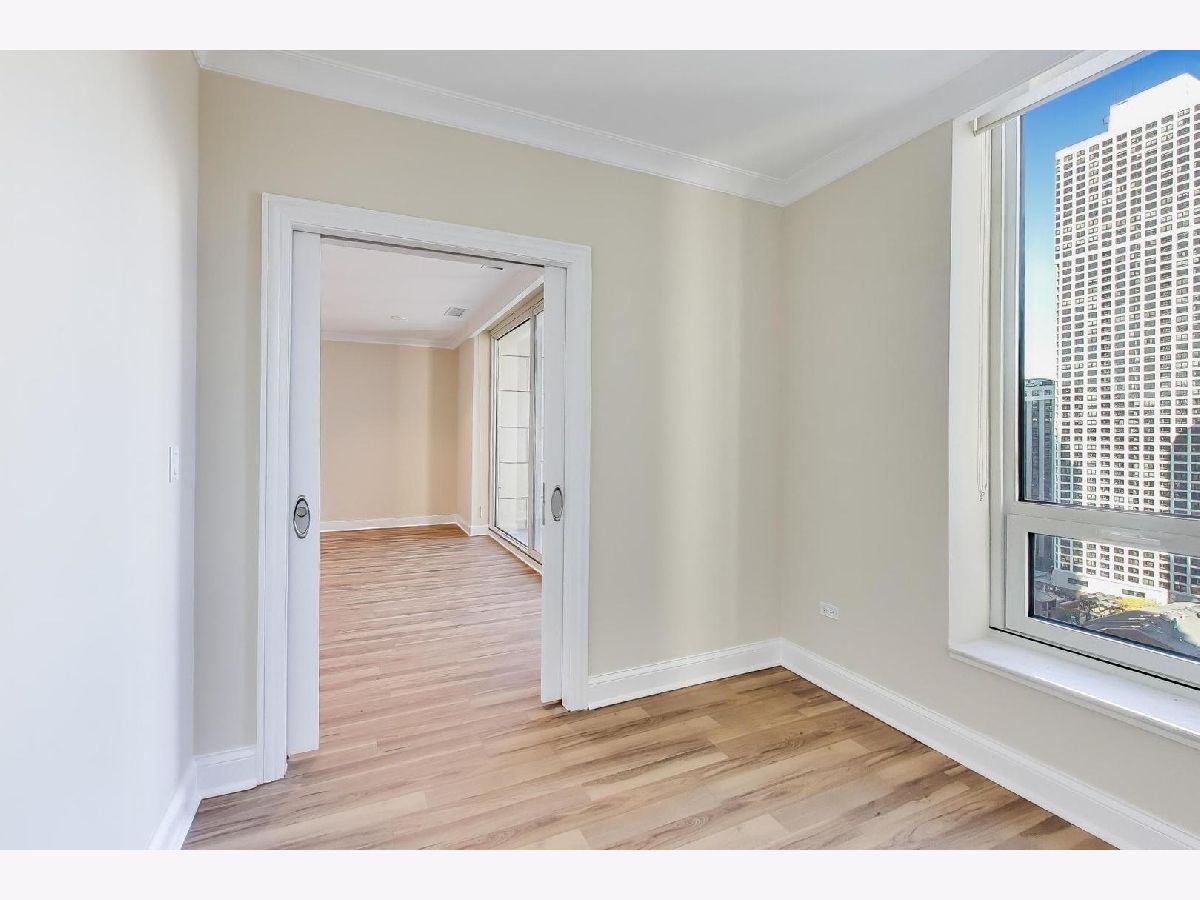 This stunning one-bedroom plus den residence offers soaring 20A beams, floor-to-ceiling windows, and unobstructed Eastern and Northern city views that flood the home with natural light. The thoughtfully designed floor plan features an open-concept kitchen with granite countertops, Sub-Zero refrigerator, newer appliances, and a large island perfect for entertaining-while still leaving space for a dining table. The living room is a great size to relax. Off the living area, a private balcony with a gas line makes grilling effortless. The primary suite includes a spacious walk-in closet, plus a second closet, and a luxurious marble bath with double sinks, soaking tub, and separate shower. The versatile den, ideal for a home office or guest space, enjoys the same wonderful light and views. A stylishly updated powder room, new LG stackable laundry, and brand-new laminate wood flooring throughout add modern comfort and brightness. Residents enjoy top-tier amenities, including a 24-hour doorman, rooftop pool, sundeck and gardens, state-of-the-art fitness center, and elegant party room. The building is exceptionally well run, with recently renovated hallways, $2.4M in reserves, and a 4-pipe system that allows heating or cooling year-round. Unbeatable location just steps from Michigan Avenue, Oak Street Beach, renowned restaurants, coffee shops, grocery stores, and premier shopping. Storage space is included; one attached, heated garage space 5th floor prime space.