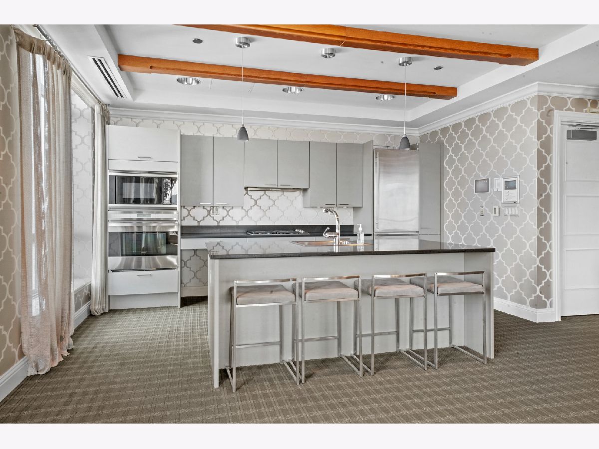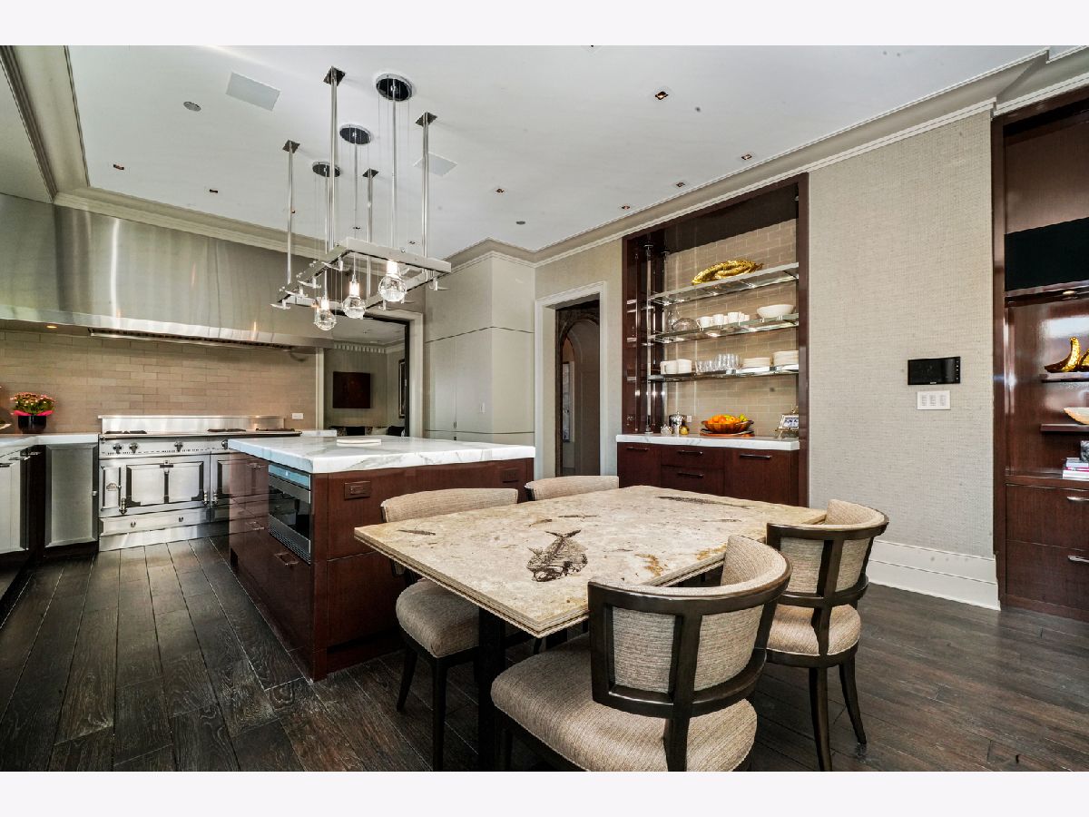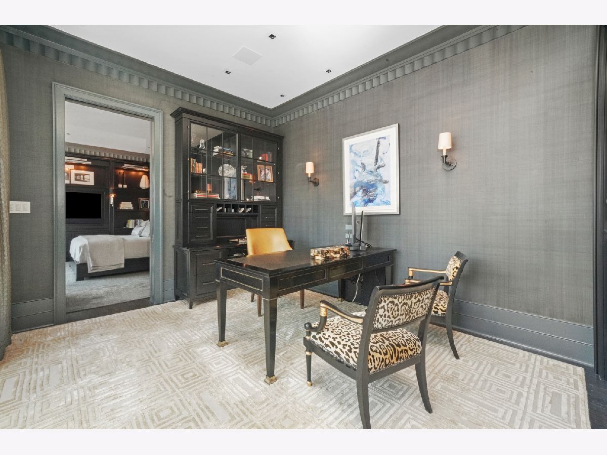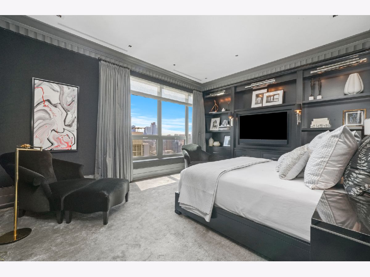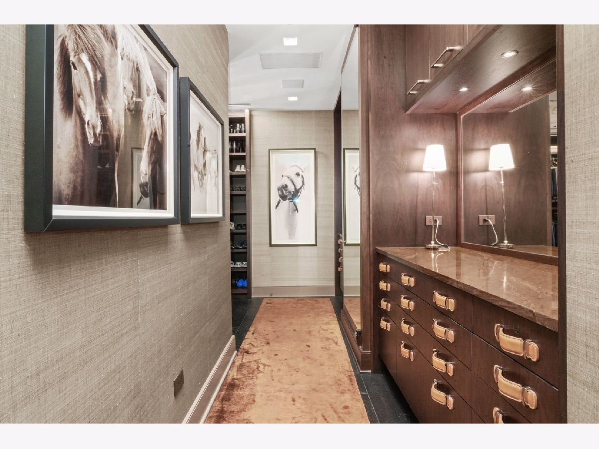 Perched atop the prestigious "10 East" in Chicago's sought-after Gold Coast, this extraordinary custom penthouse defines refined luxury. A dramatic foyer wrapped in rich walnut paneling sets the tone, opening into expansive living and entertaining spaces thoughtfully designed with impeccable craftsmanship throughout. The grand Living Room flows seamlessly into a warm, inviting Family Room and a showstopping chef's kitchen featuring custom Wenge cabinetry, striking 3-inch-thick Calacatta Gold countertops, and world-class appliances including a 60" La Cornue range and Sub-Zero refrigerator/freezer. Designed for both everyday living and elevated entertaining, the layout offers sophistication at every turn. Two oversized private terraces provide sweeping views of the Gold Coast, Chicago skyline, and Lake Michigan-an exceptional backdrop for outdoor dining or quiet mornings above the city. The primary suite is a true sanctuary, entered through a private den or office and enhanced by illuminated custom built-ins and exquisite millwork. A fully organized walk-in closet and a spa-caliber bath with Calacatta Gold stone slabs, heated floors, and a custom William Garvey teak Japanese soaking tub complete the retreat. Additional highlights include a custom wine room, wide-plank hand-scraped hickory flooring, Lutron touchpad lighting system, gas fireplace, and exceptional storage throughout. The residence includes two deeded parking spaces (available at additional cost) and a full-height storage locker. Residents of 10 East enjoy premier amenities including a rooftop pool, state-of-the-art fitness center, and 24-hour door staff-all moments from Michigan Avenue, Rush Street, and the lakefront. This is Gold Coast penthouse living at its finest. Explore the property in 3D-click the 3D tour to experience every detail.