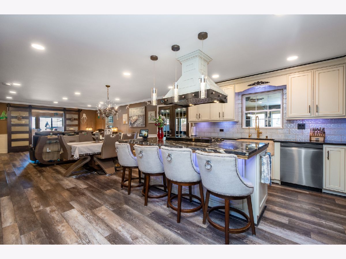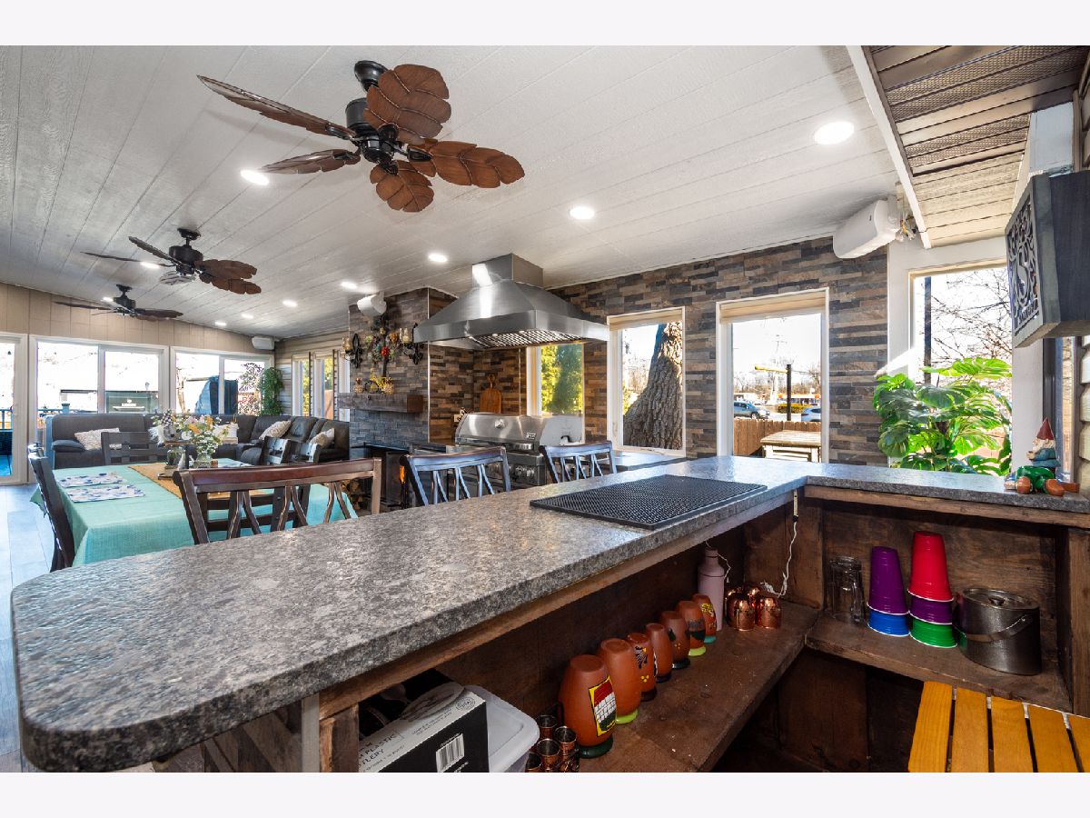 Almost 3,000 square feet of luxury entertaining awaits in this beautifully updated 5-bedroom, 3-bath open-concept home in the heart of downtown Fox Lake! Designed for gatherings and everyday comfort, this spacious home features a dream kitchen complete with high-end appliances, abundant cabinetry, and generous prep space that flows seamlessly into the main living areas. The show-stopping four-seasons room is built for year-round enjoyment, offering a custom grill and cozy wood-burning fireplace-perfect for hosting in any season. A recently added den/office/entertaining space elevates the home even further, featuring its own kitchen area with a commercial-grade flat-top grill and wet bar, making it ideal for game days, celebrations, or multi-generational living. Upstairs you'll find four spacious bedrooms, two full baths, and a convenient kitchenette area, providing flexibility and privacy for family or guests. The heated 3-car garage boasts finished floors, while the backyard shed is fully outfitted and best described as a private "man cave" retreat. Located just a few hundred feet from a marina with available boat slips, this property offers easy access to boating and waterfront recreation. A rare opportunity to own a versatile, entertainment-focused home in a prime downtown location! Some items not included, please ask your realtor for the list