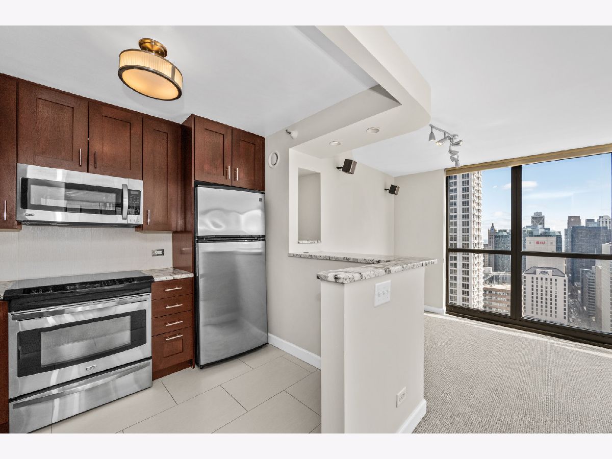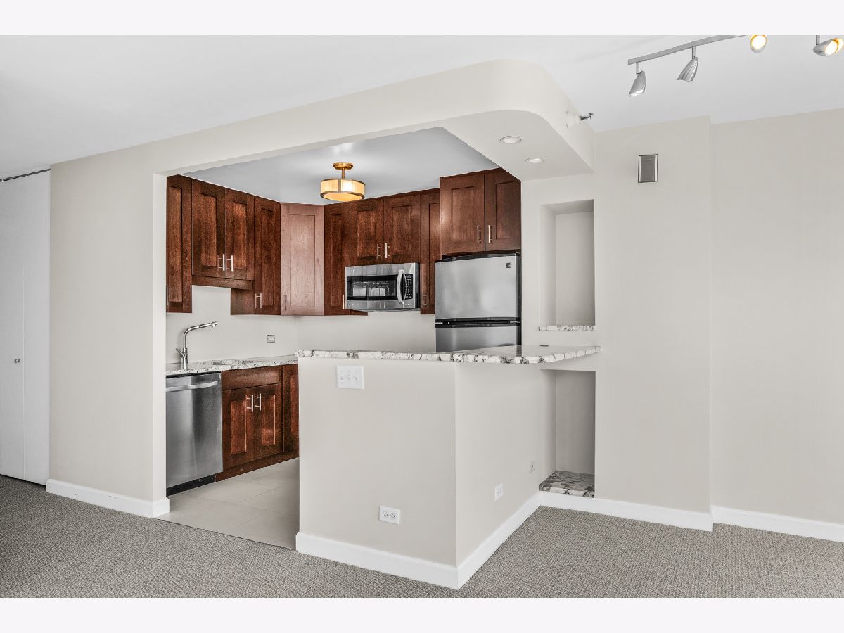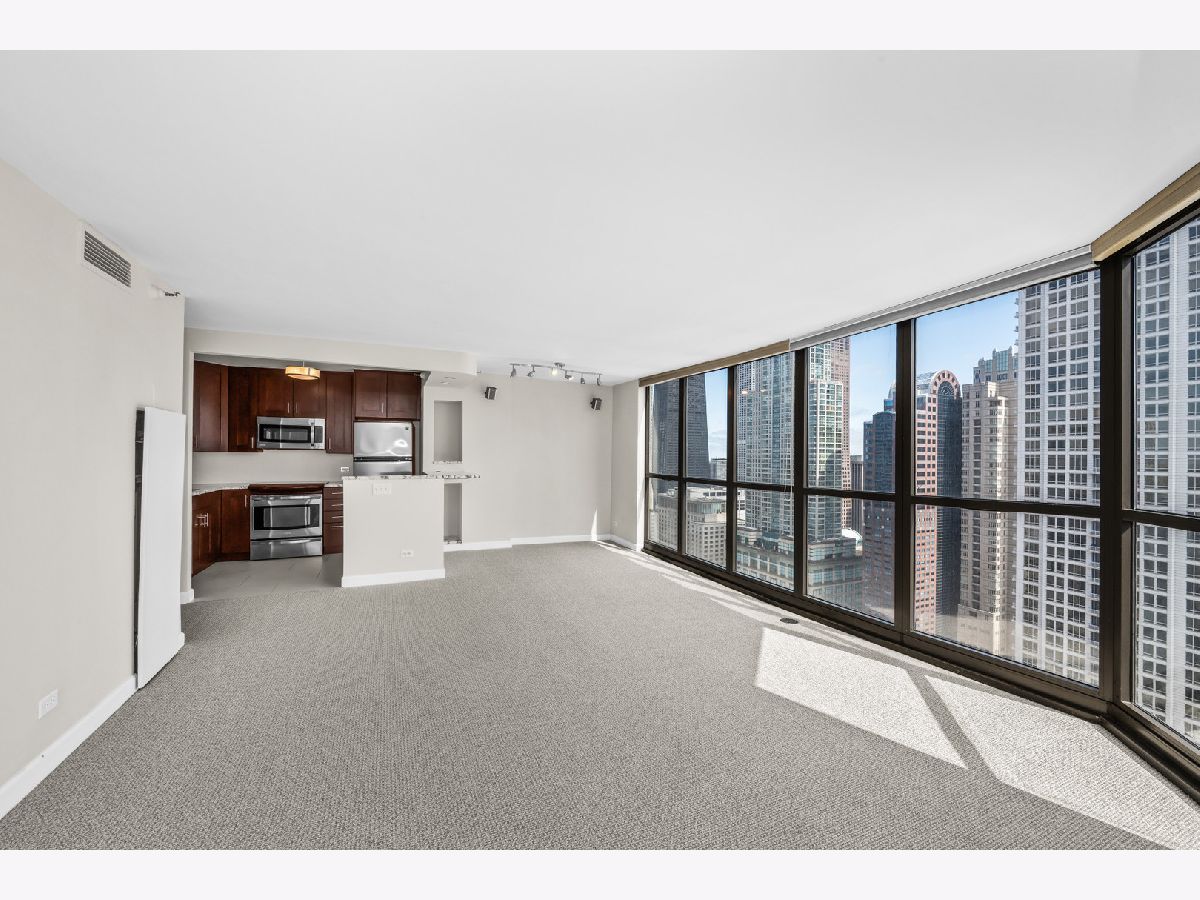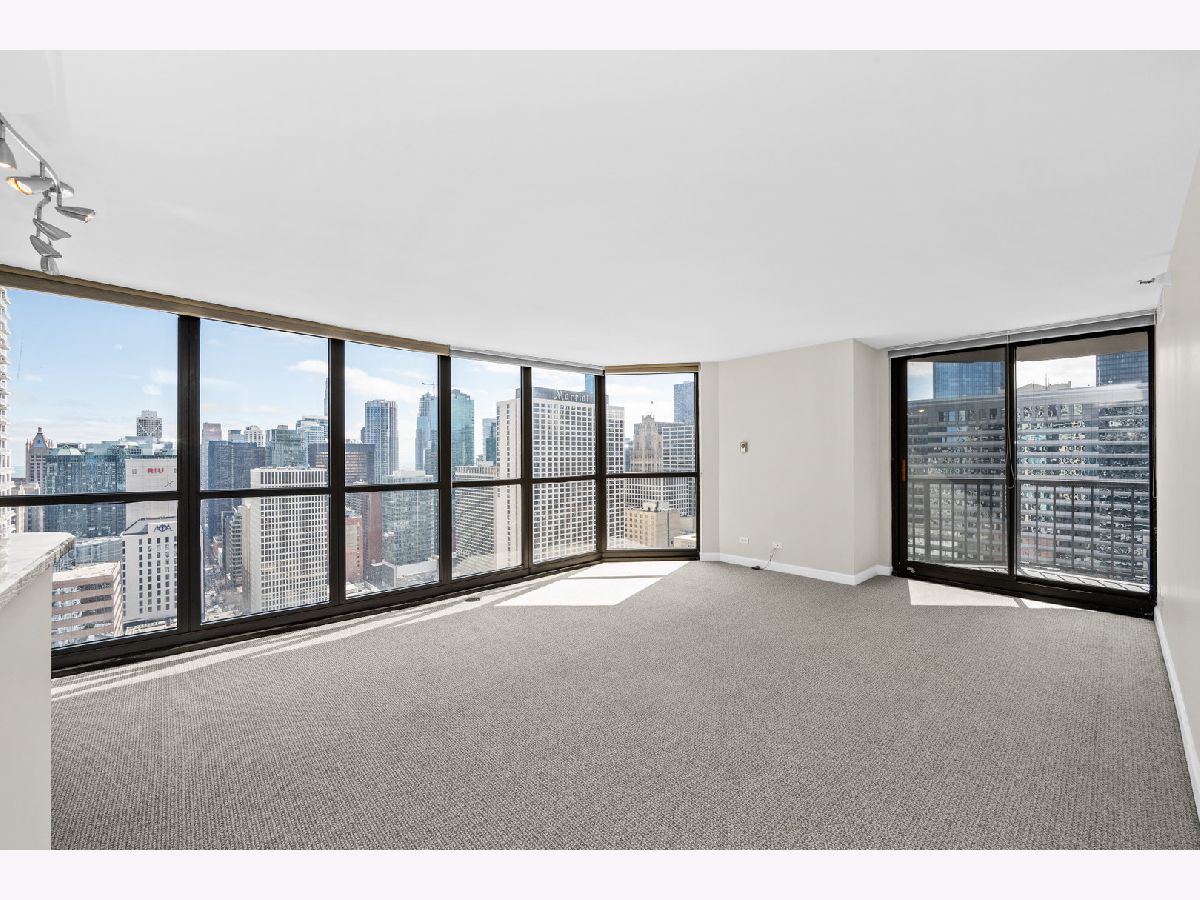 Totally renovated coveted southeast corner one bedroom with huge balcony nearly 1000 square feet with stunning city views and peeks of the lake..... beautiful open kichen plus large dining and living area make this special unit ideal for formal entertaining!! In addition, price INCLUDES a deeded parking space as well as extra storage on same floor as unit for added convenience.... Condo has been freshly painted with brand new beautiful carpet throughout to be truly move-in ready... located in prime River North location steps from world class shopping and dining, building offers awesome amenities such as huge gym, park, pool, business center, community center, sauna, 24 hour security and more..... don't miss this easy to show