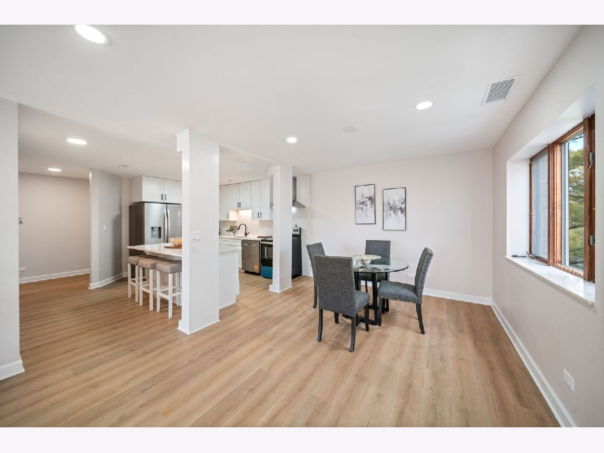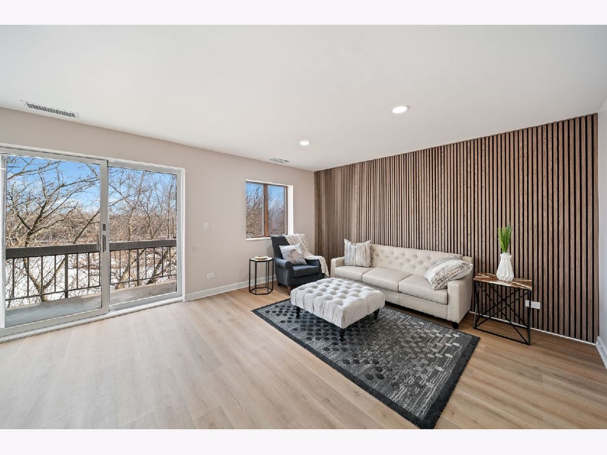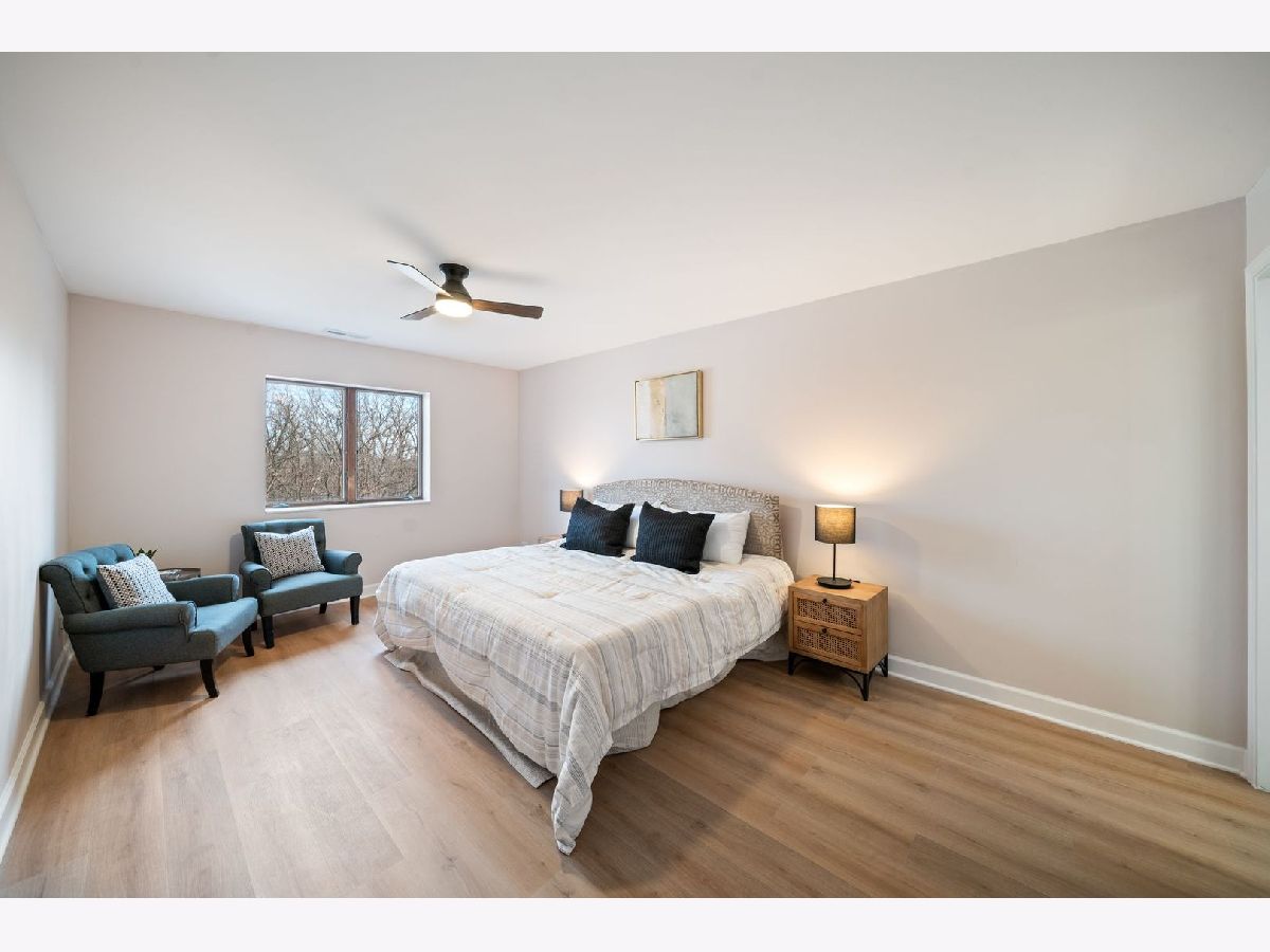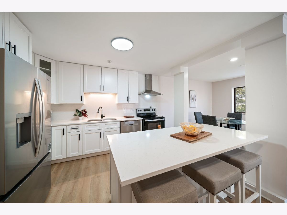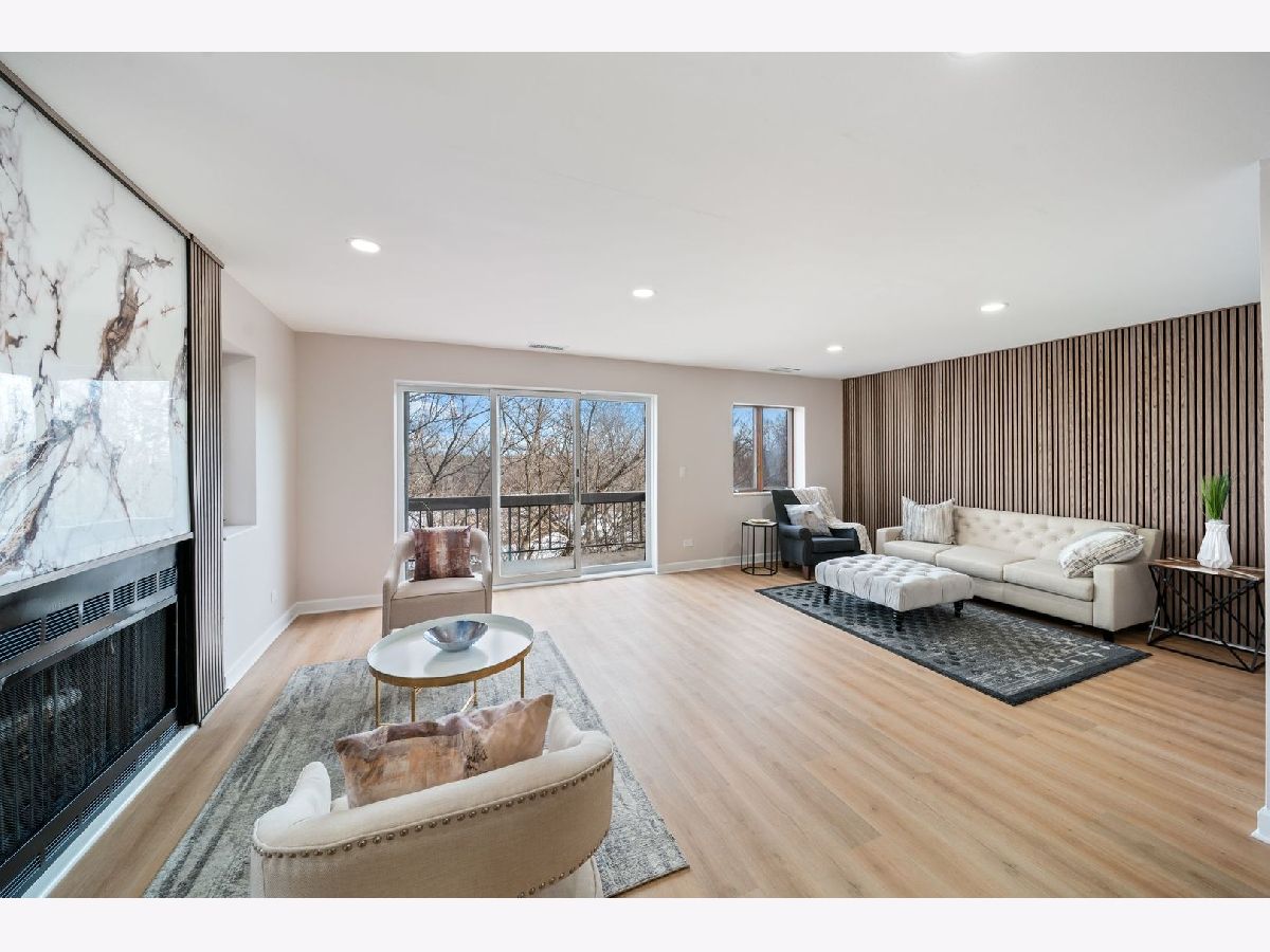 Completely newly rehabbed and move-in ready, this beautifully updated top-floor 2-bedroom, 2-bath condo offers modern finishes, a spacious layout, and serene pond views in an intimate, quiet building. Step into a bright and airy living space featuring wide-plank flooring throughout, large windows with sunny exposures, and a generous living room with a stylish fireplace. Sliding glass doors lead to a large private balcony with treetop views overlooking the pond - the perfect spot to relax or entertain. The fully renovated eat-in kitchen showcases white shaker cabinetry, quartz countertops, all brand-new stainless steel appliances, modern hardware, and a spacious island with seating. Thoughtful design and abundant cabinetry provide both functionality and style. The expansive primary suite includes a walk-in closet and a stunningly updated en-suite bath featuring a double vanity and designer finishes. The second bedroom offers a wall of closets and easy access to the beautifully remodeled hall bath. Additional highlights include: Full-sized in-unit laundry room All new appliances and updated fixtures throughout 2 garage parking spaces 1 dedicated storage space Top-floor privacy Quiet, well-maintained building Located in a prime Lincolnshire location within award-winning Lincolnshire schools and Stevenson High School district. This is a rare opportunity to own a fully renovated, turnkey home with modern finishes, generous space, and tranquil views in one of the area's most desirable communities.