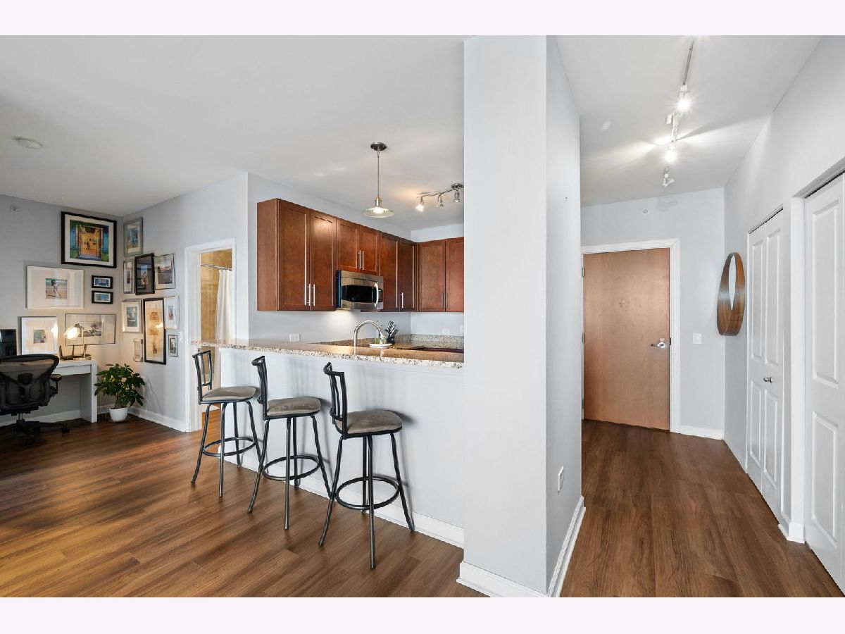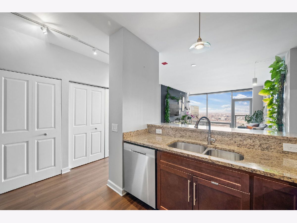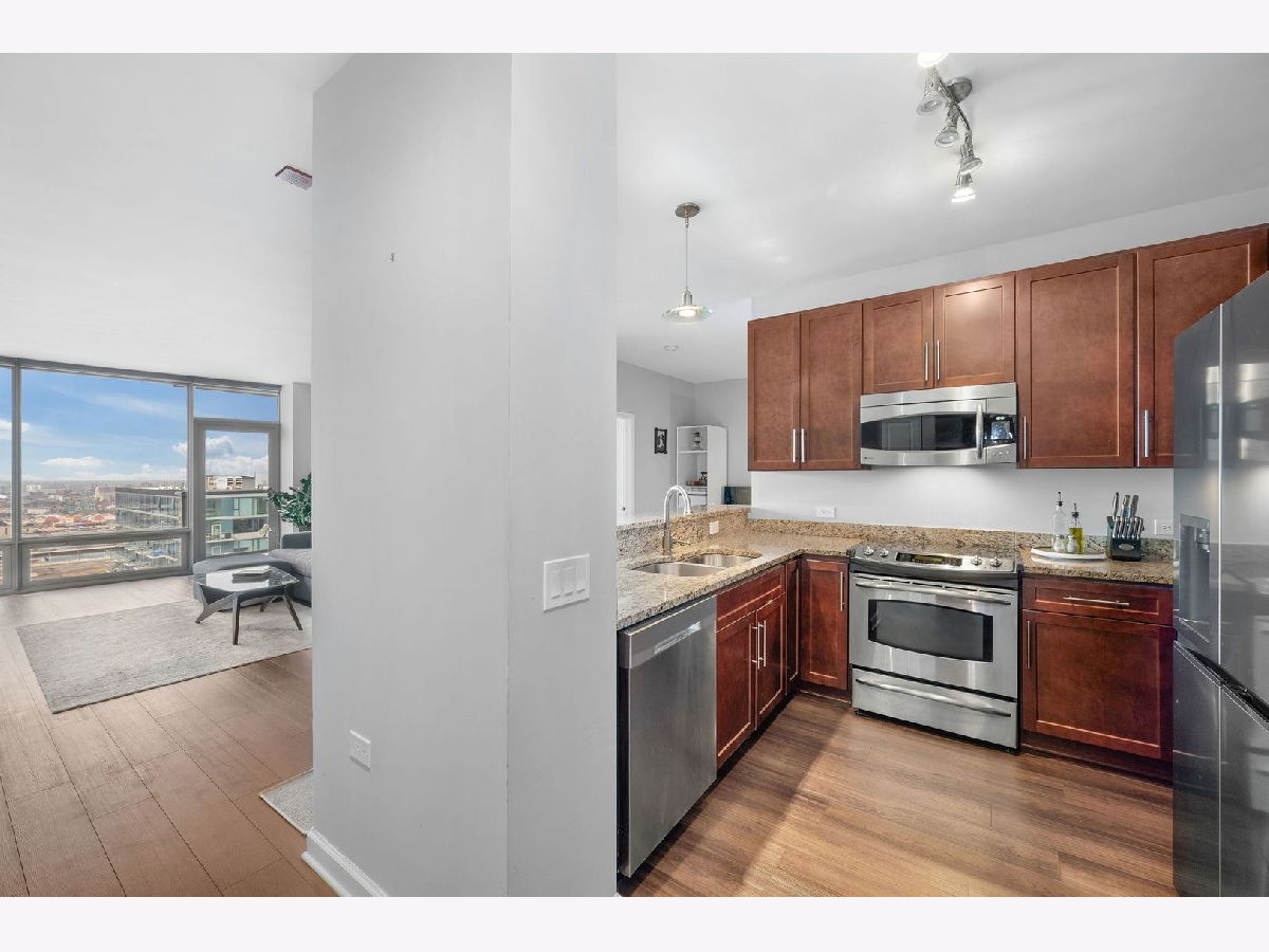 Beautiful and bright South Loop condo with 2 bedrooms, 2 bathrooms and an additional den/office space. Enjoy breathtaking sunset and city views from the homes private balcony and floor-to-ceiling windows. The home's split floor plan and spacious living areas are ideal for entertaining. This is complemented by an open kitchen featuring granite countertops, a breakfast bar with barstool seating and stainless-steel appliances. The den serves perfectly as a home office or a small dining area. The primary suite features a large custom walk-in closet, an en-suite bathroom with a double sink vanity and an oversized shower. The large second bedroom and adjacent second bathroom complete the home. Residents of the building enjoy amenities such as a 24-hour doorperson, a rooftop exercise room, an indoor pool with a whirlpool, and a beautiful community room. Indoor garage parking is available for $35,000. Centrally located in the South Loop. Dining, entertainment, shopping, museums and the lakefront are all with in walking distance.
