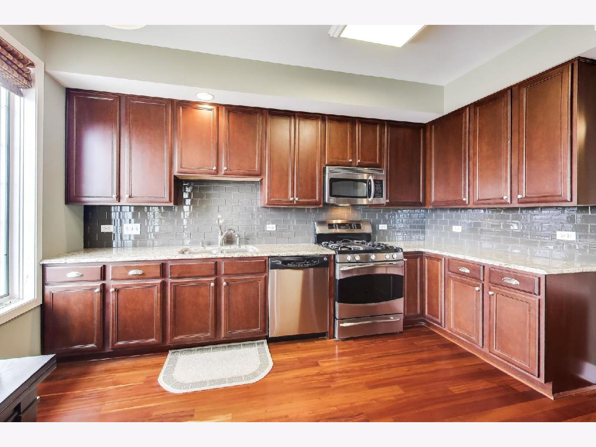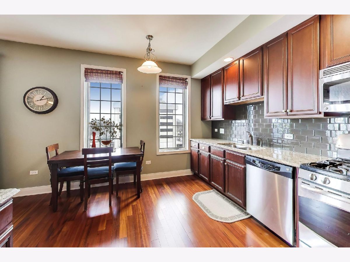 Why rent when you can enjoy this stunning top-floor condo in the heart of downtown Mount Prospect, offering an exceptional blend of comfort, style, and convenience. From its elevated position, the home provides beautiful views and a true front-row seat to the vibrant downtown scene, where you can enjoy community favorites like Oktoberfest, the Downtown Block Party, and other seasonal events just steps from your door. Inside, 9-foot ceilings and rich Brazilian cherry hardwood floors create a warm and inviting living space. The cherry cabinet kitchen features granite countertops and a charming eat-in area, offering both style and functionality for everyday living and entertaining. The generously sized primary bedroom includes a double closet for ample storage, while the full-size in-unit washer and dryer provide added convenience. Newer HVAC 2022. Step outside to the east-facing balcony to enjoy morning sunlight and views of the lively downtown surroundings. This secure elevator building offers heated underground parking and a large private storage area. Located just steps from the Metra, library, Starbucks, Canta Napoli, Khepri Cafe, shopping, dining, and entertainment, this home presents a wonderful opportunity to experience downtown Mount Prospect living at its best.